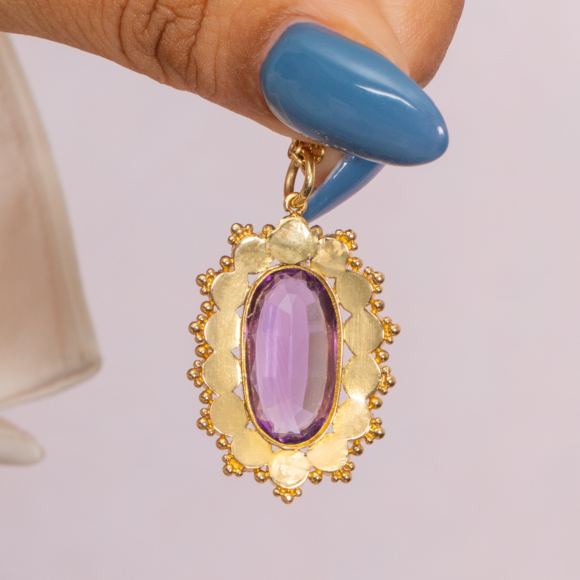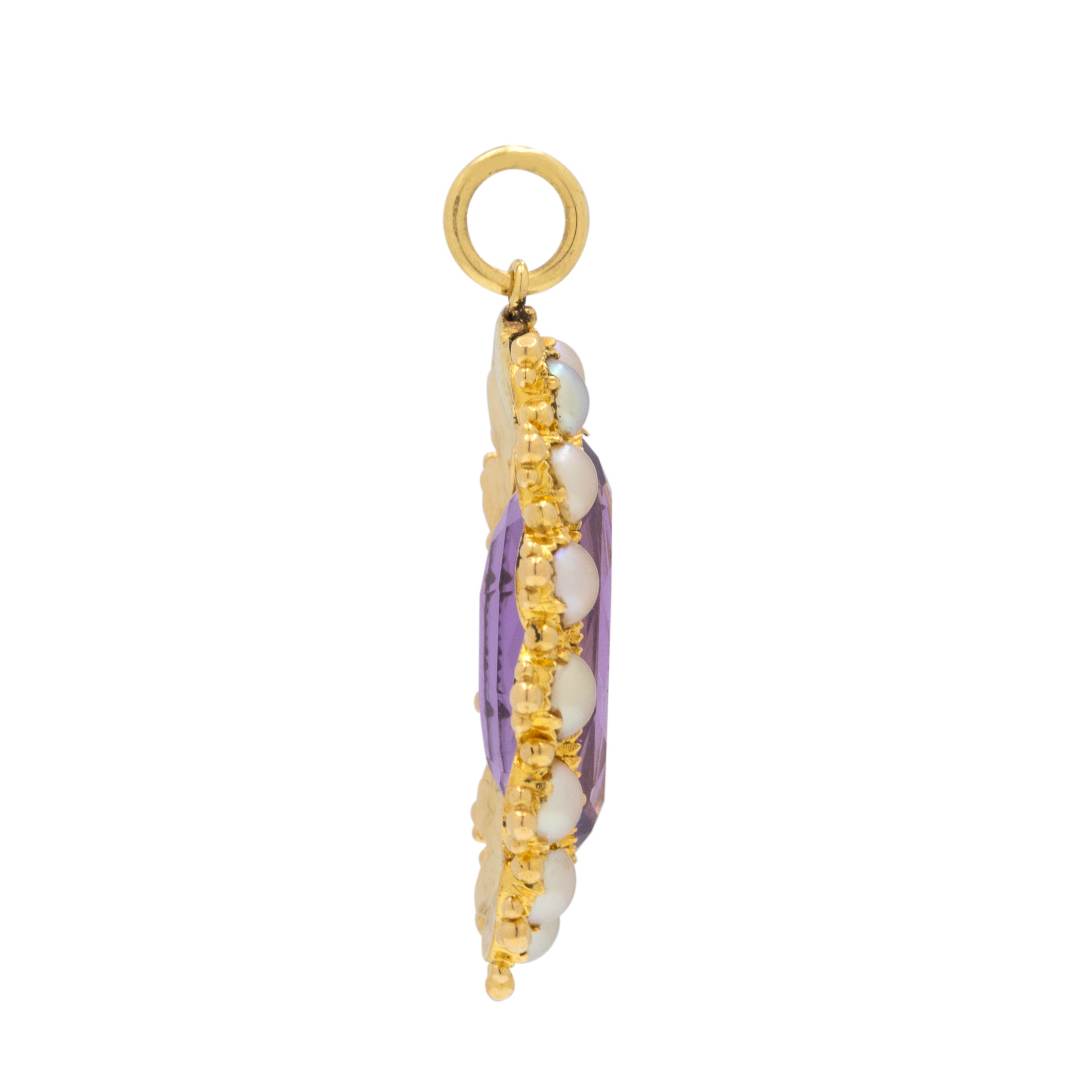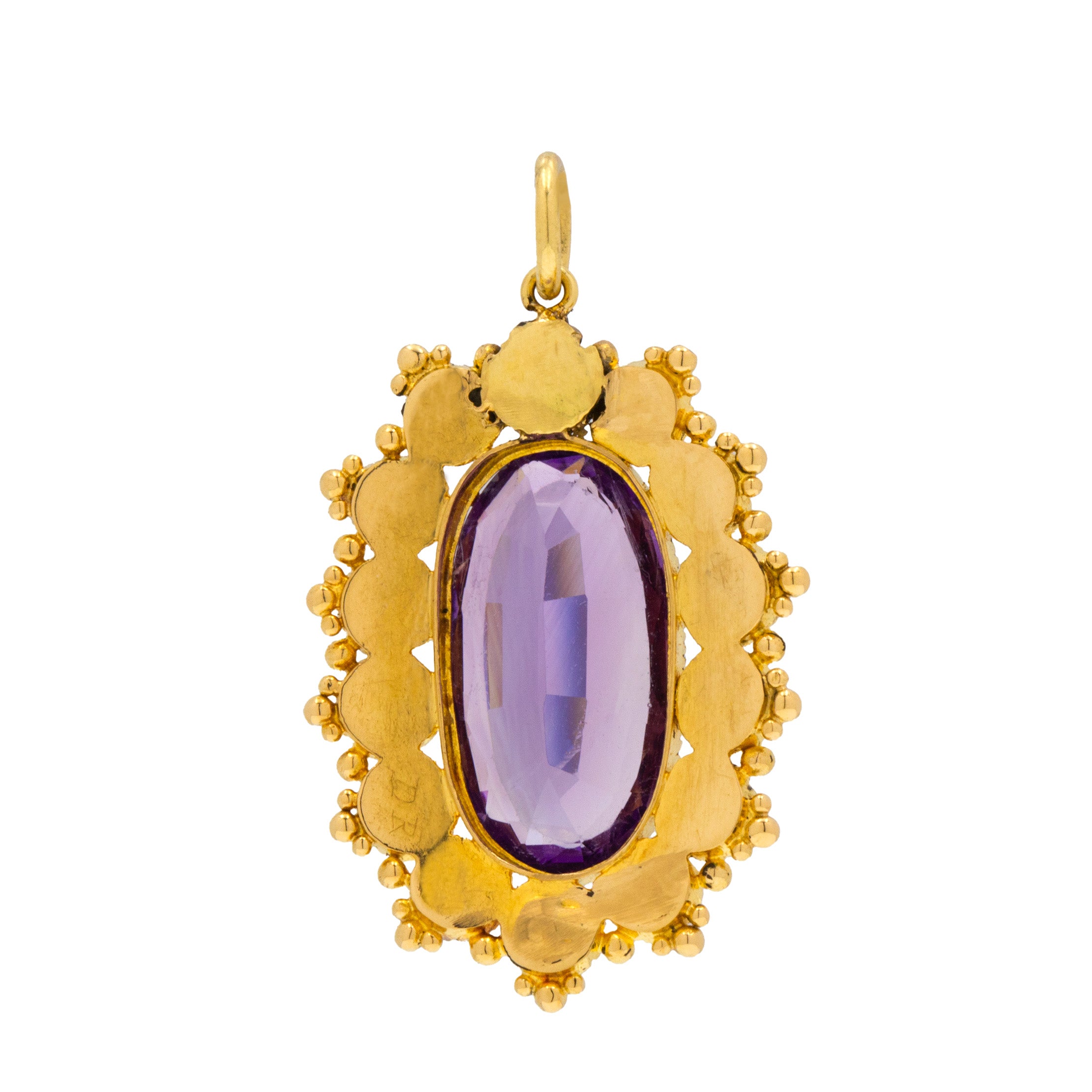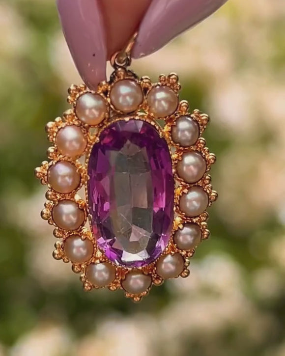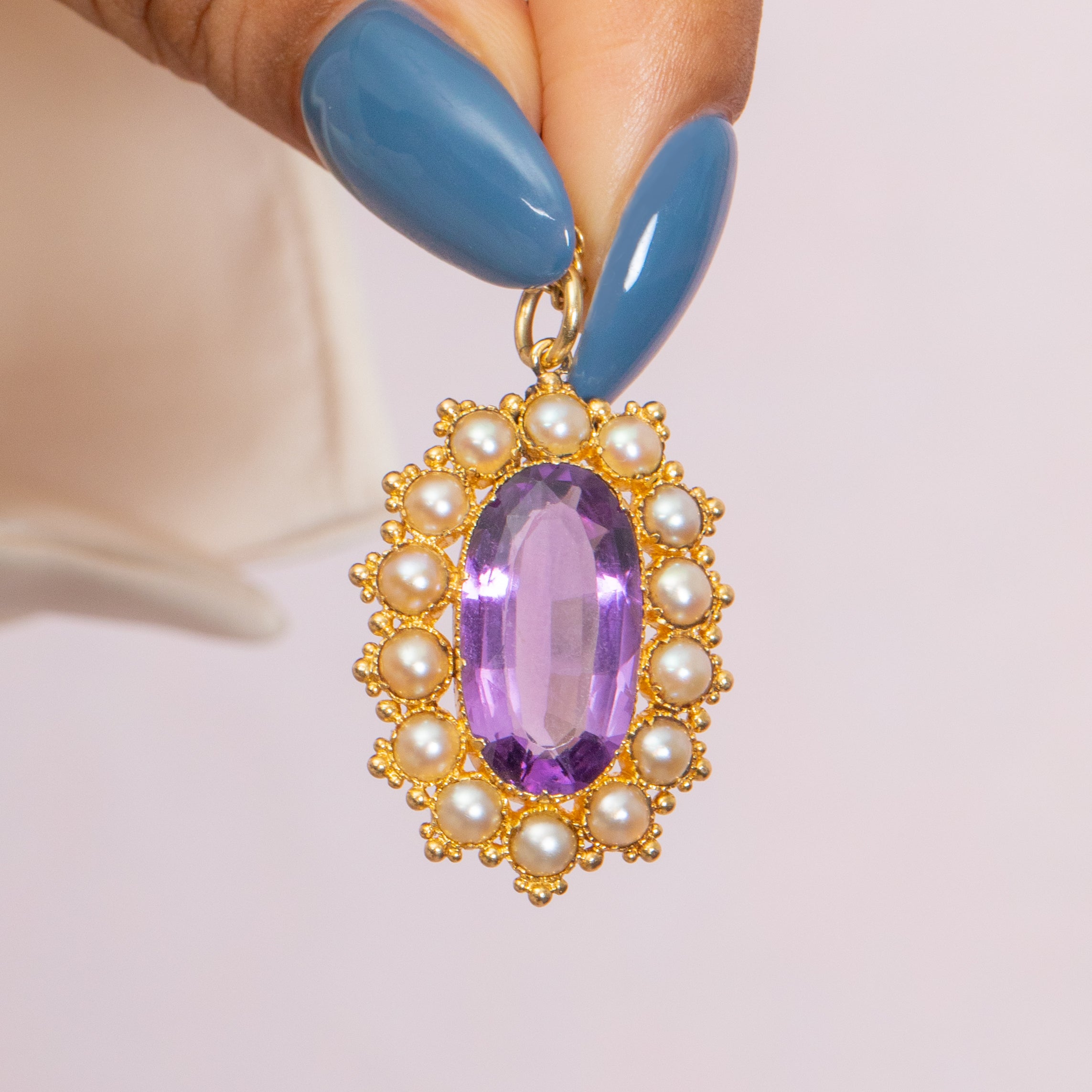Antique 18ct Gold Amethyst Pearl Pendant 4.00ct