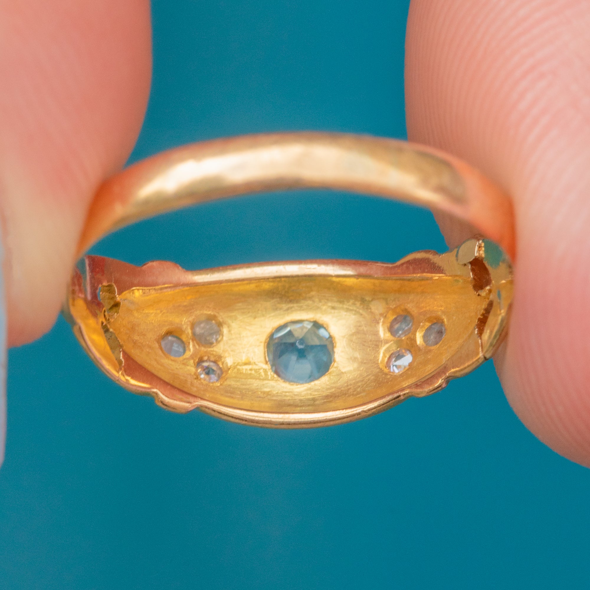 Antique 18ct Gold Aquamarine Diamond Gypsy Ring