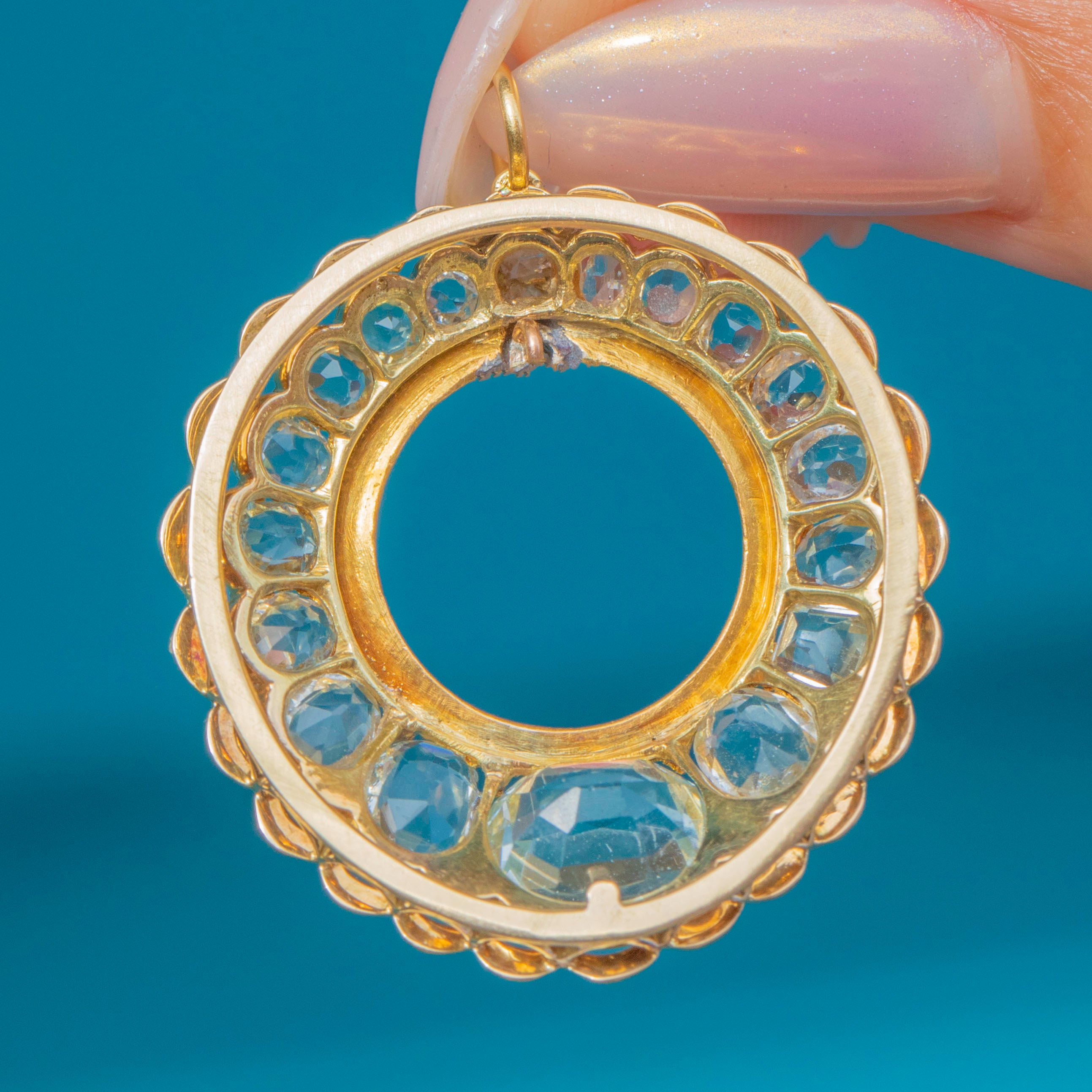 EXCELLENT: All stones are secure with no chips or damage. The 18ct Gold setting is intact with minimal wear, and the pendant presents beautifully, reflecting careful preservation over the years.