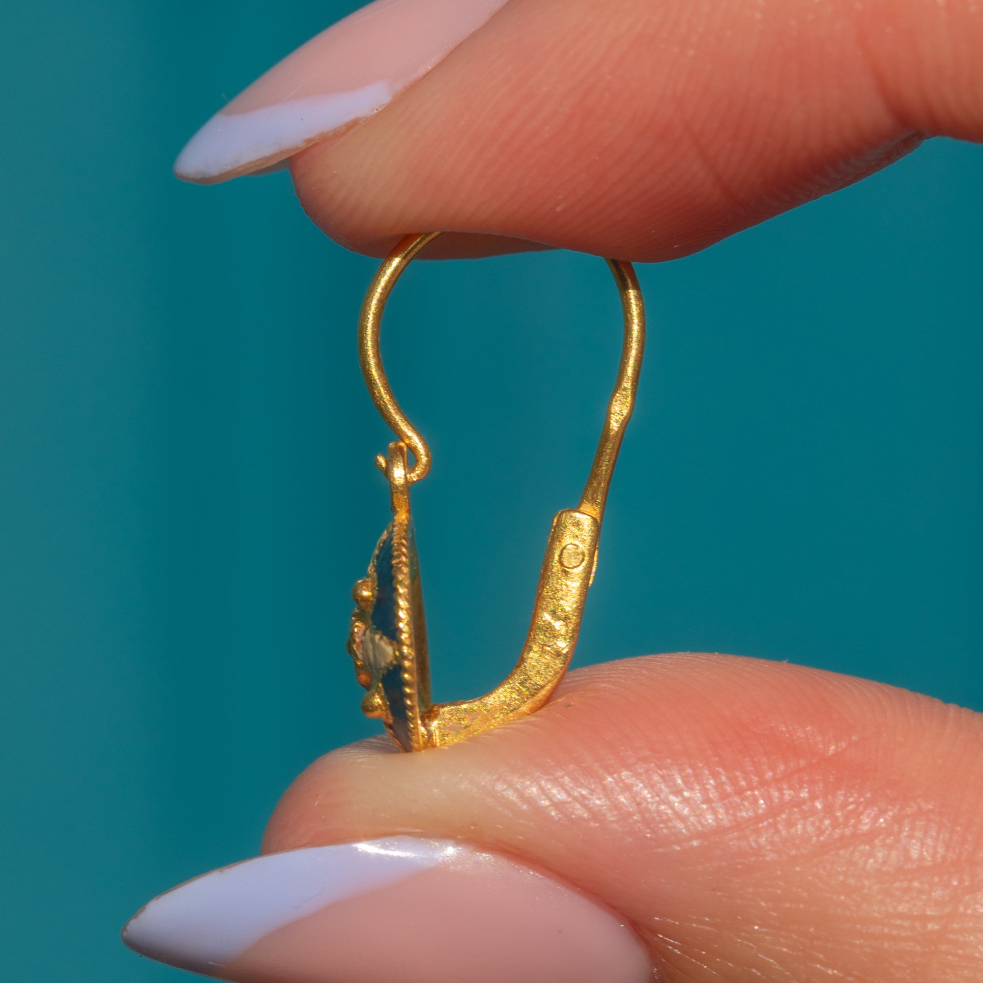 Antique 18ct Gold Blue Enamel Star Lever-Back Earrings