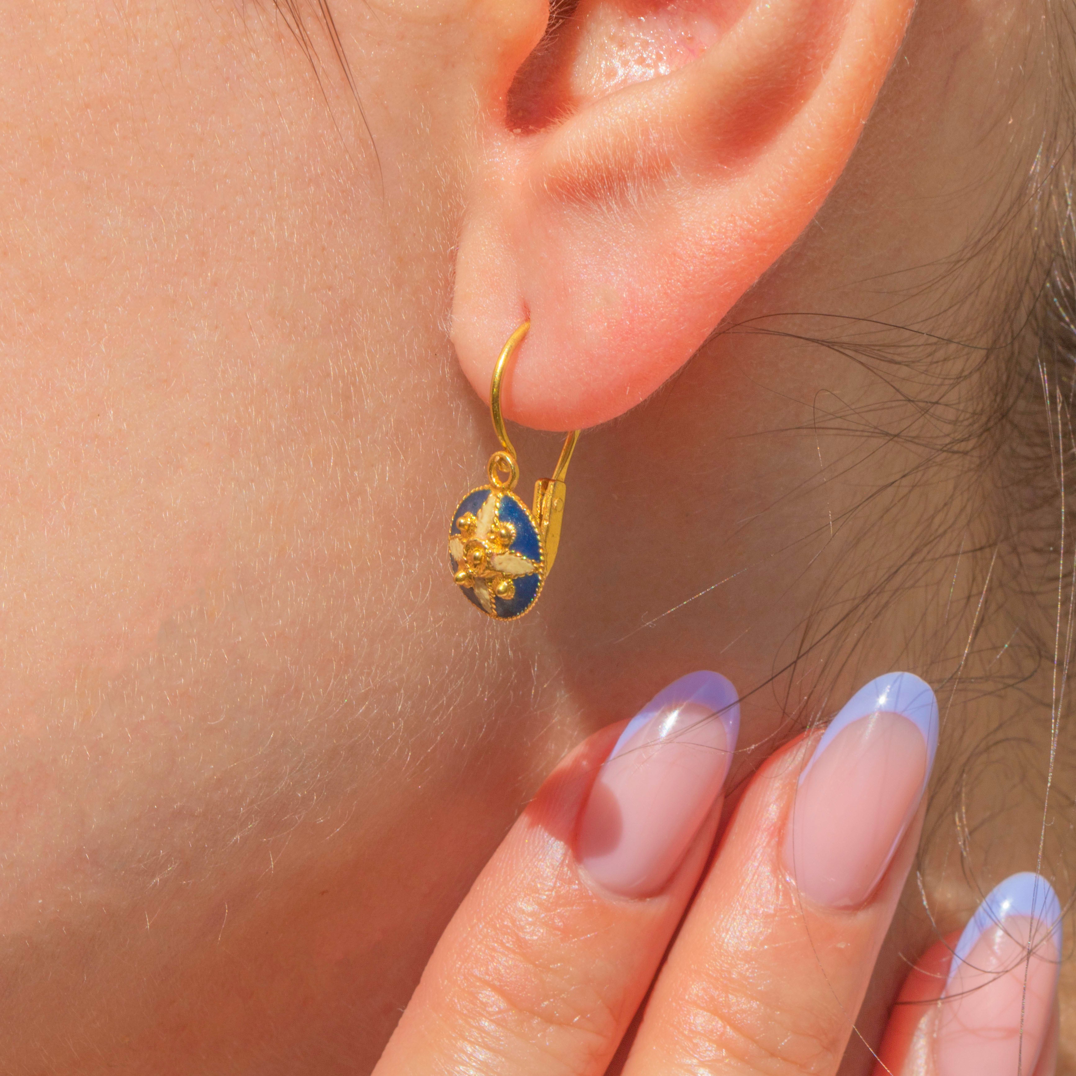These antique 18ct Gold blue Enamel star lever-back earrings radiate celestial charm!