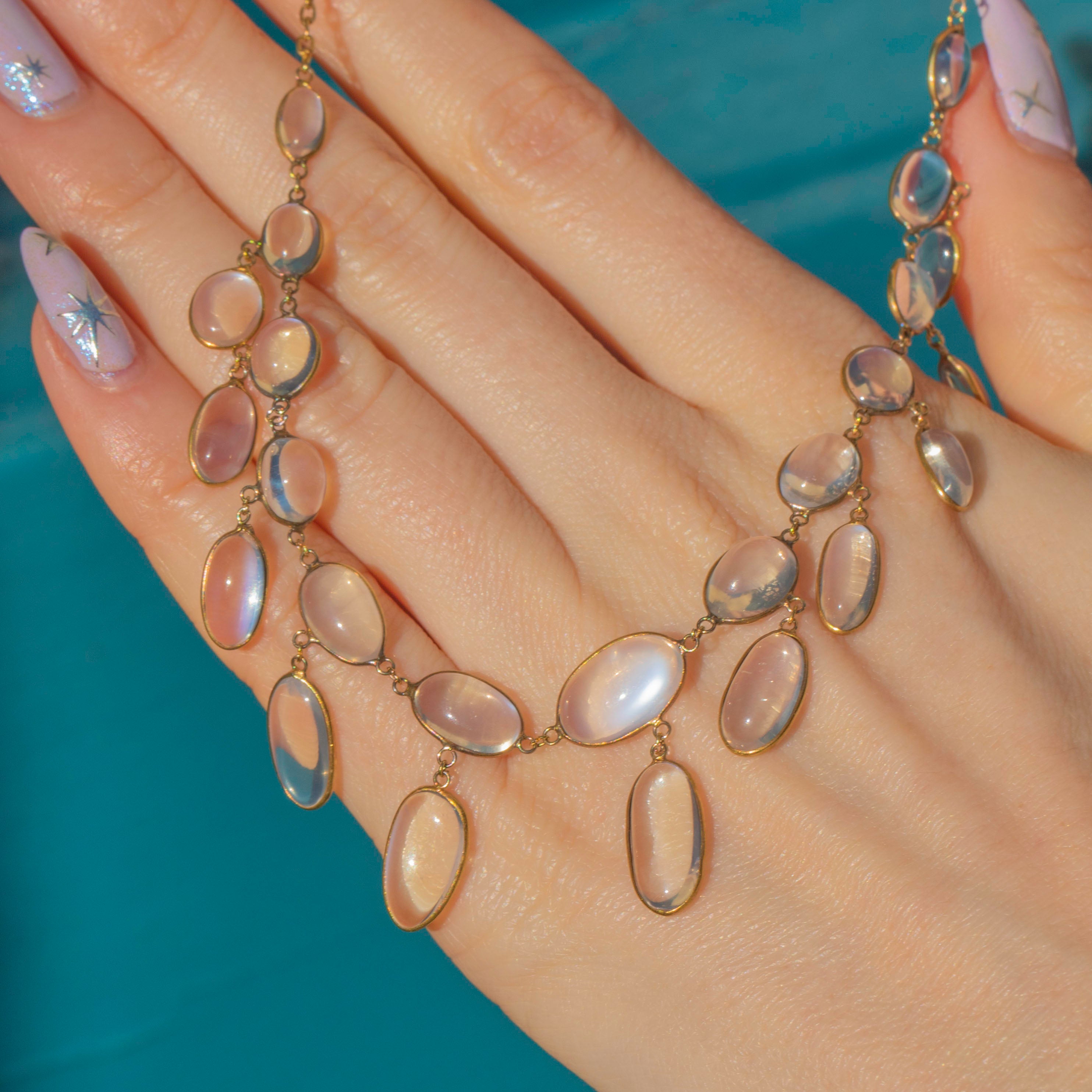 Antique 18ct Gold Ceylon Moonstone Fringe Necklace, 20.80ct