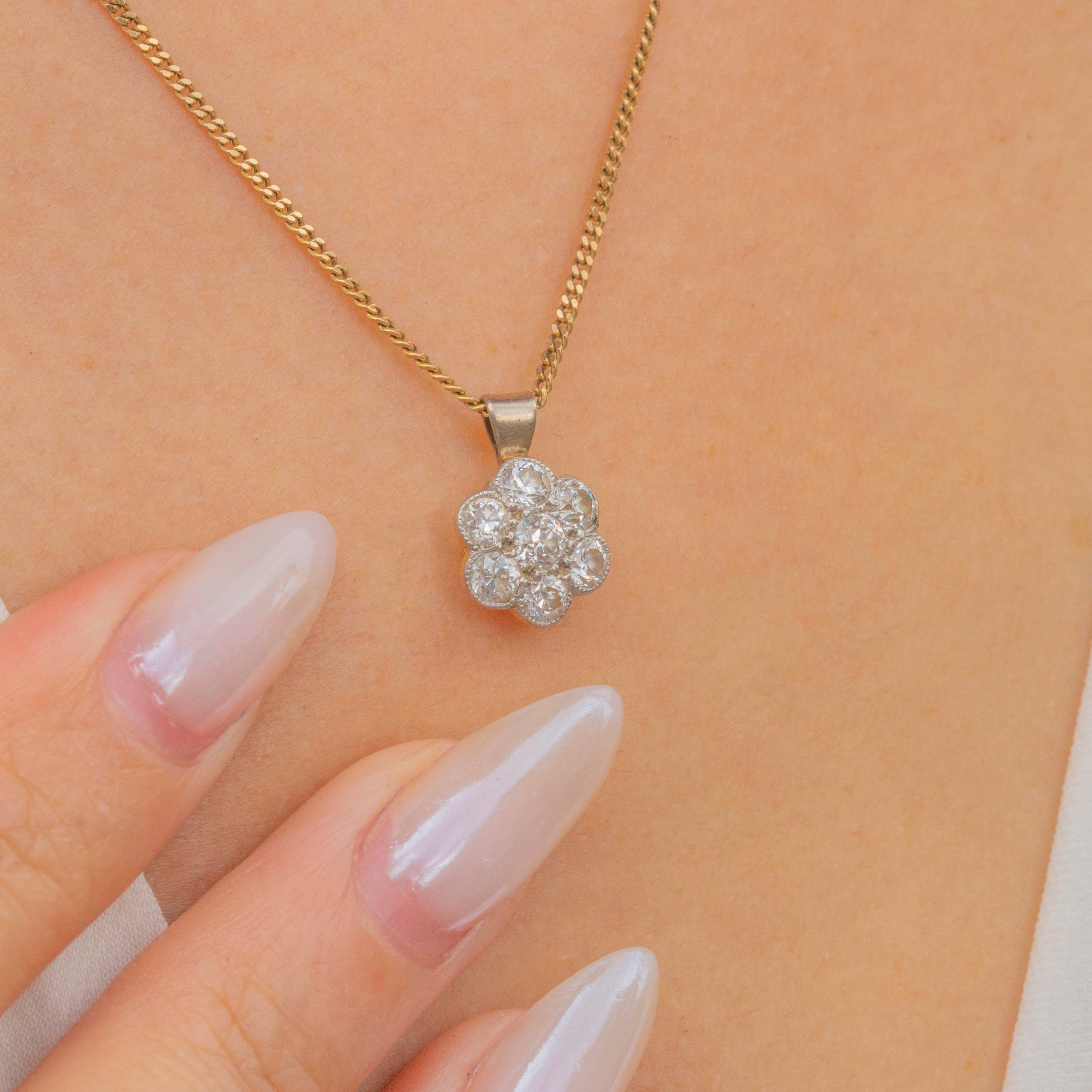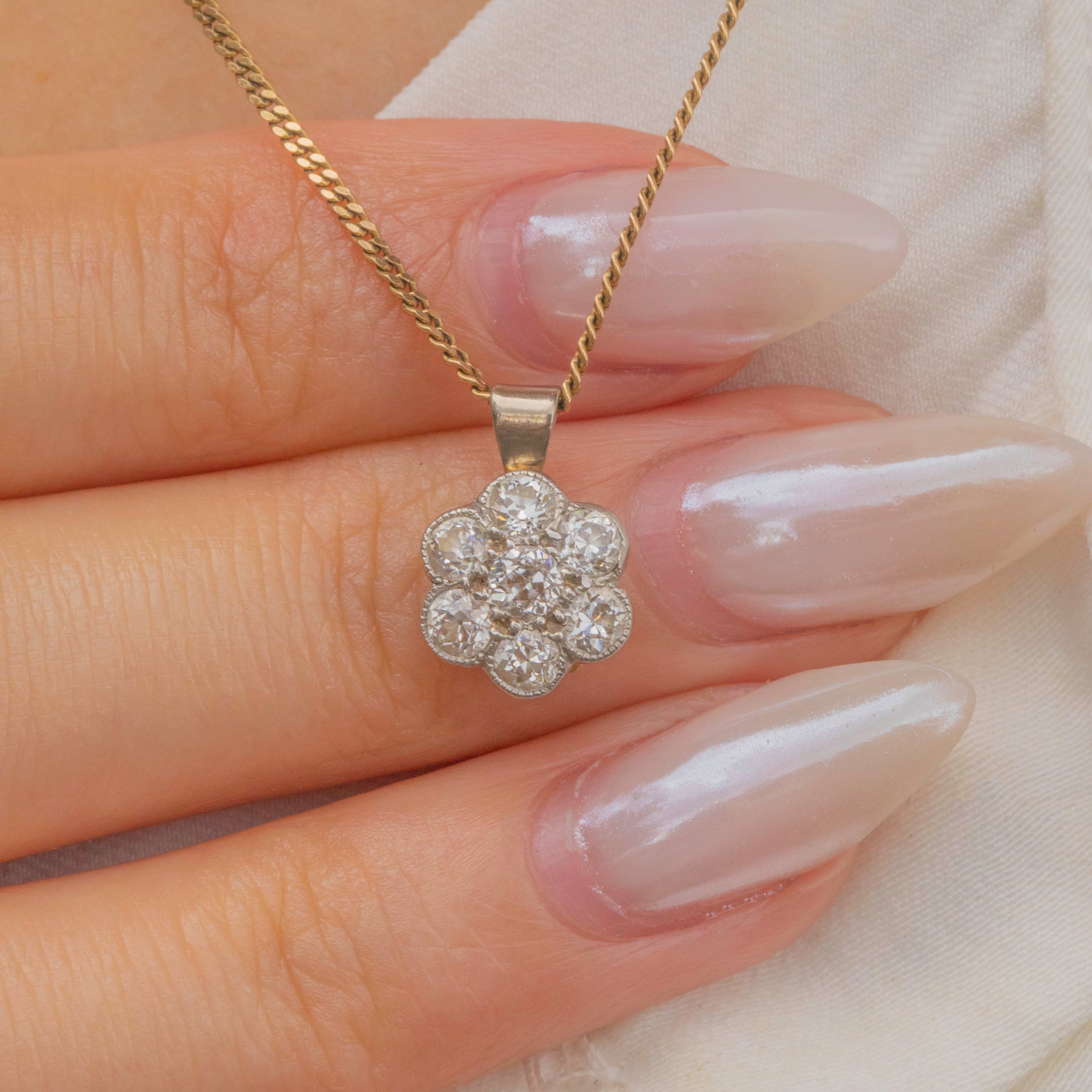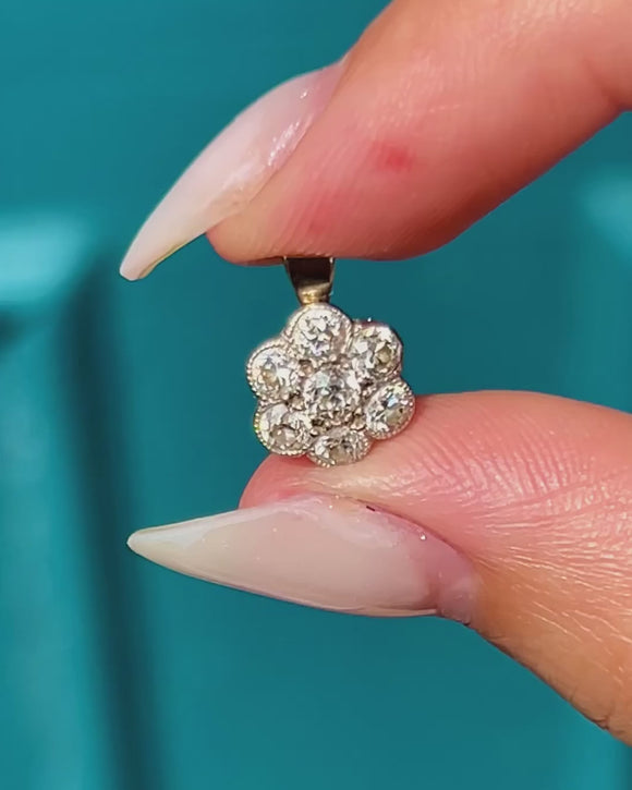 A sweet Diamond flower cluster pendant, home to 0.25 carats of Old European cut Diamonds!
