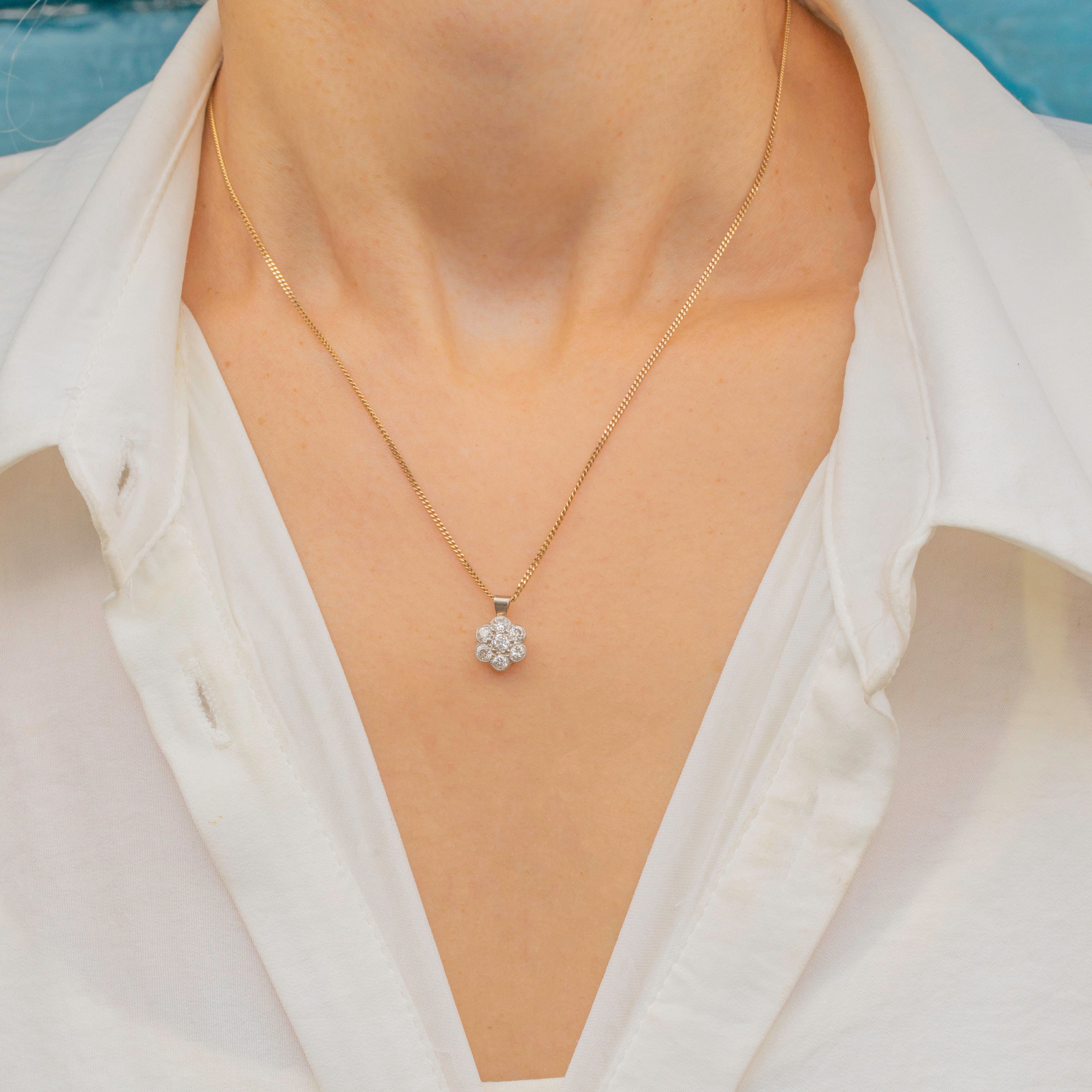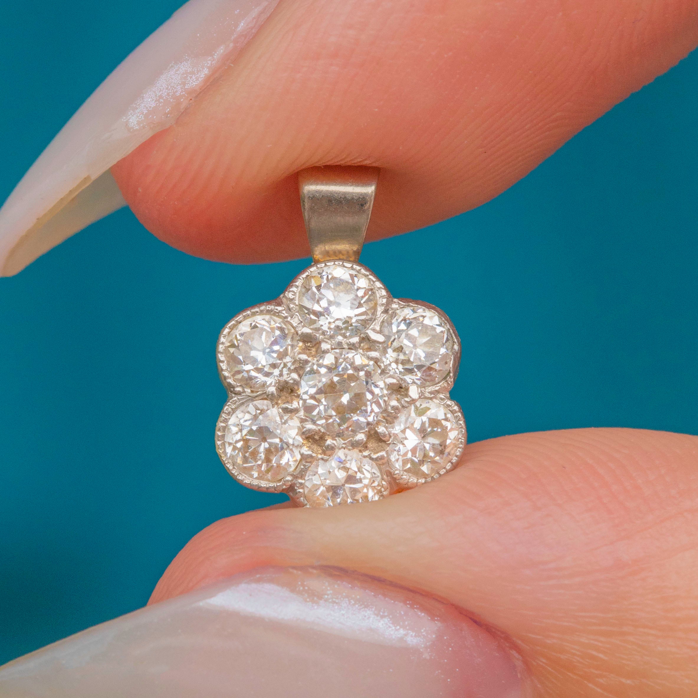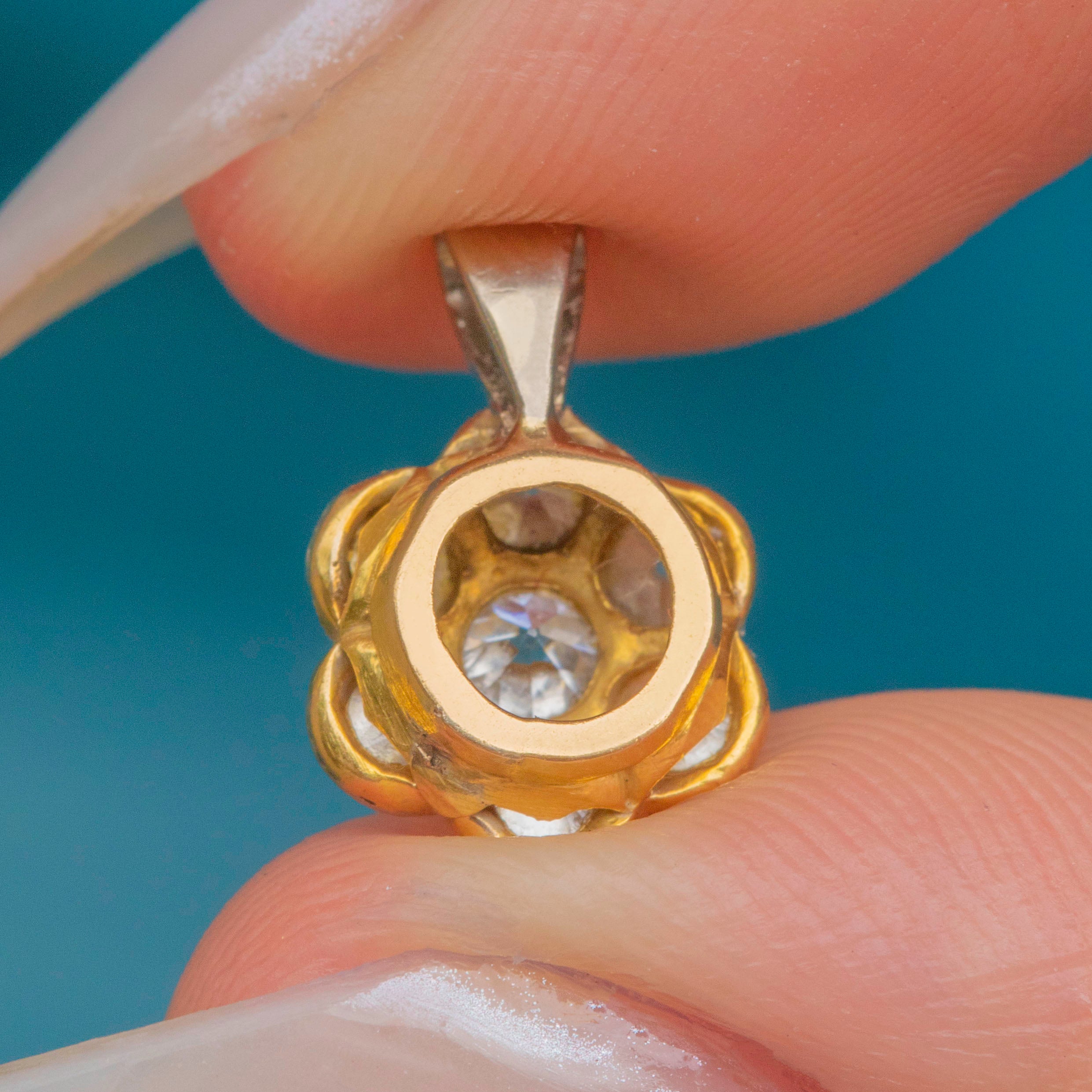 A sweet Diamond flower cluster pendant, home to 0.25 carats of Old European cut Diamonds!