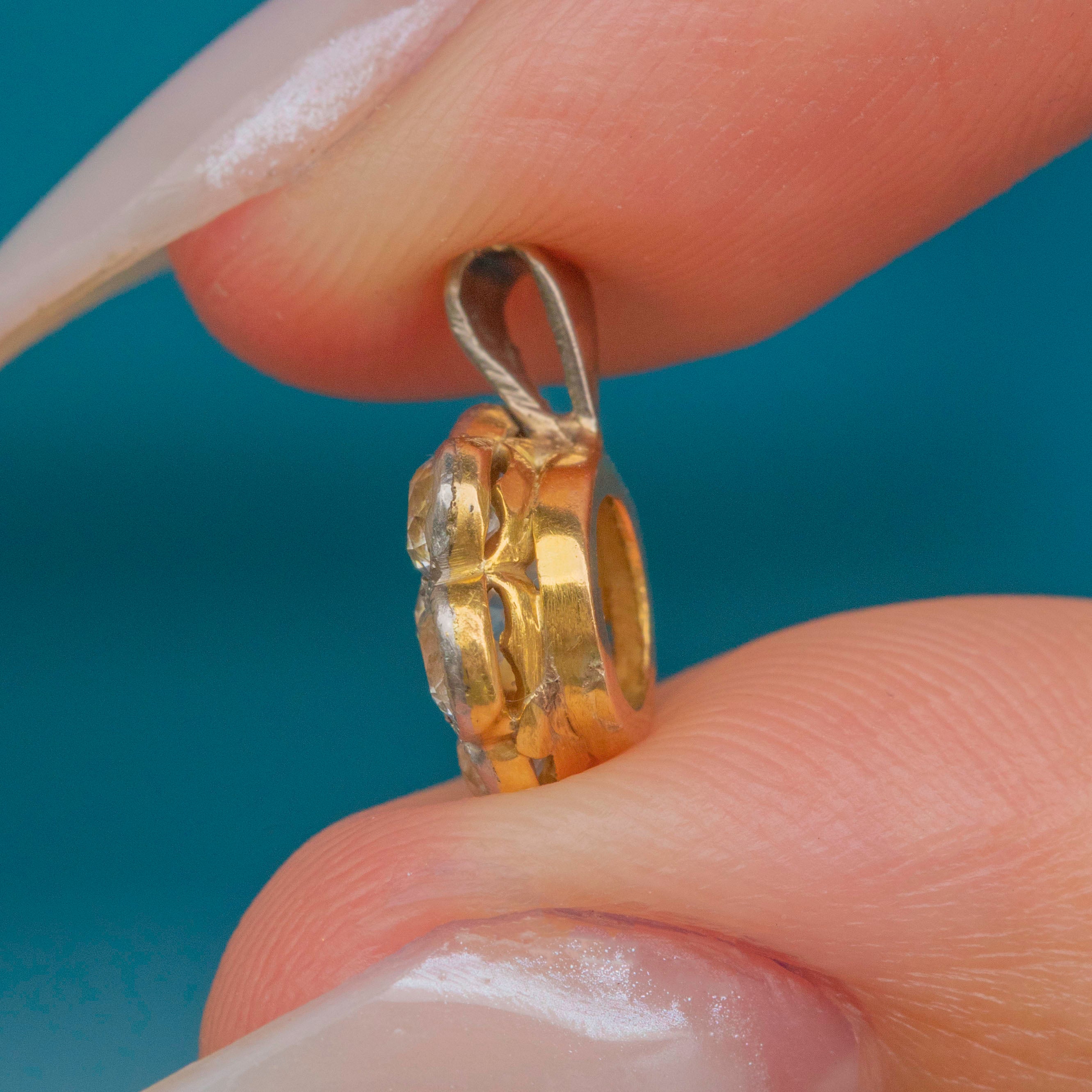 Antique 18ct Gold Diamond Flower Cluster Charm 0.25ct