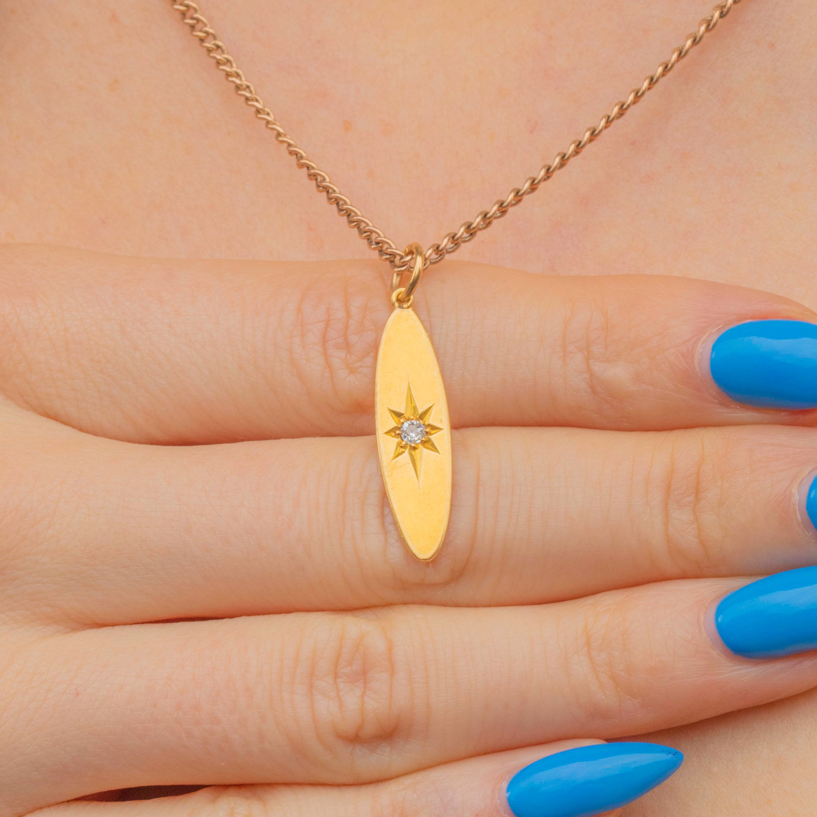 The beauty of this antique 18ct Gold star-set Diamond pendant is in the simplicity of its design, its ability to marry with your other Golden goodies, and its timeless charm!