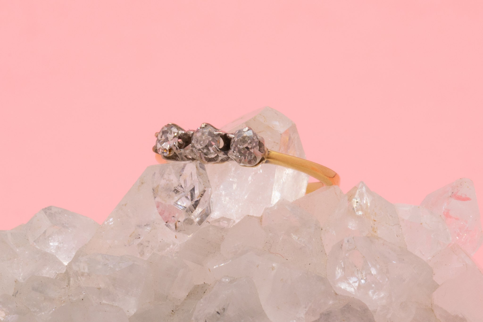 A divine antique 18ct Gold Diamond trilogy ring sure to make a very fine addition to your collection! Each of the Diamonds dazzle from afar, perfectly complemented by sumptuous 18ct Gold.
