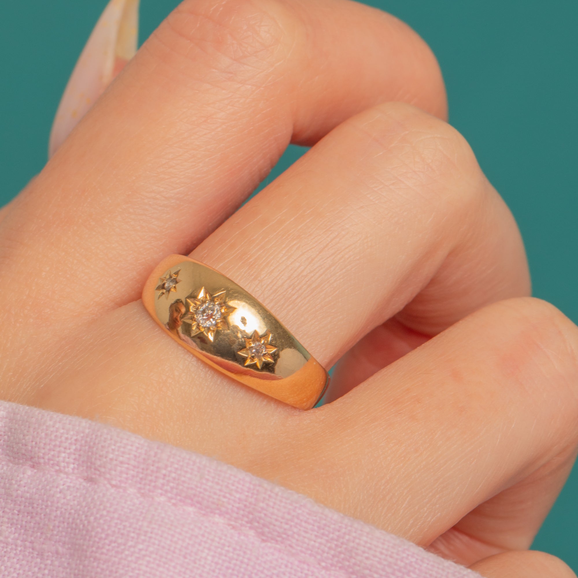 Antique 18ct Gold Domed Profile Diamond Stars Trilogy Stacking Ring