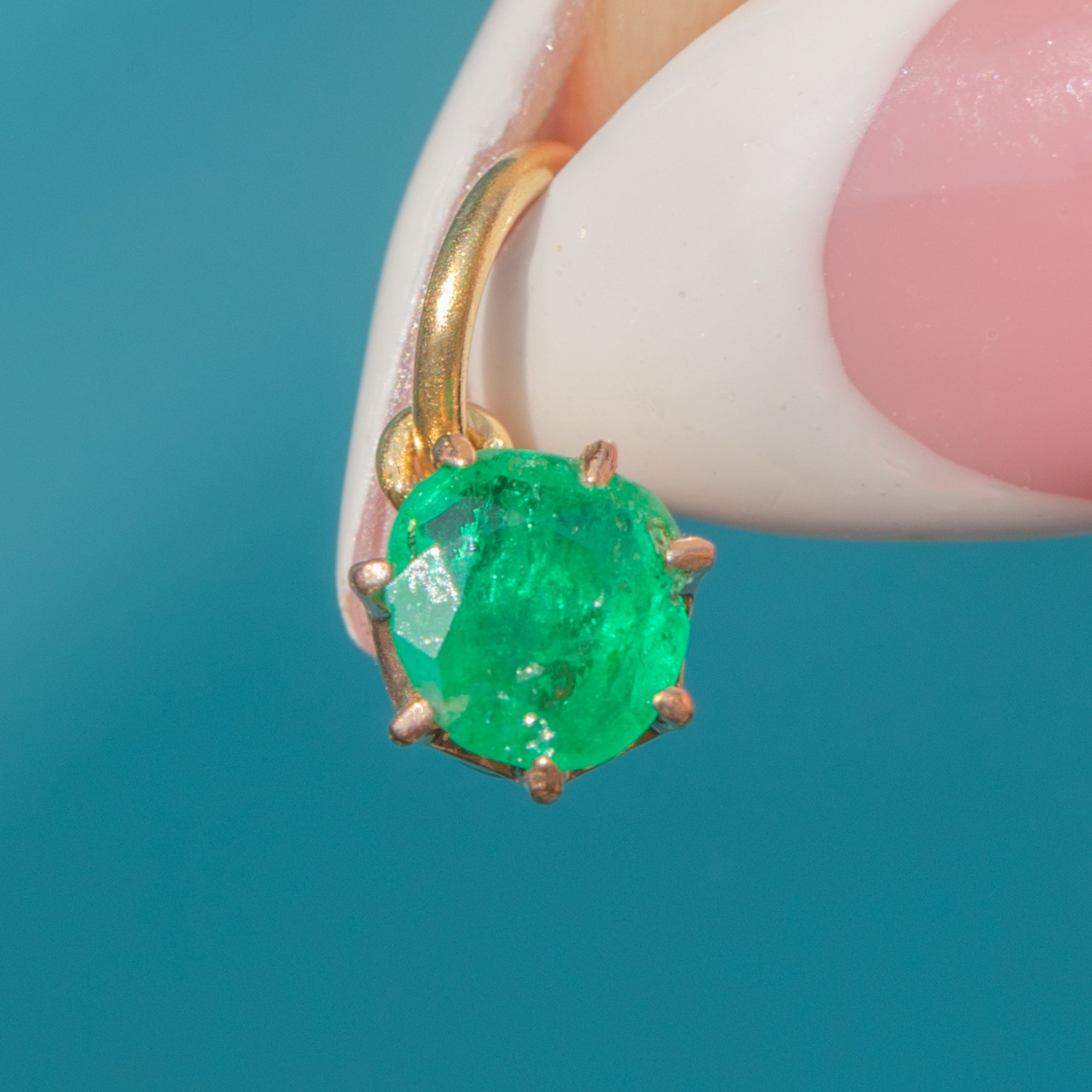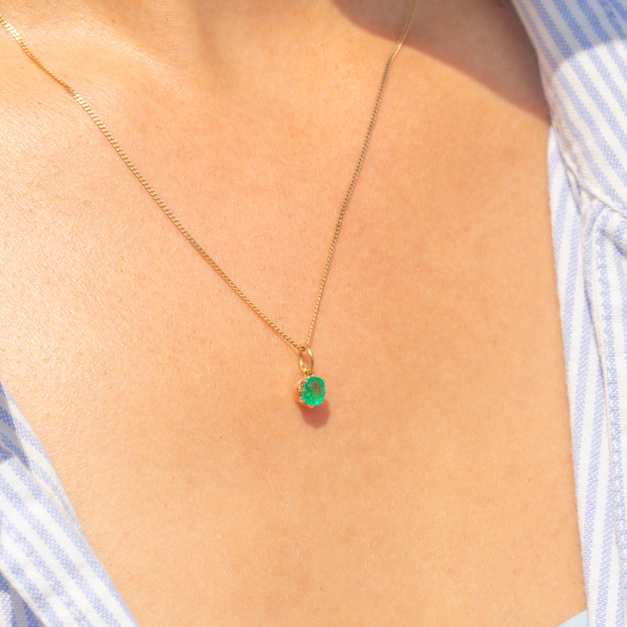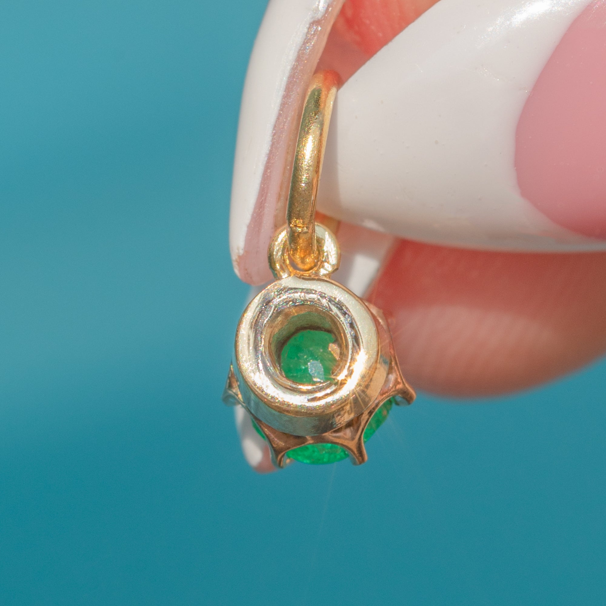 A charming Victorian Emerald charm crafted in rich 18ct Gold. The vivid green Emerald is secured in an elegant claw setting, showcasing the natural beauty of the gemstone.
