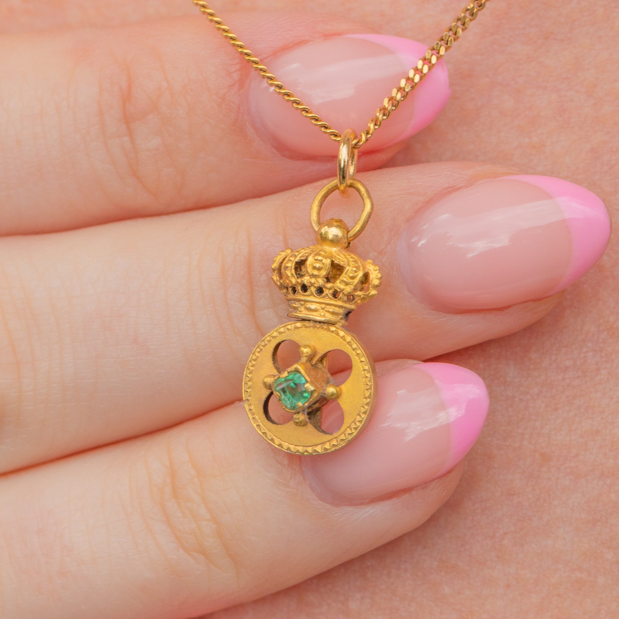 This antique 18ct Gold Emerald crown charm is the sweetest way to add some regal energy into your collection.