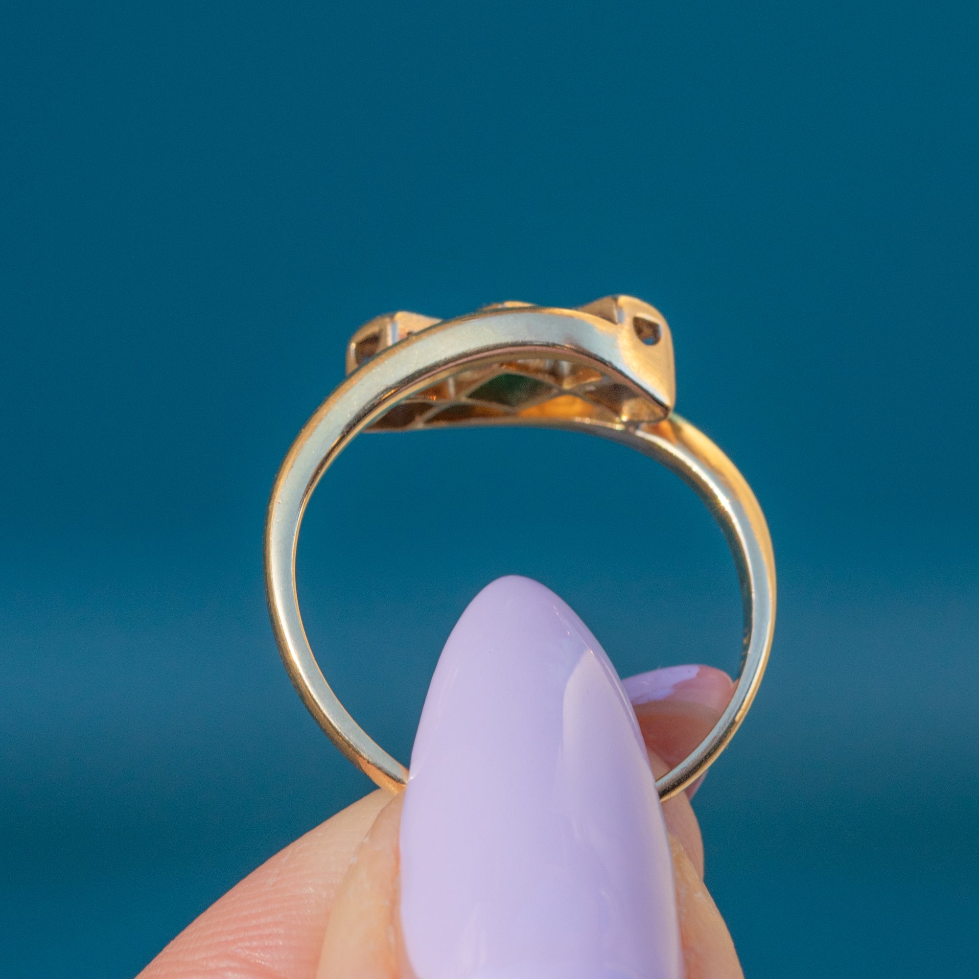 Antique 18ct Gold Emerald Diamond Bypass Ring