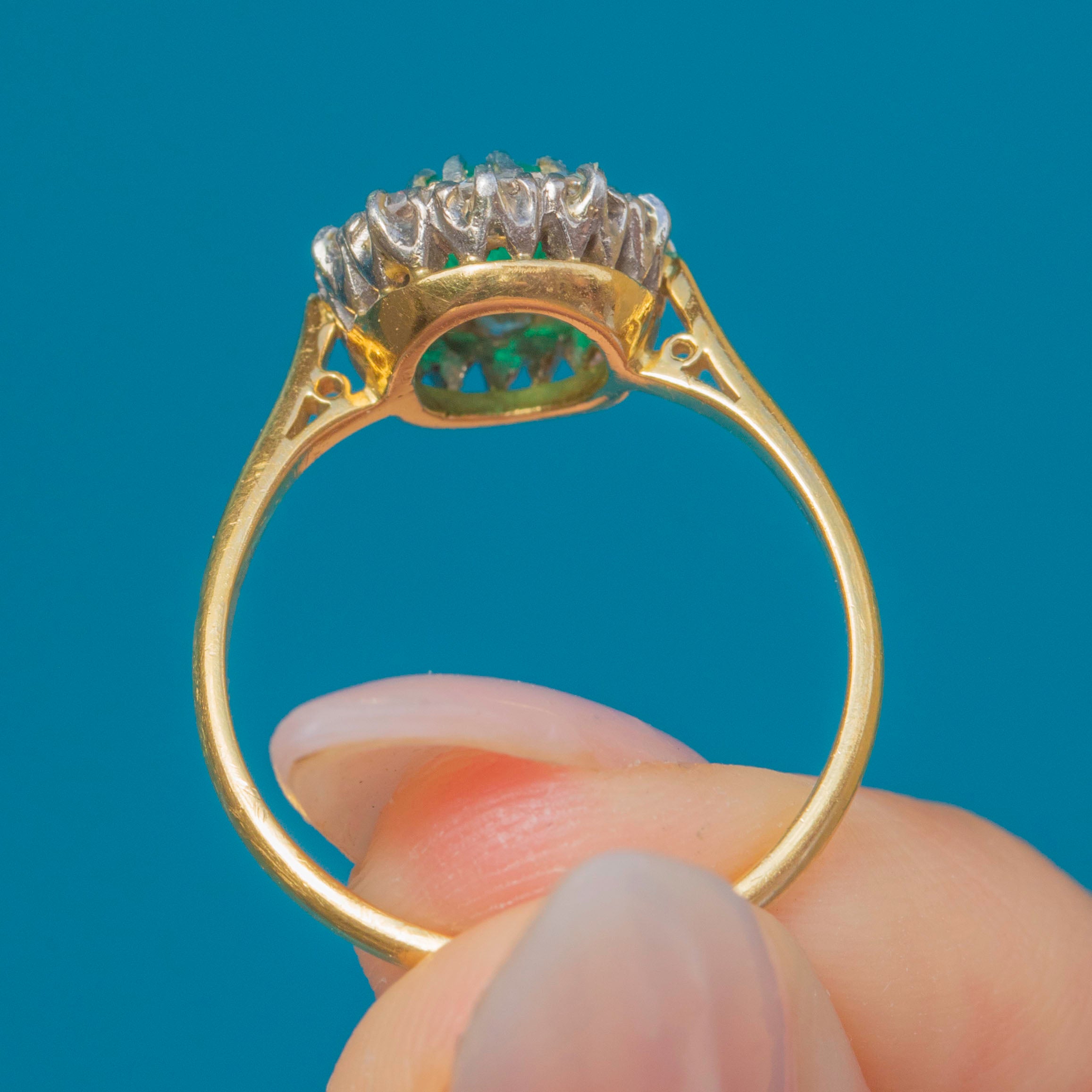 Antique 18ct Gold Emerald Diamond Cluster Engagement Ring
