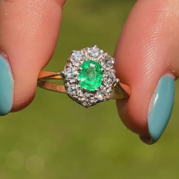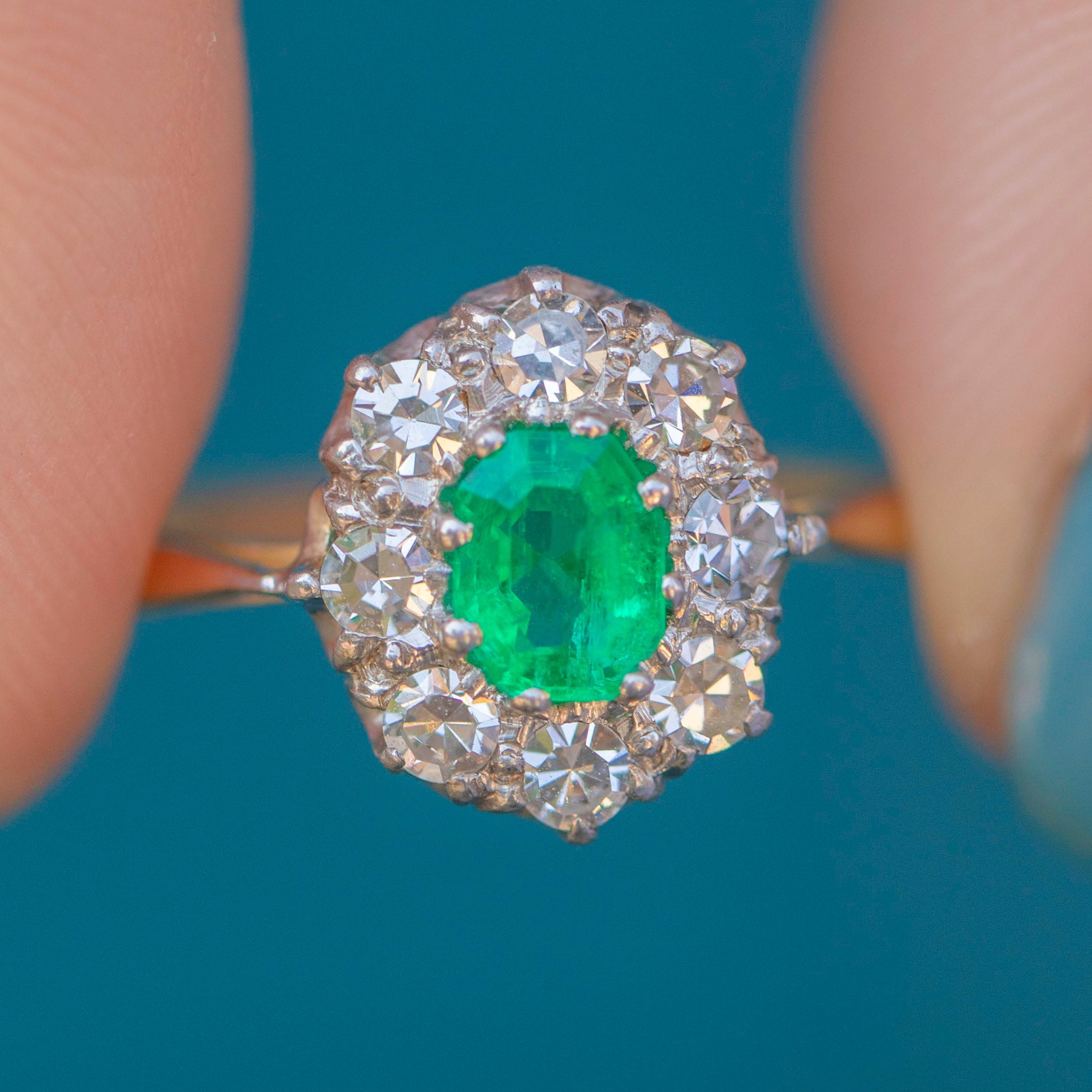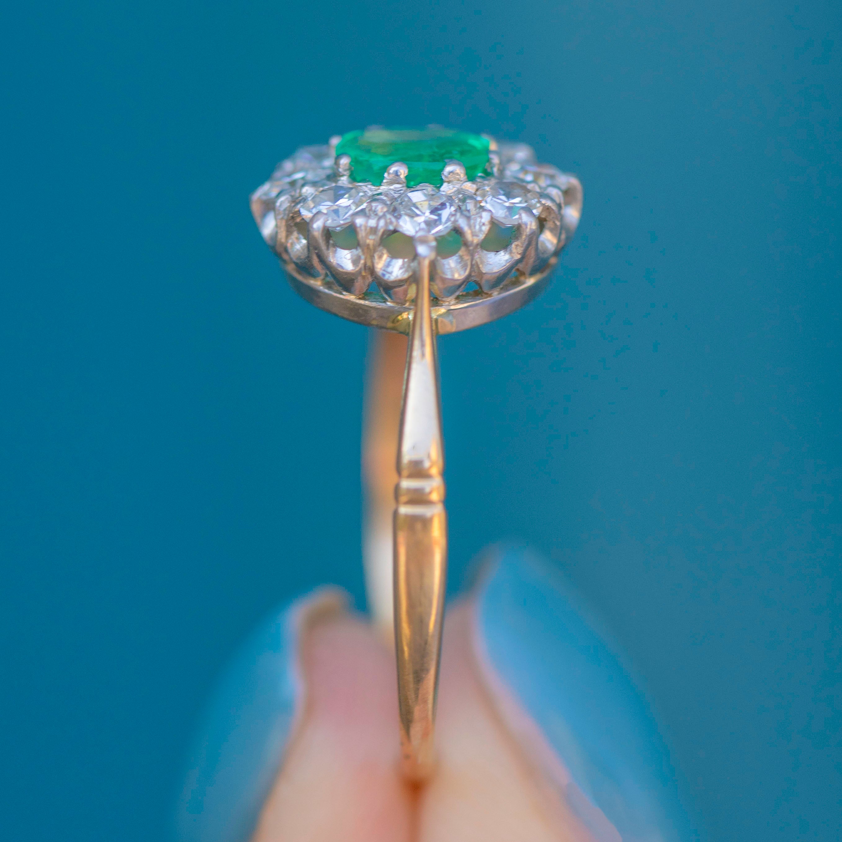 Antique 18ct Gold Emerald & Diamond Cluster Ring, 0.60ct Emerald