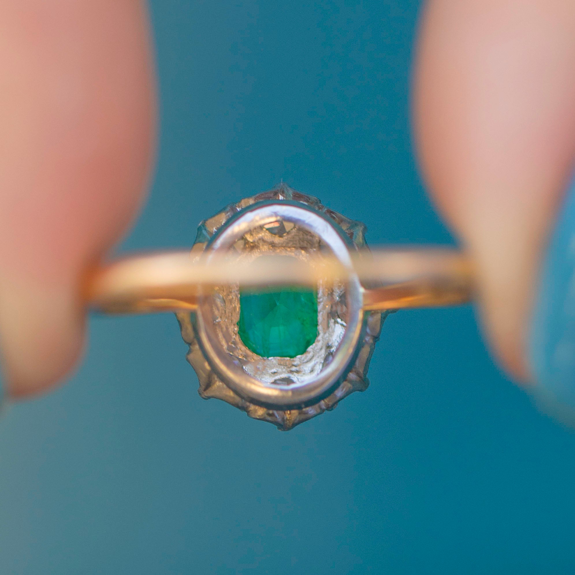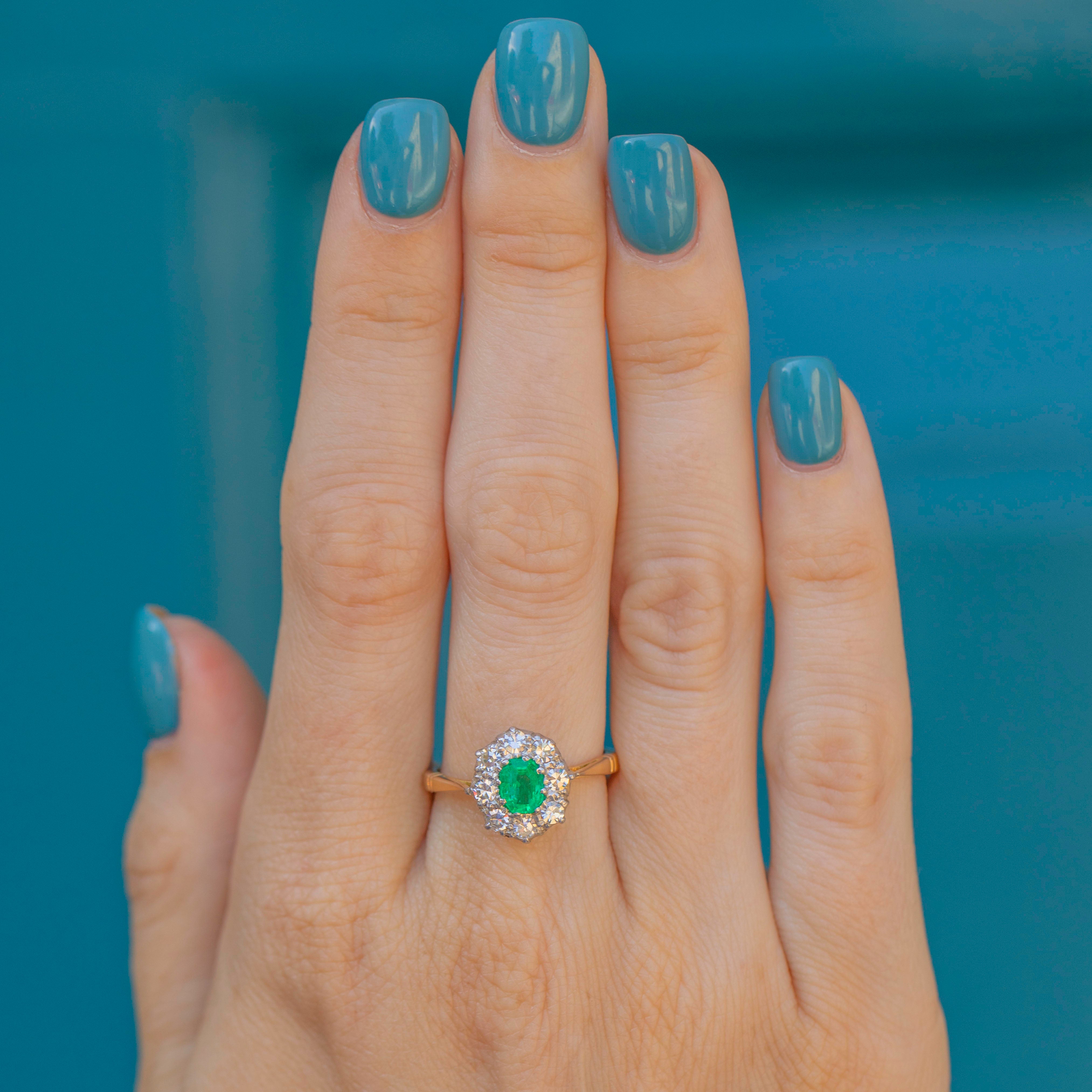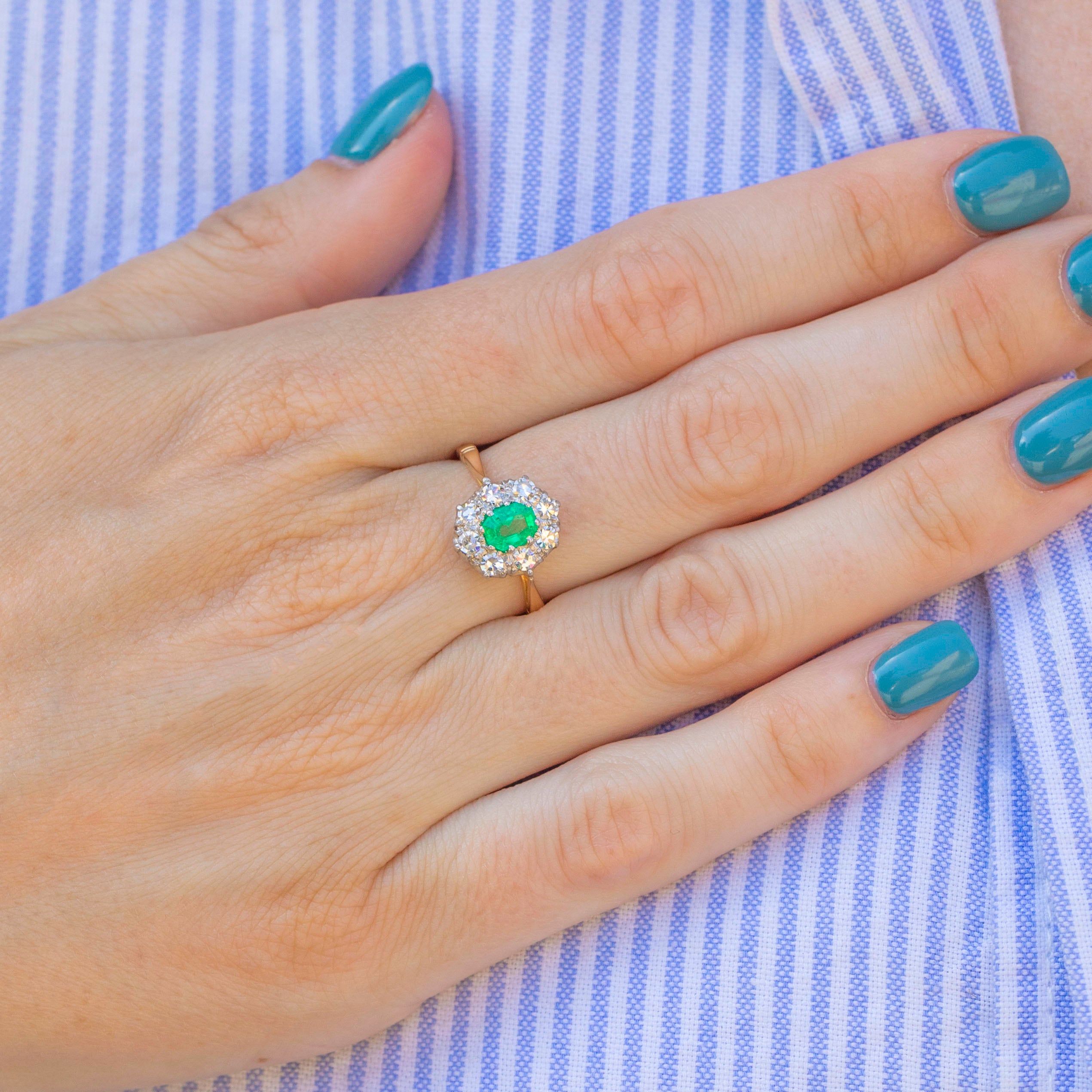 Antique 18ct Gold Emerald & Diamond Cluster Ring, 0.60ct Emerald