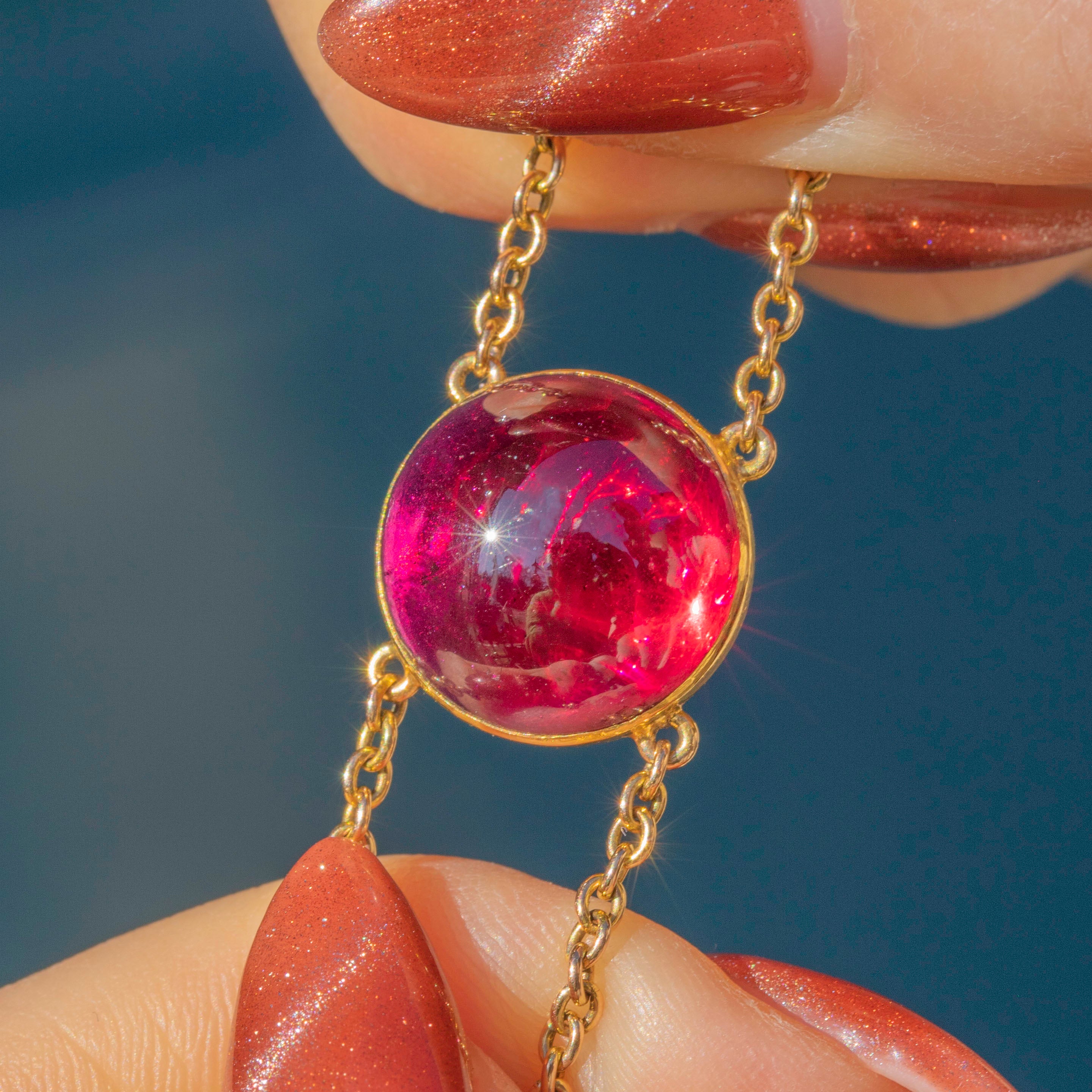 We are obsessed with this antique 18ct Gold Garnet cabochon bracelet! Boasting 89.00ct of cherry red cabochon cut Garnets, each one has been foiled to perfection, making this bracelet a delectable treasure!