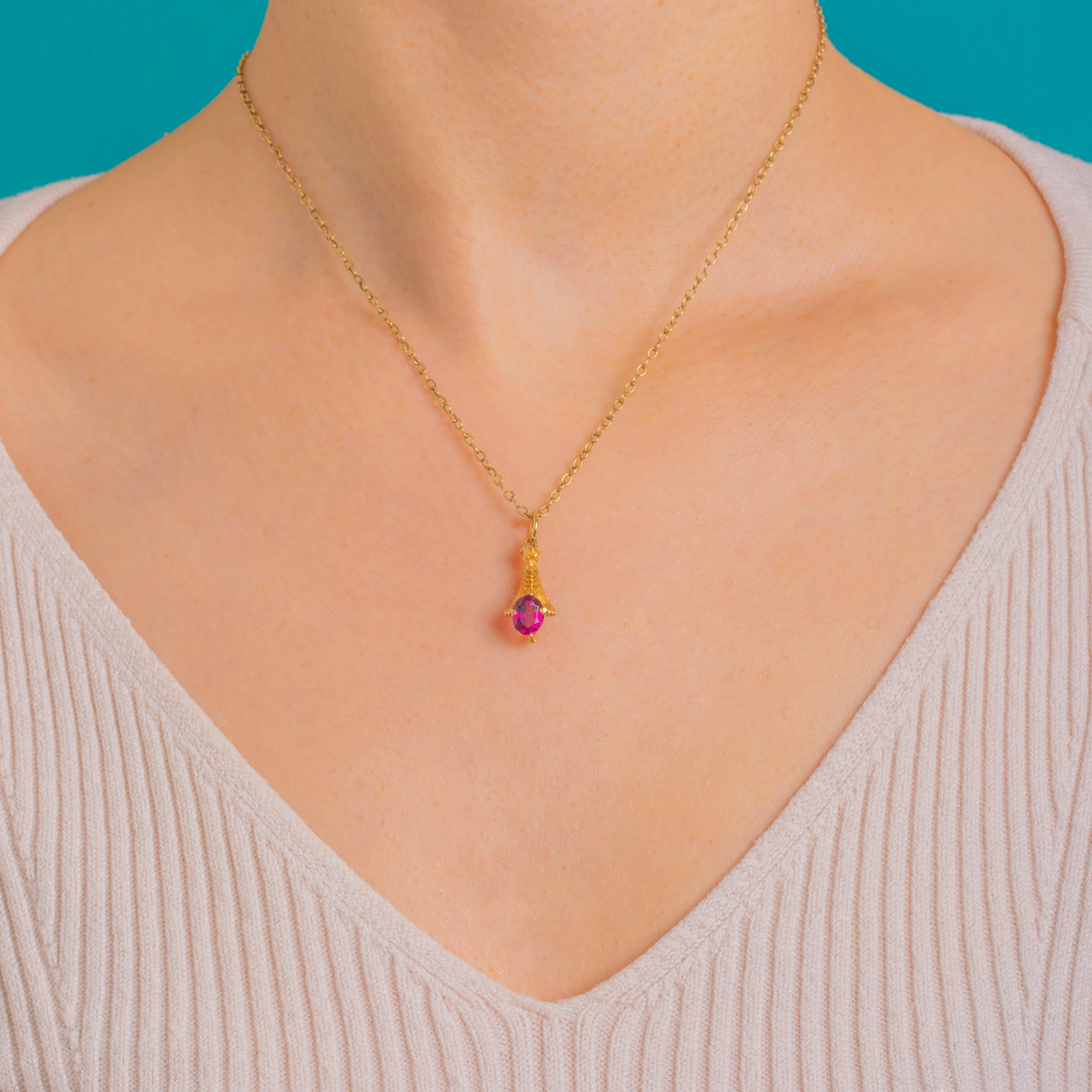 Petite yet full of character, the saturated pinkish-red Garnet (approximately 1.00ct) draws the eye with lively sparkle, its neat prong setting adding a refined finish. A charming accent for your favourite chain or curated charm necklace, brimming with whimsical Victorian character.