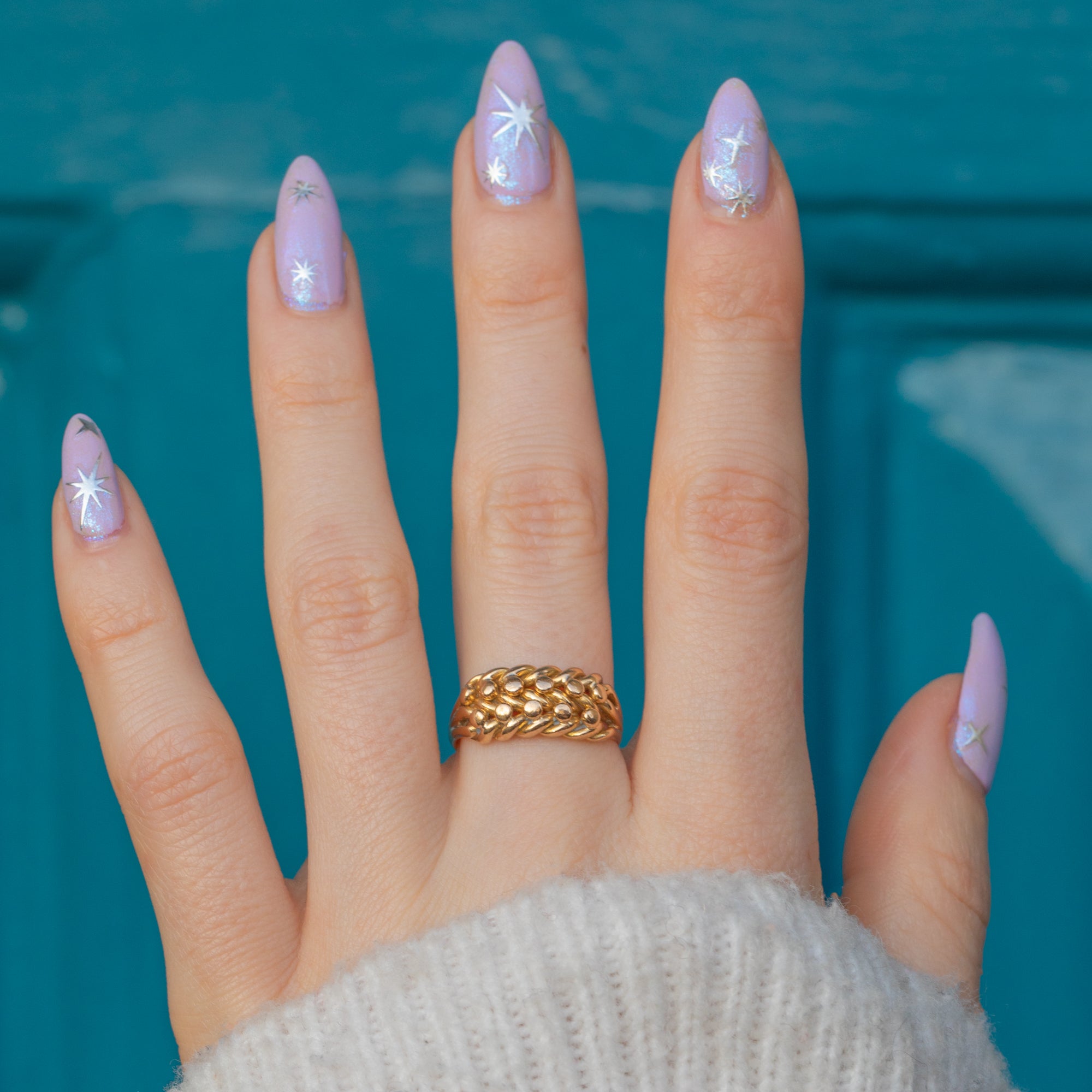 This is an incredible Edwardian 18ct Gold keeper ring! Crafted entirely from richly saturated 18ct Gold formed into intricately knotted rows with ball detailing, she's an eye-catching piece.