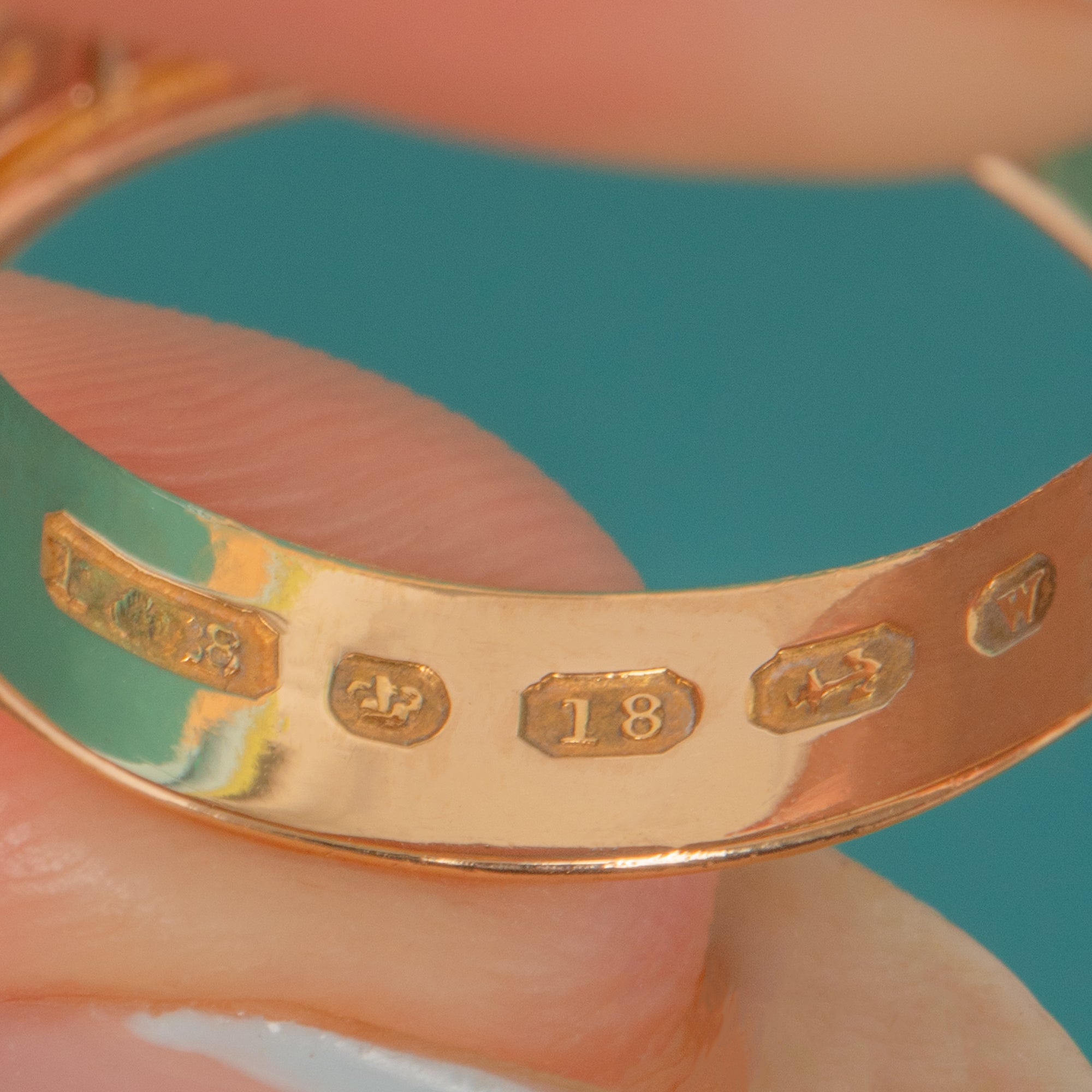 Fully hallmarked for Birmingham with the date letter W for 1871, this cherished message ring is a timeless token of love and remembrance, rendered in warm, high-carat Gold with beautifully crisp detail.