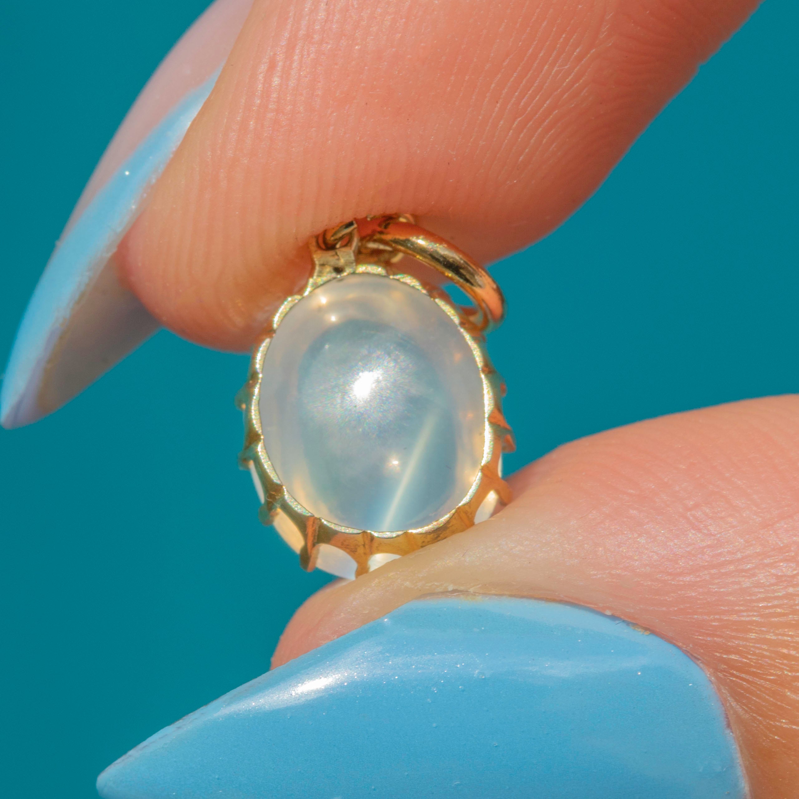 This sublime antique 18ct Gold Moonstone charm epitomises sophistication! The ethereal 4.00ct Moonstone is held proudly within sumptuous 18ct Gold claws, revealing that blue adularescence for which antique Moonstone is so revered.