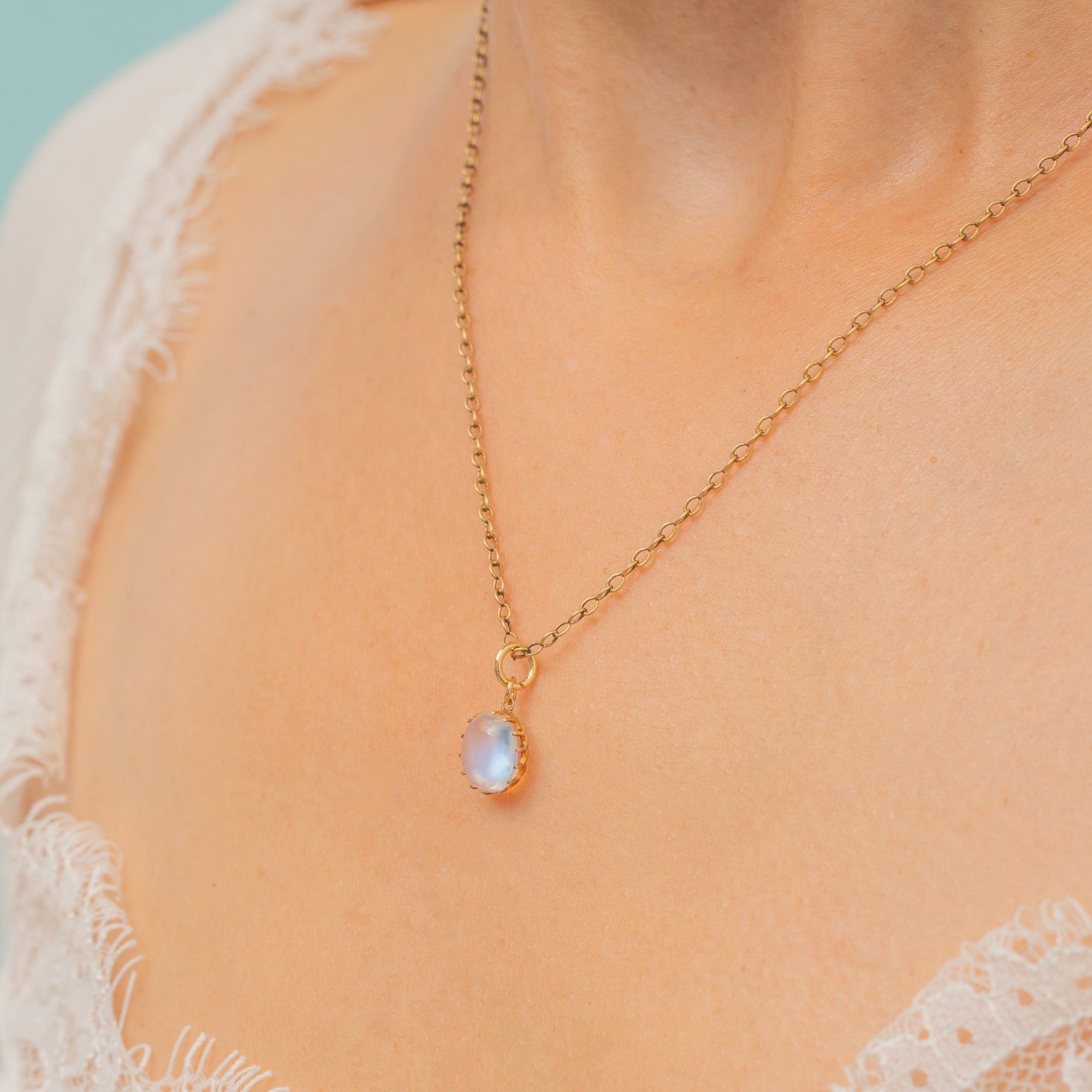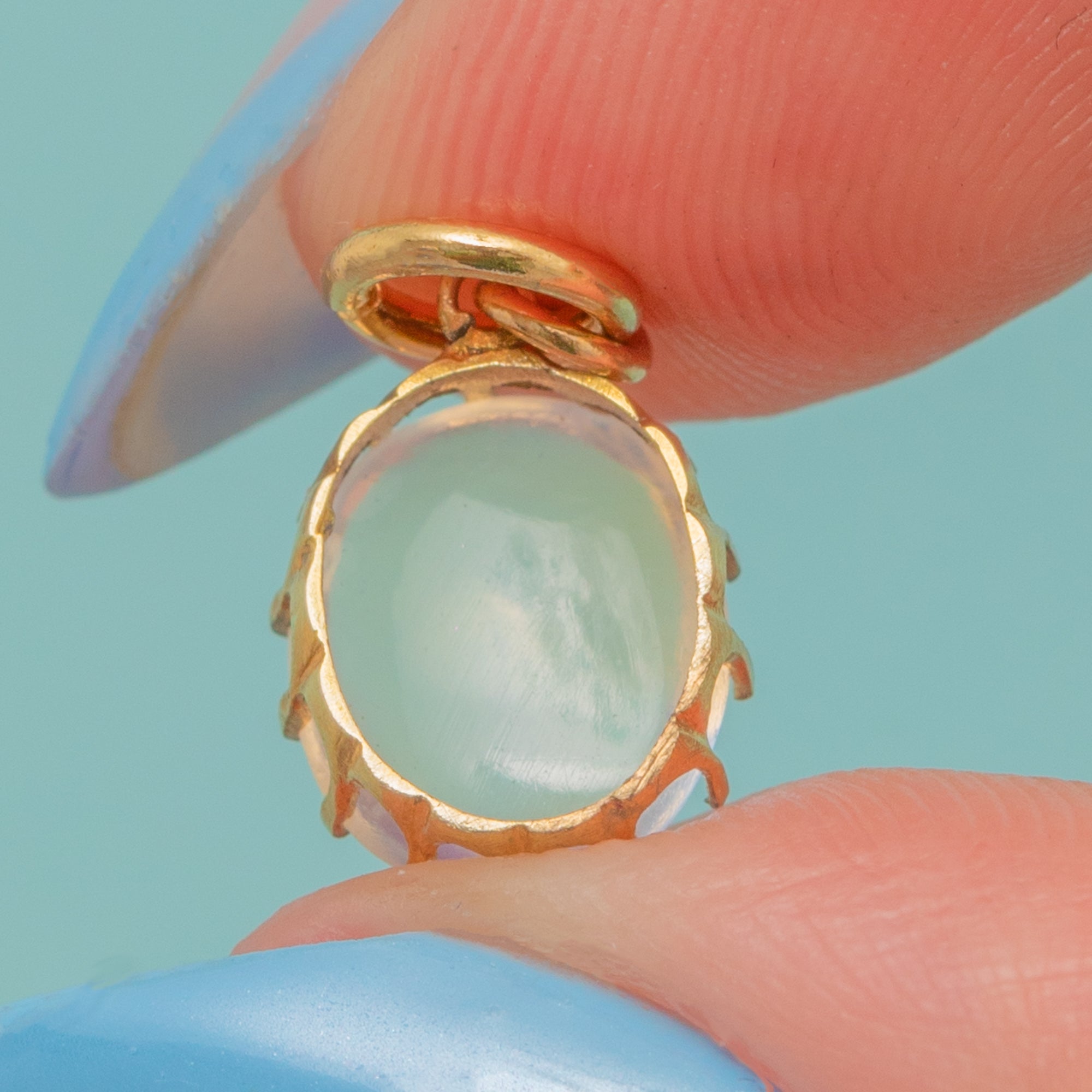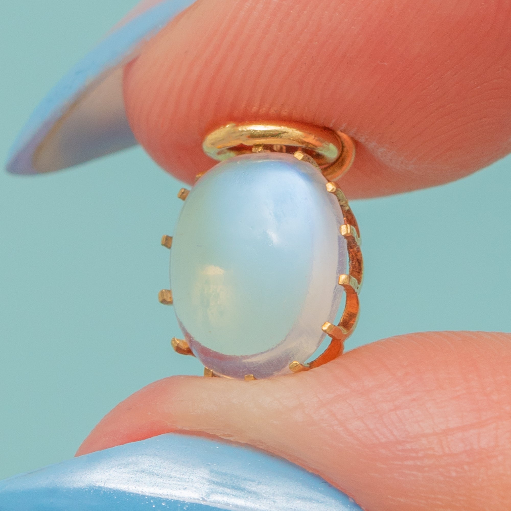 EXCELLENT:  The Moonstone is secure within its settings, free from any surface wear or nibbles. Complete with a soldered jump-ring, you can wear this Gold Moonstone pendant with the utmost confidence!