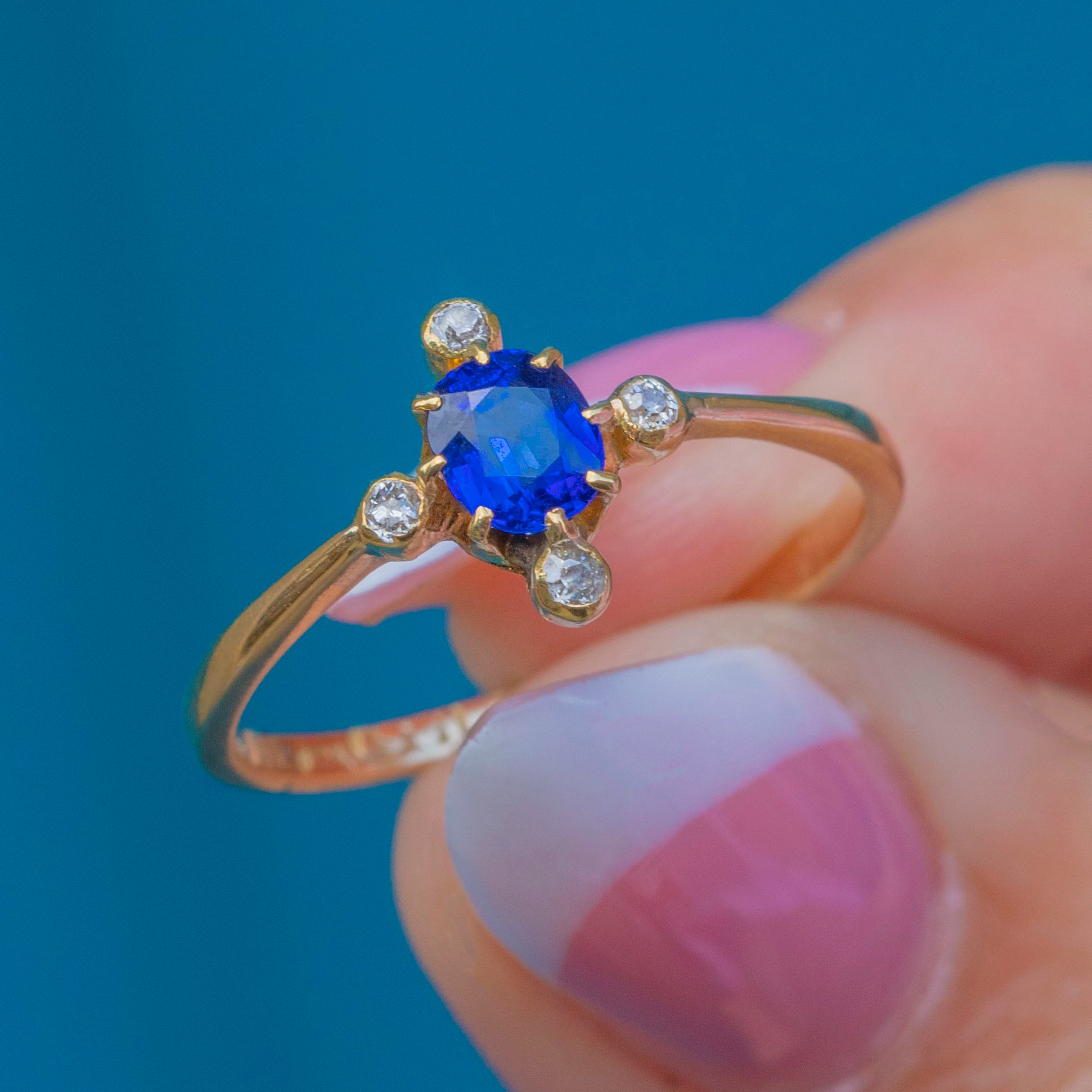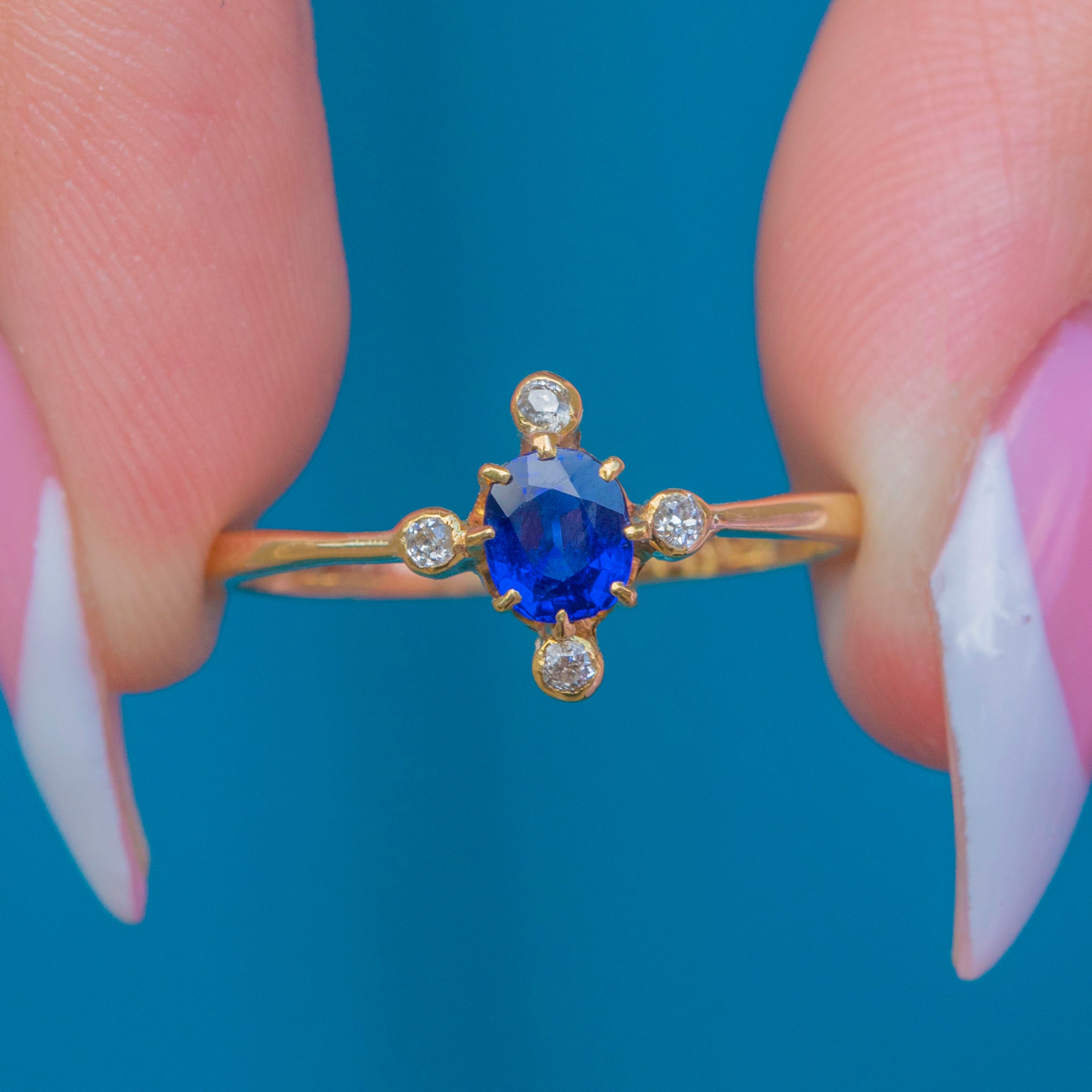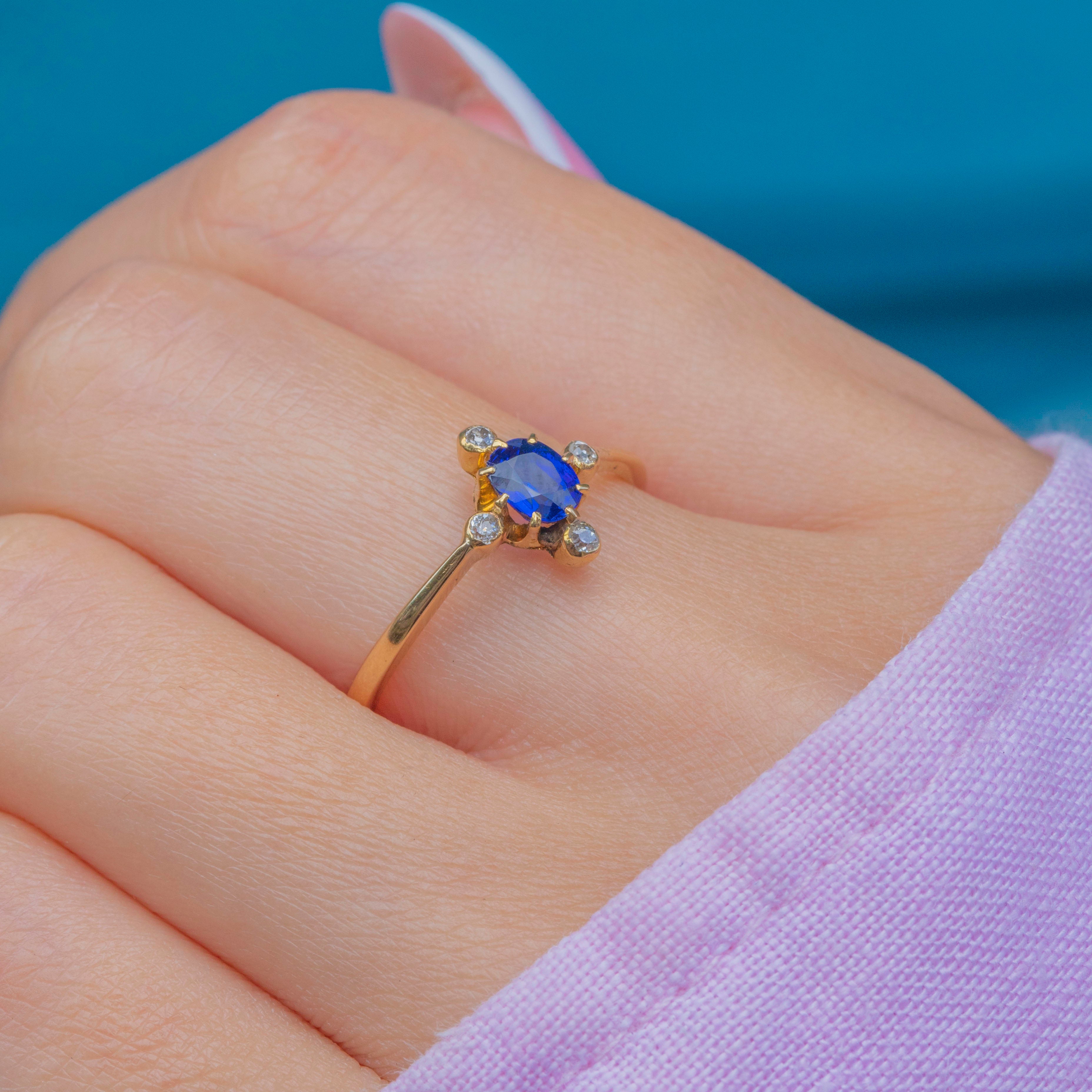Antique 18ct Gold Natural Sapphire & Diamond ring