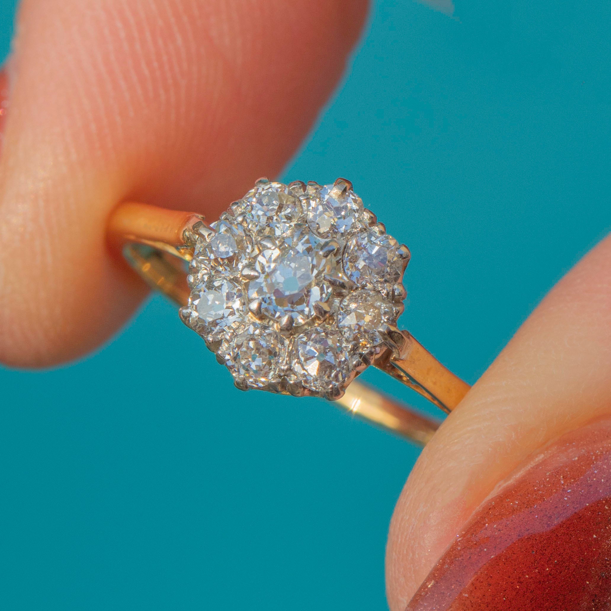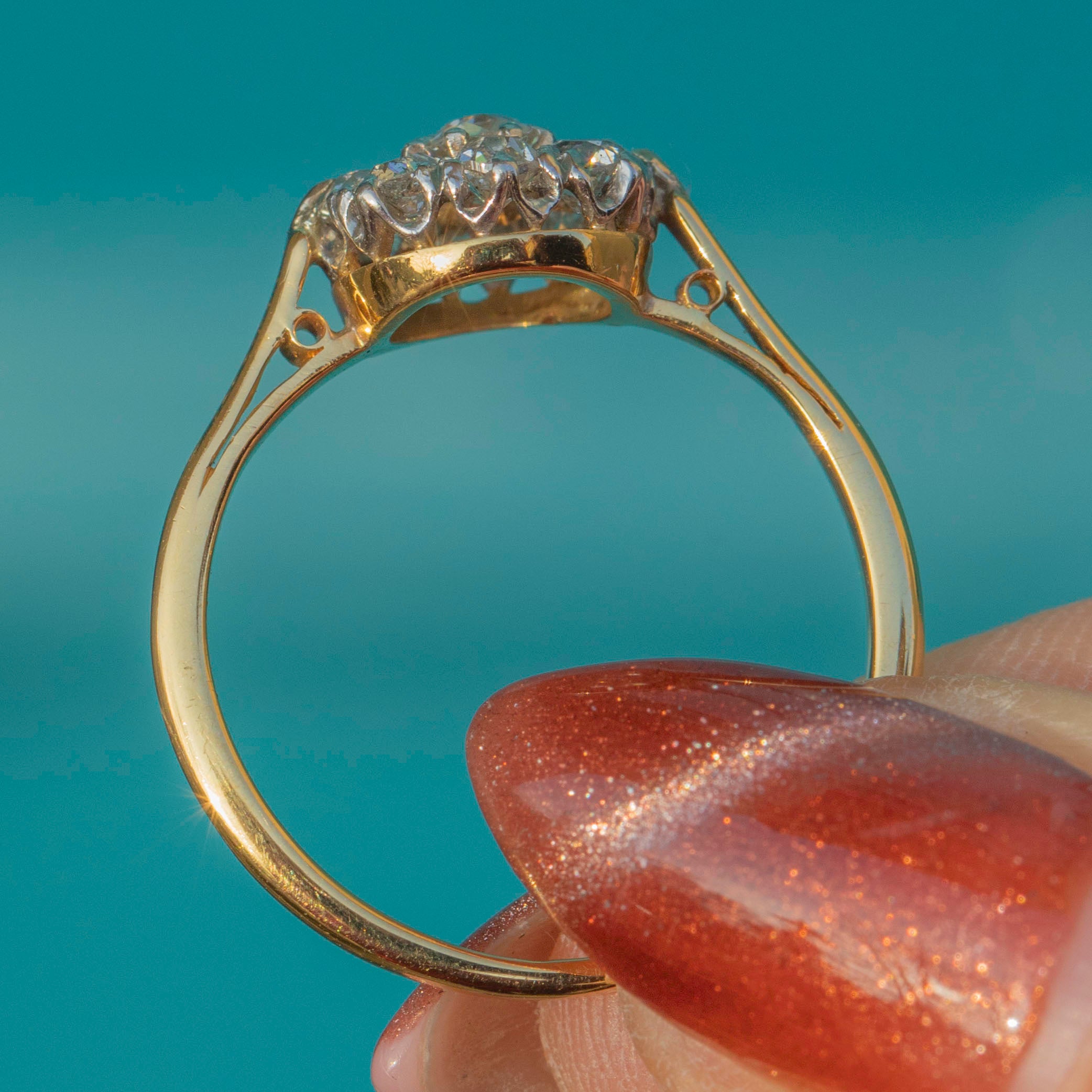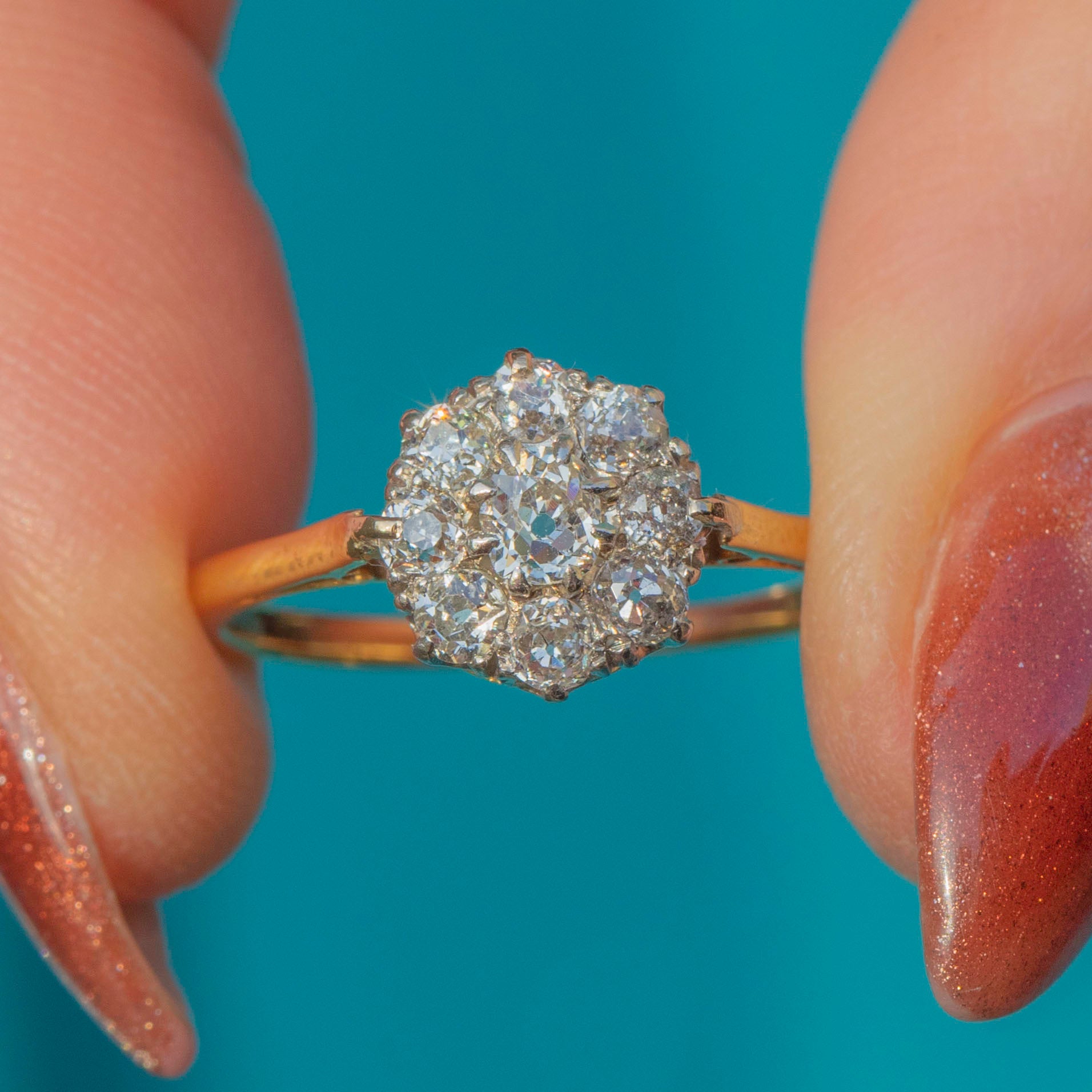 No words can truly convey the beauty of this antique 18ct Gold old mine cut Diamond cluster ring, boasting a total of 0.40cts of scintillating Diamonds that will catch your eye from every angle!