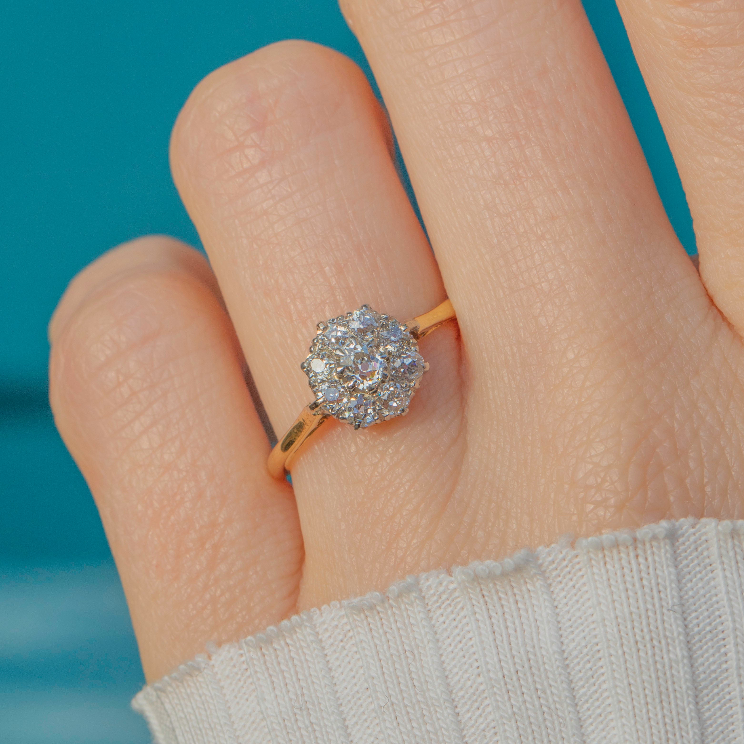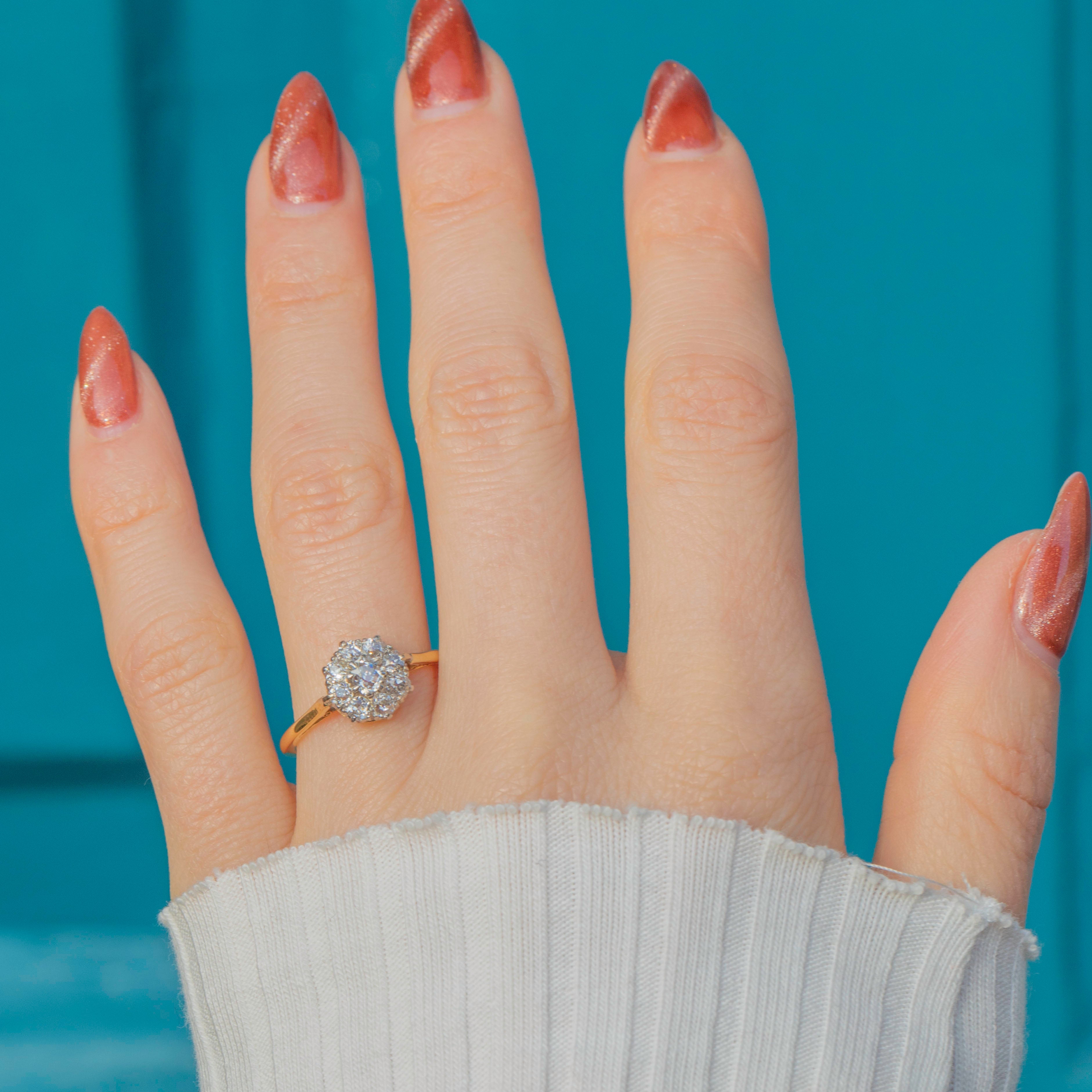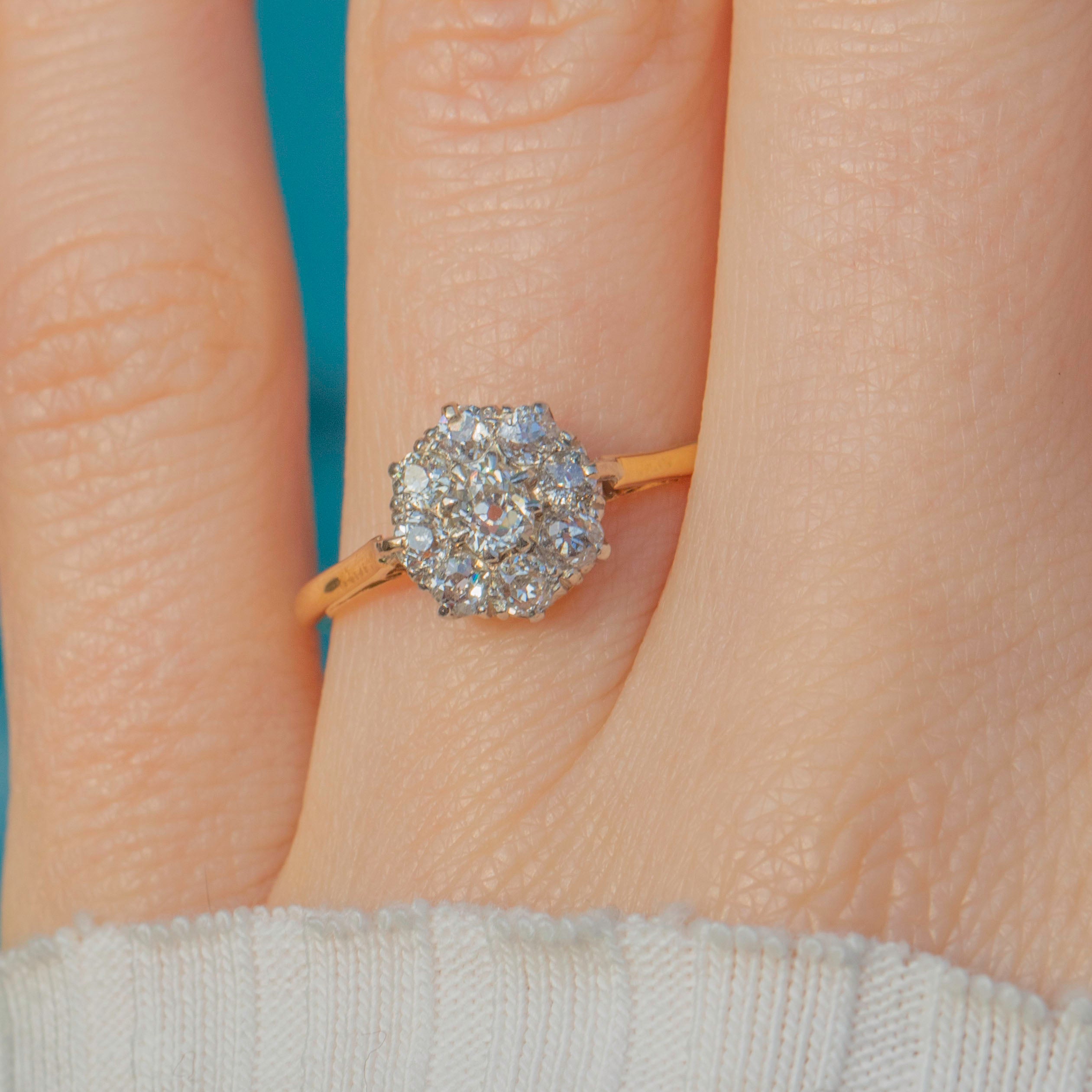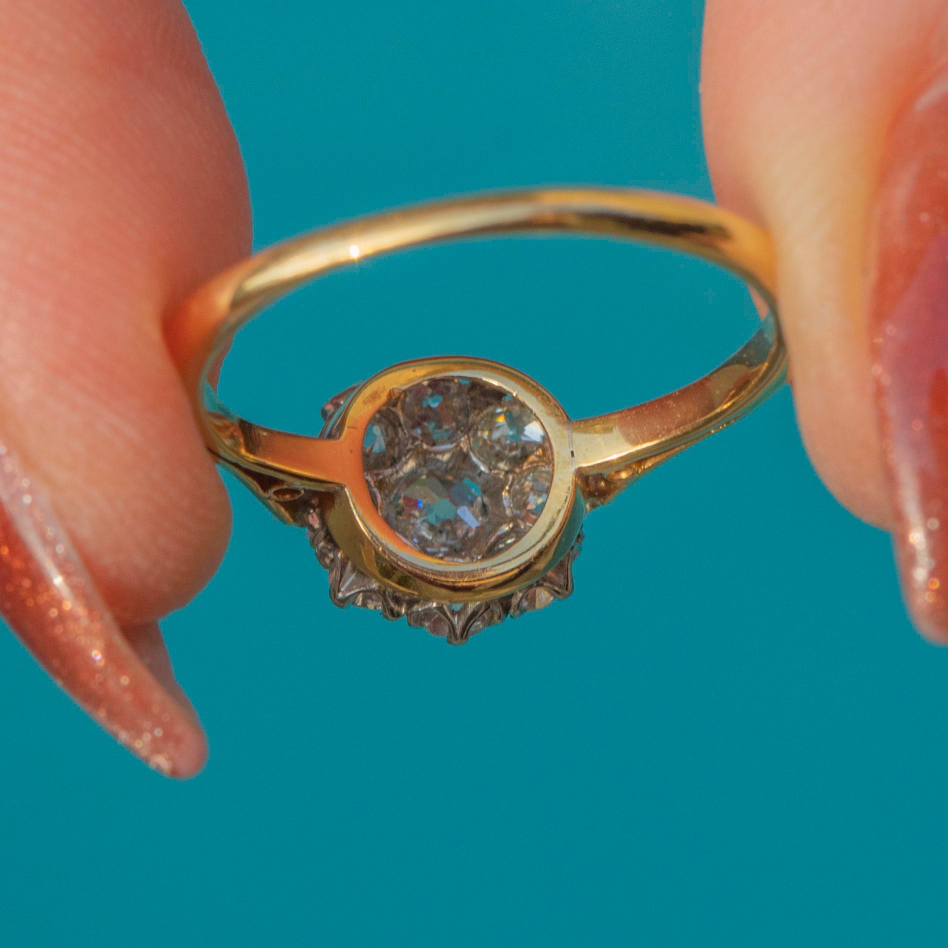 No words can truly convey the beauty of this antique 18ct Gold old mine cut Diamond cluster ring, boasting a total of 0.40cts of scintillating Diamonds that will catch your eye from every angle!
