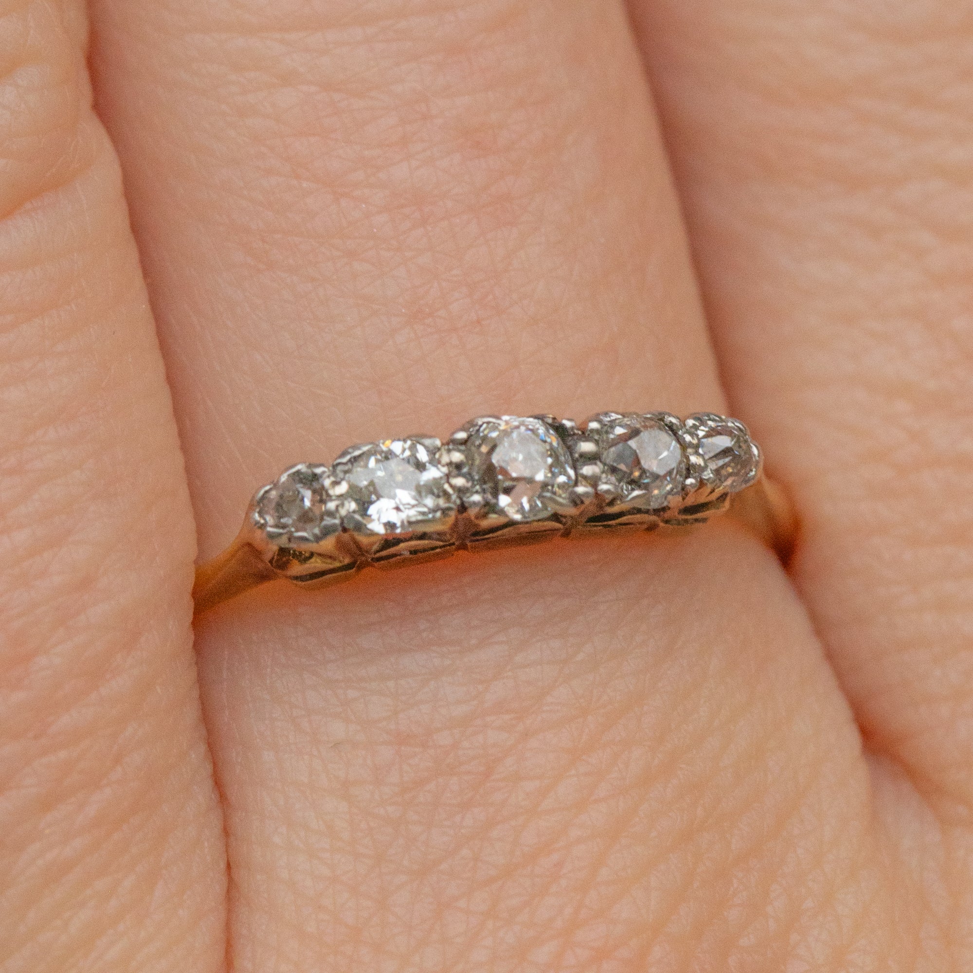 Antique 18ct Gold Old-Mine Cut Diamond Five Stone Ring 0.25ct, 18ct Gold & Plat