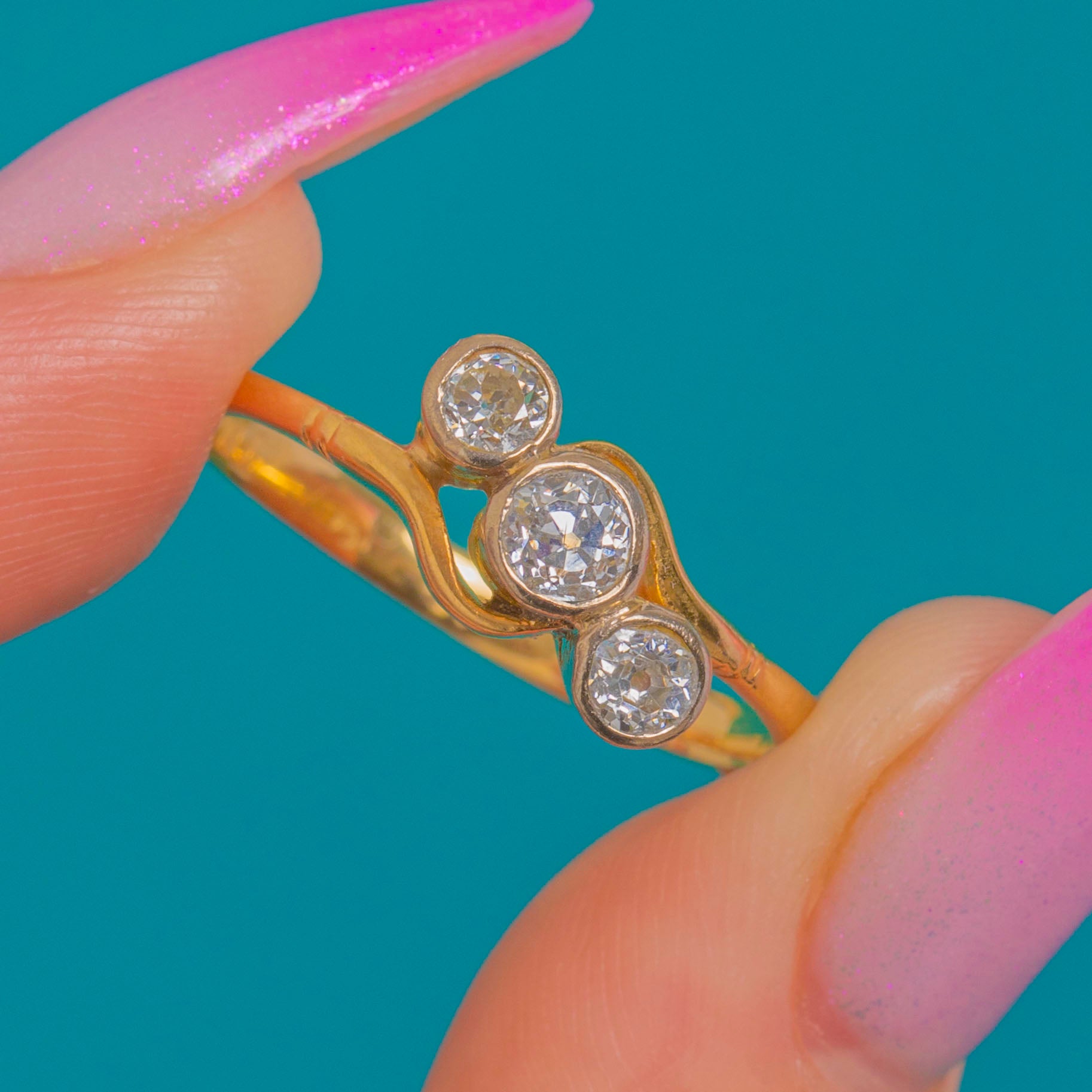 Antique 18ct Gold Old Mine-Cut Diamond Trilogy Ring, 0.22ct Engagement Ring
