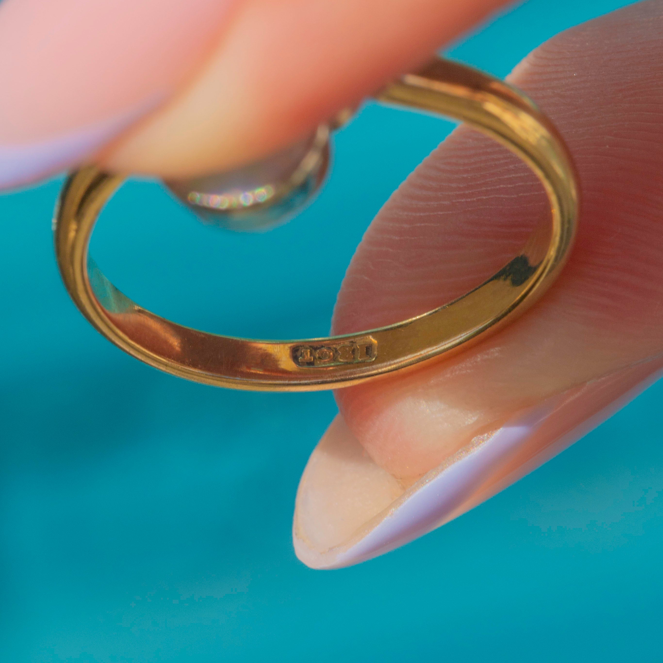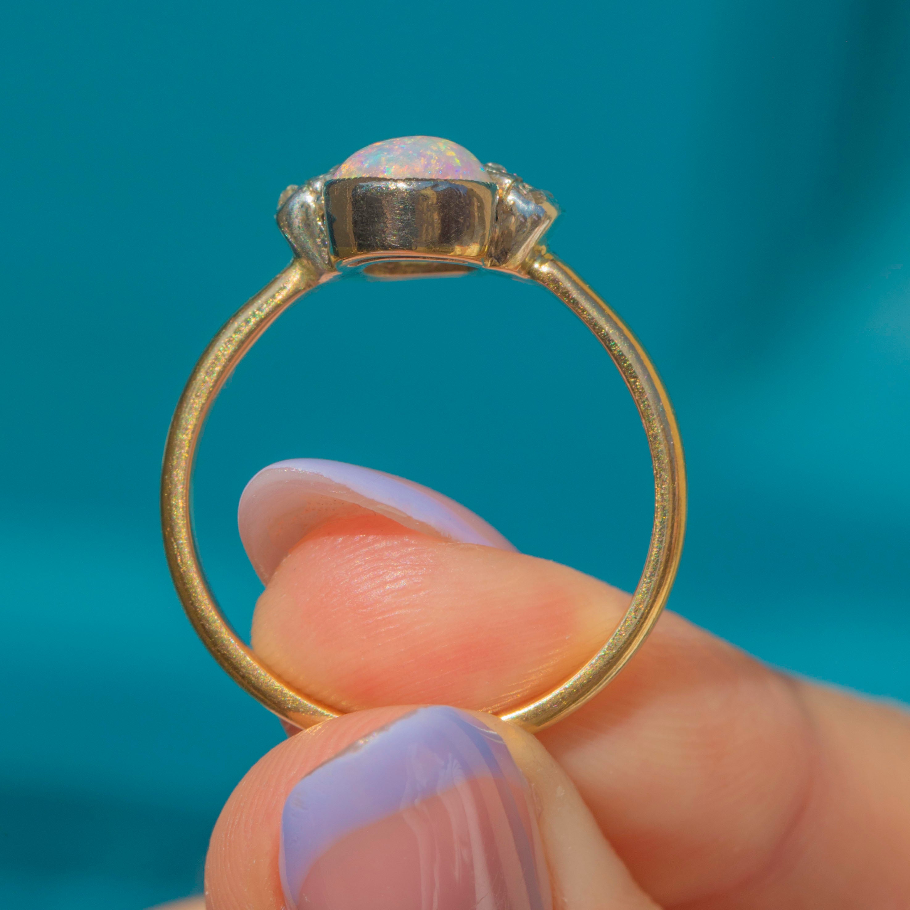 Antique 18ct Gold Opal Diamond Ring, 1.64ct Natural Solid Opal