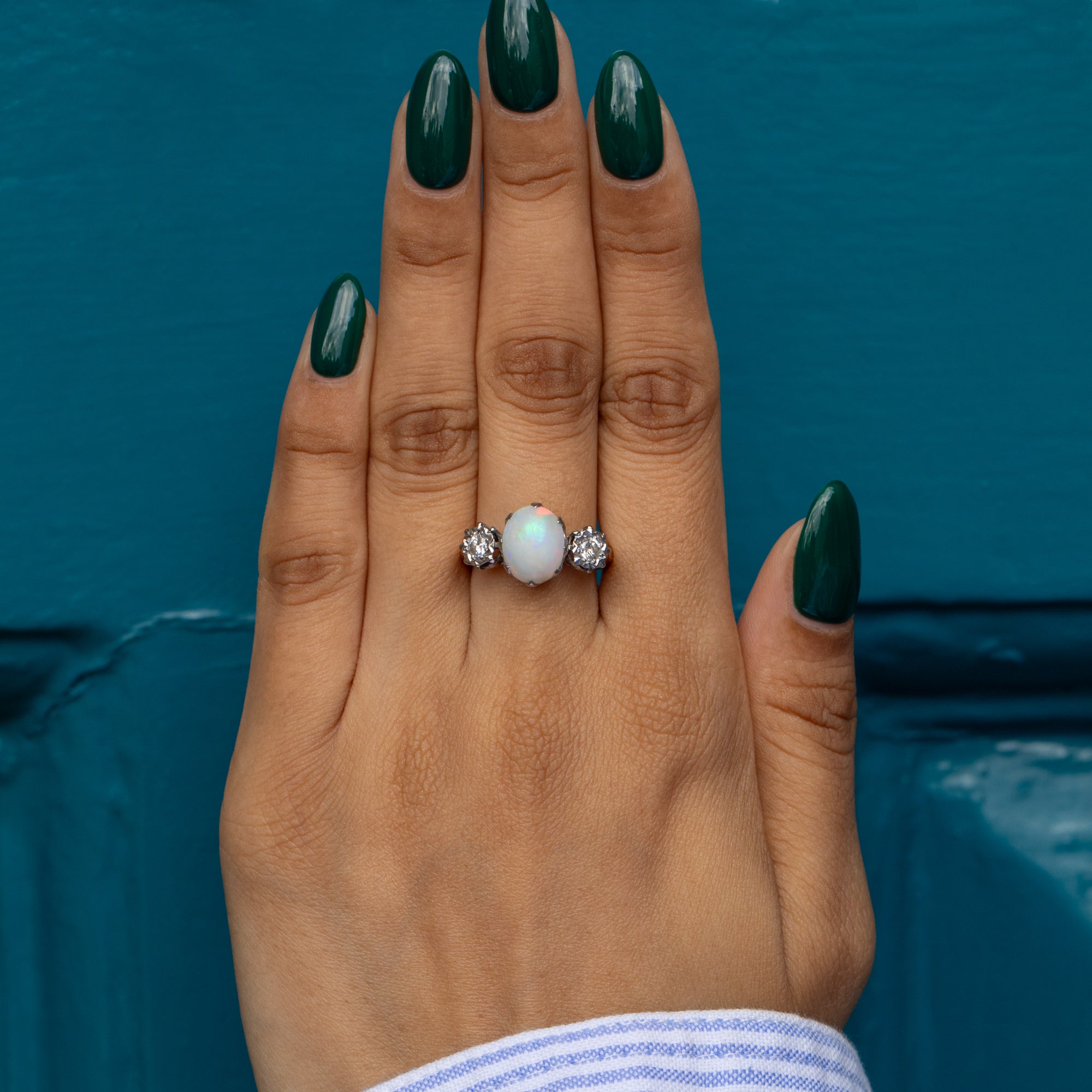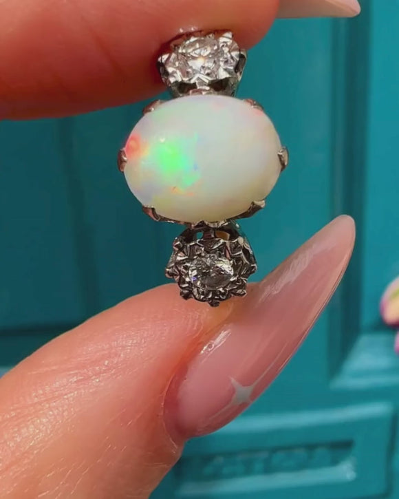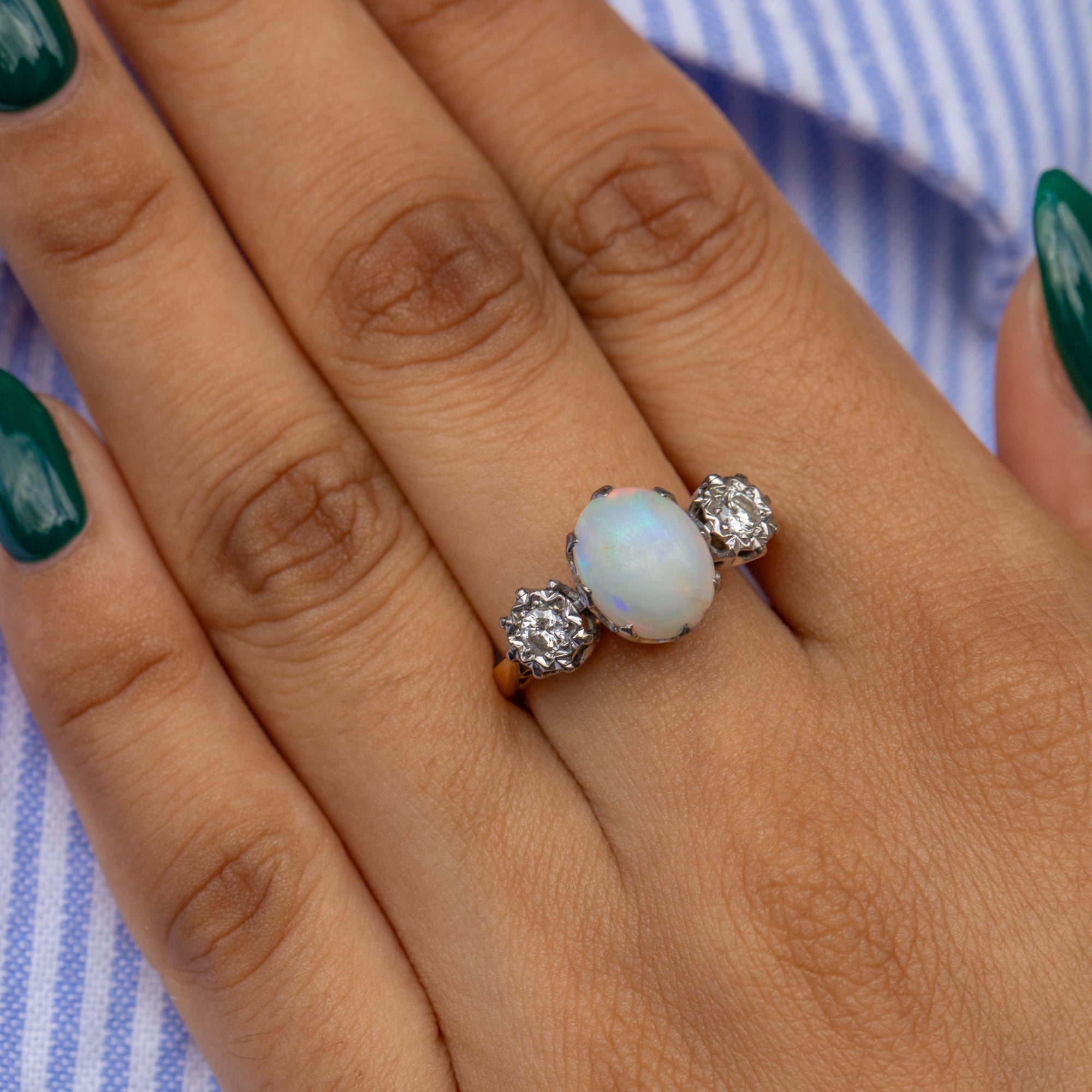 Antique 18ct Gold Opal Diamond Trilogy Ring, 1.80ct Opal
