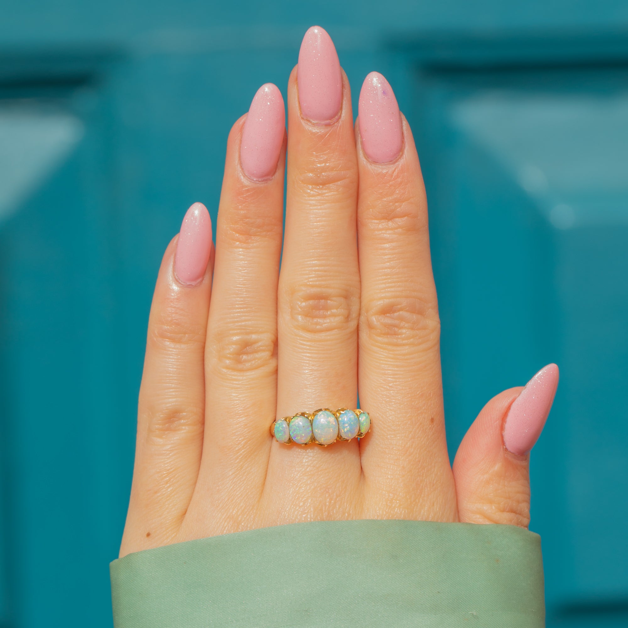 This antique 18ct Gold Opal five stone ring is a stunning piece and an exemplar of Victorian craftsmanship!