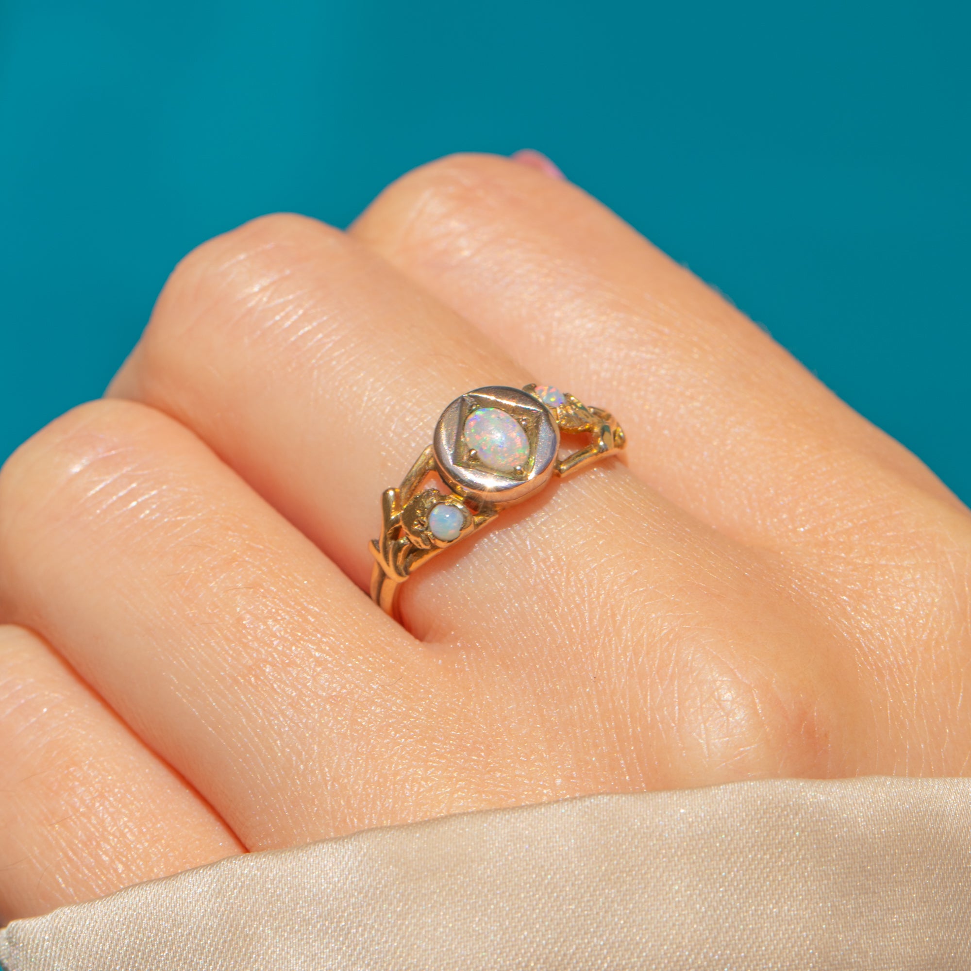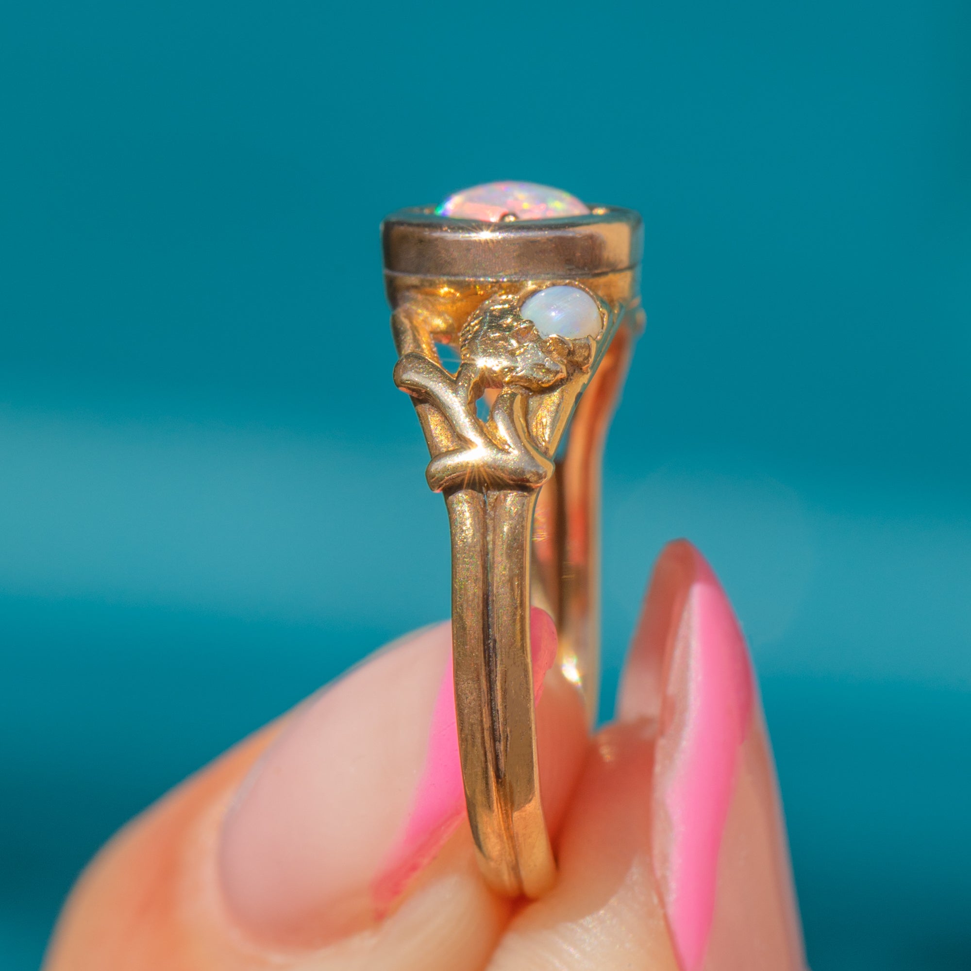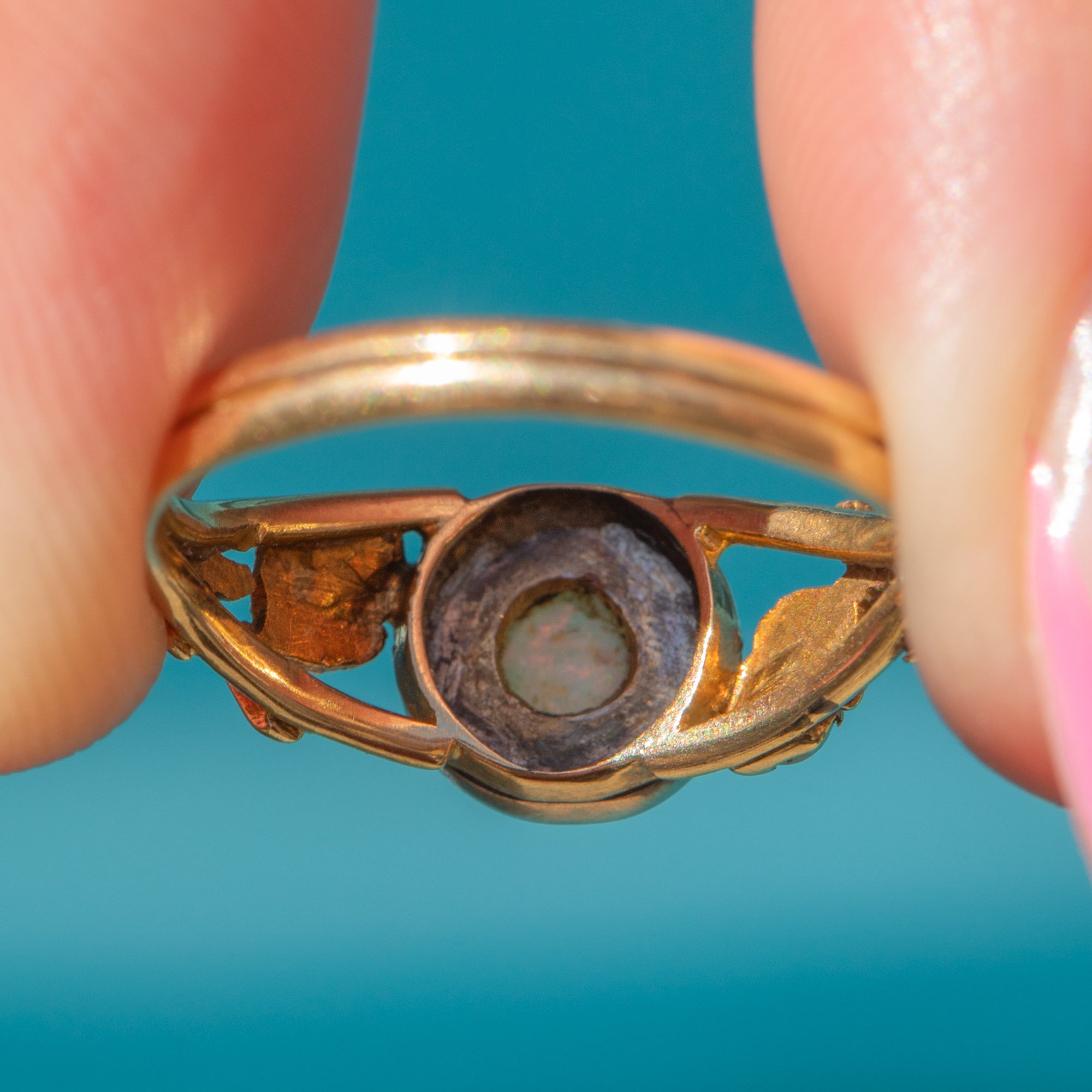 Antique 18ct Gold Opal Ring with Acorn Motifs