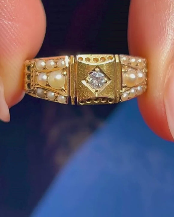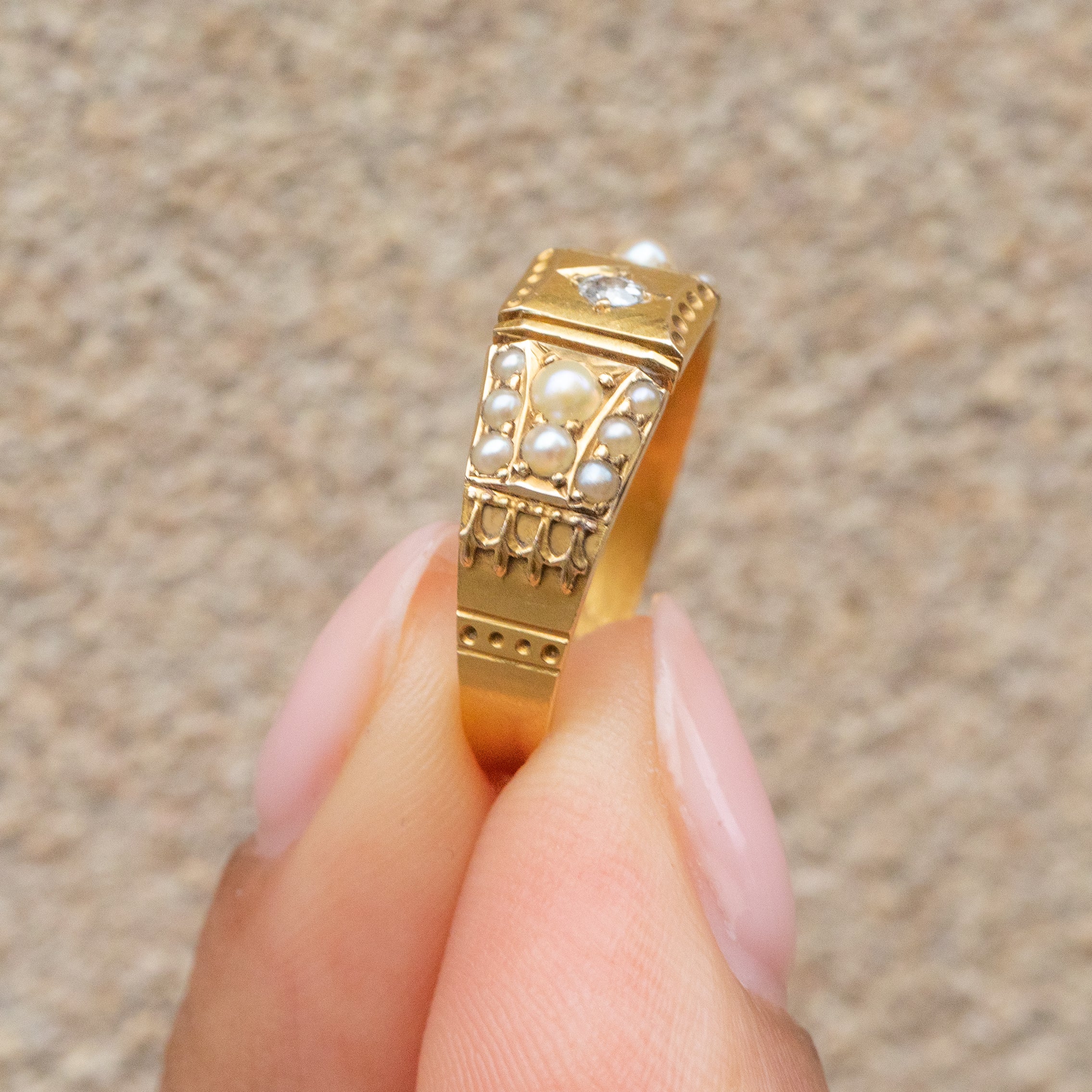Antique 18ct Gold Pearl Diamond Ring, c.1886