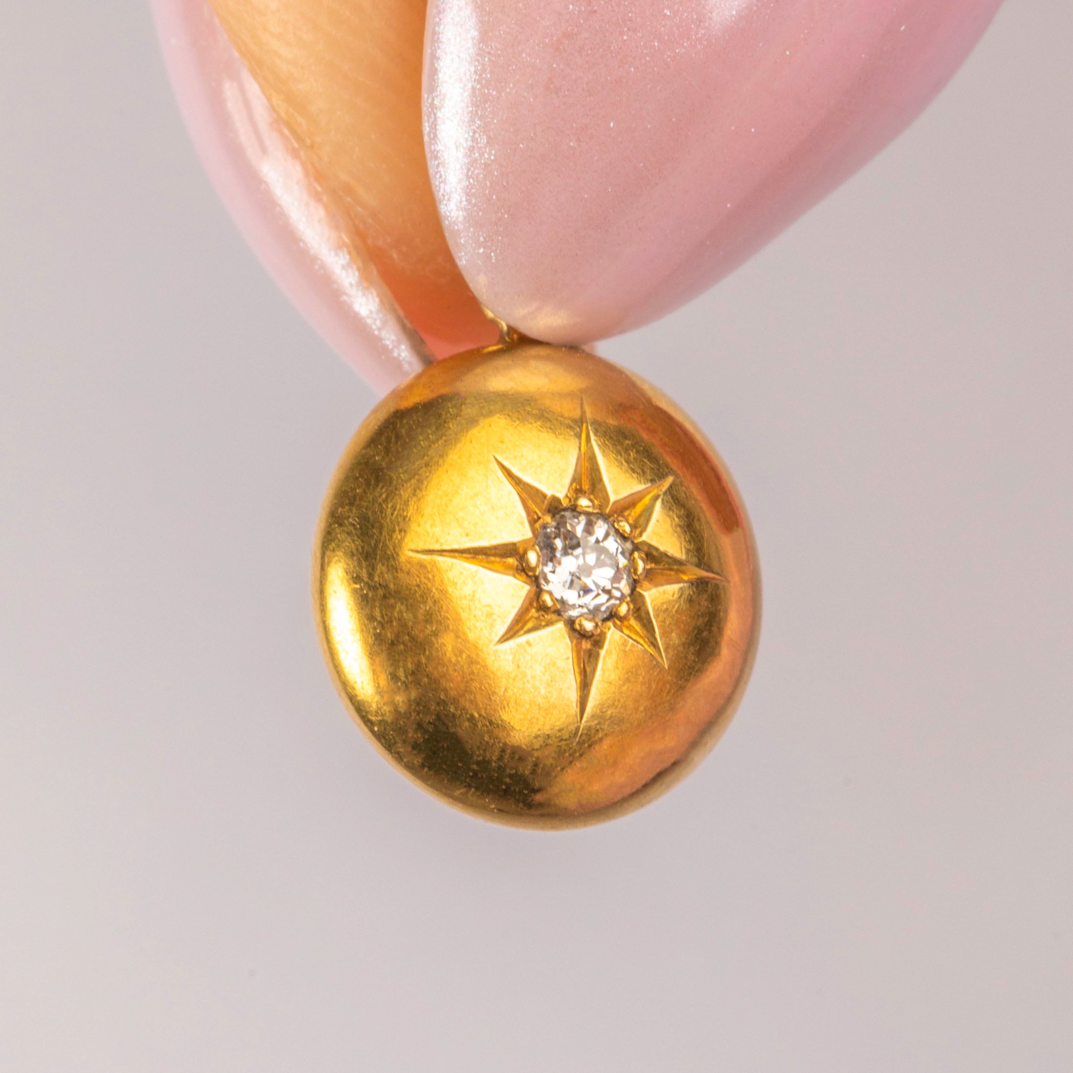 This antique 18ct Gold puffy Diamond set charm will become a staple addition to your jewellery collection! Crafted from saturated 18ct Gold, her puffy form catches the right beautifully, and with a star-set Diamond centre, she will bring splendour to any attire.