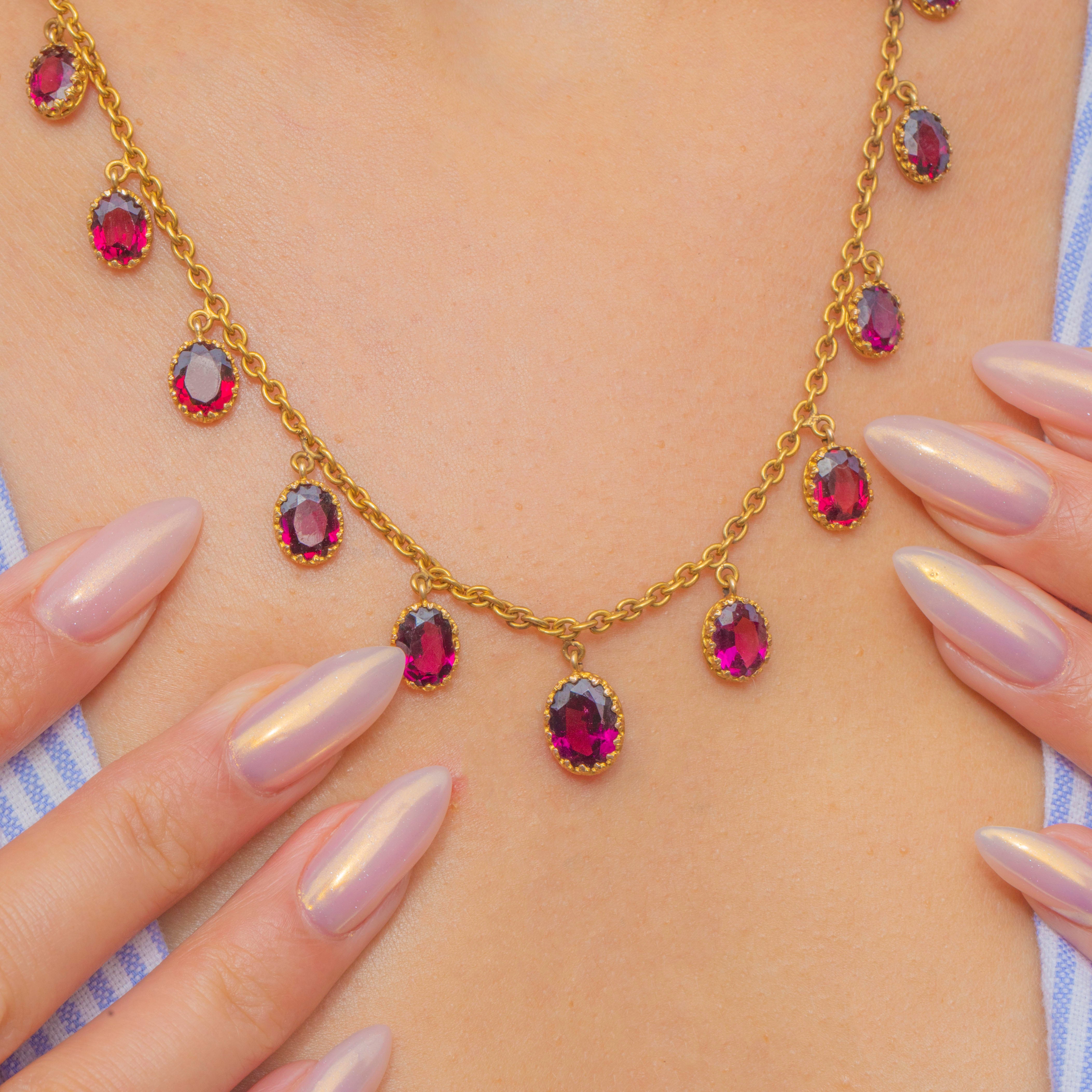 Antique 18ct Gold Rhodolite Garnet Fringe Necklace 4.50ct – Engraved Barrel Clasp
