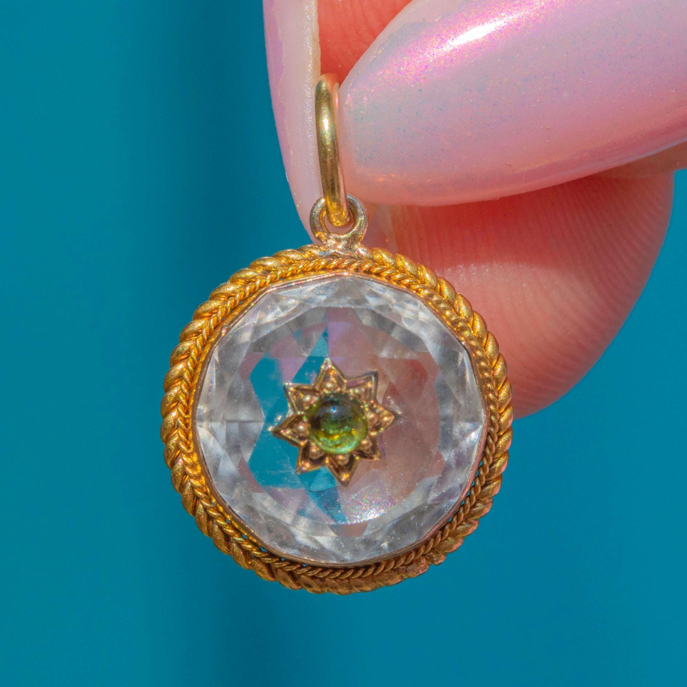 Antique 18ct Gold Rock Crystal Peridot Star Charm