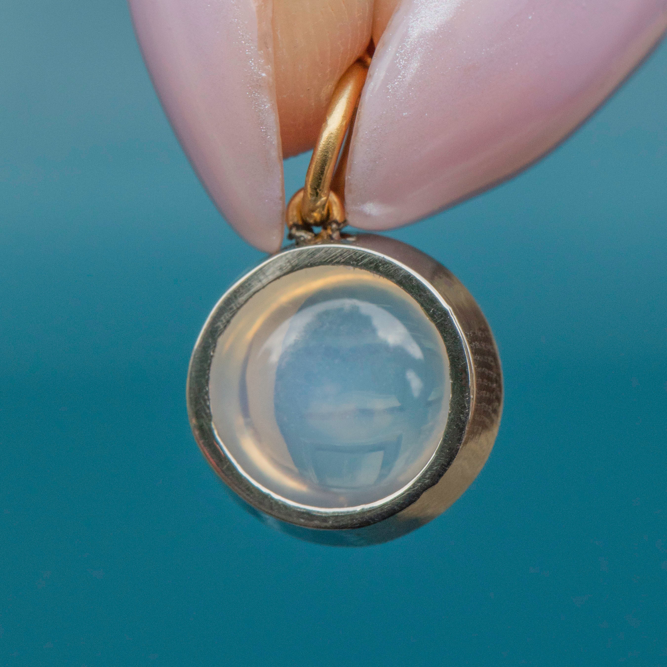 Antique 18ct Gold Round Moonstone Charm, 3.45ct