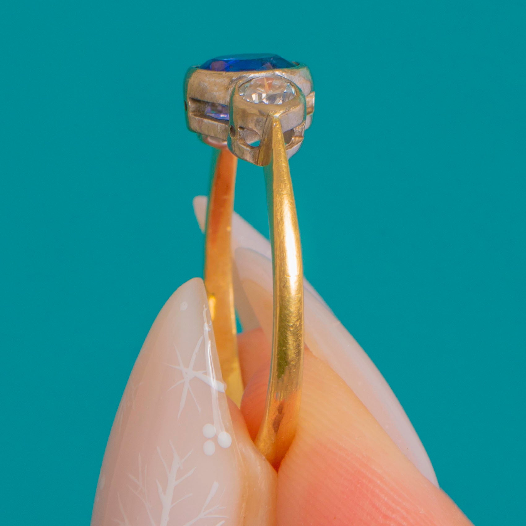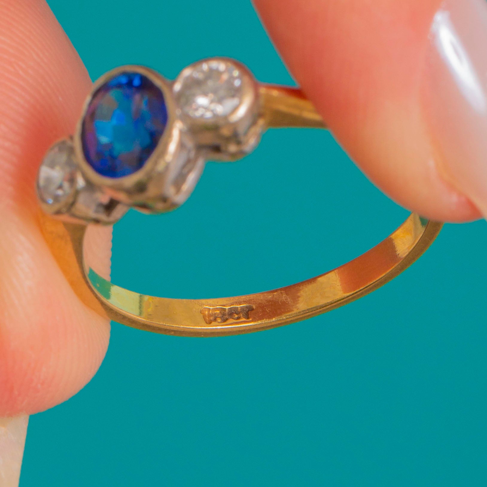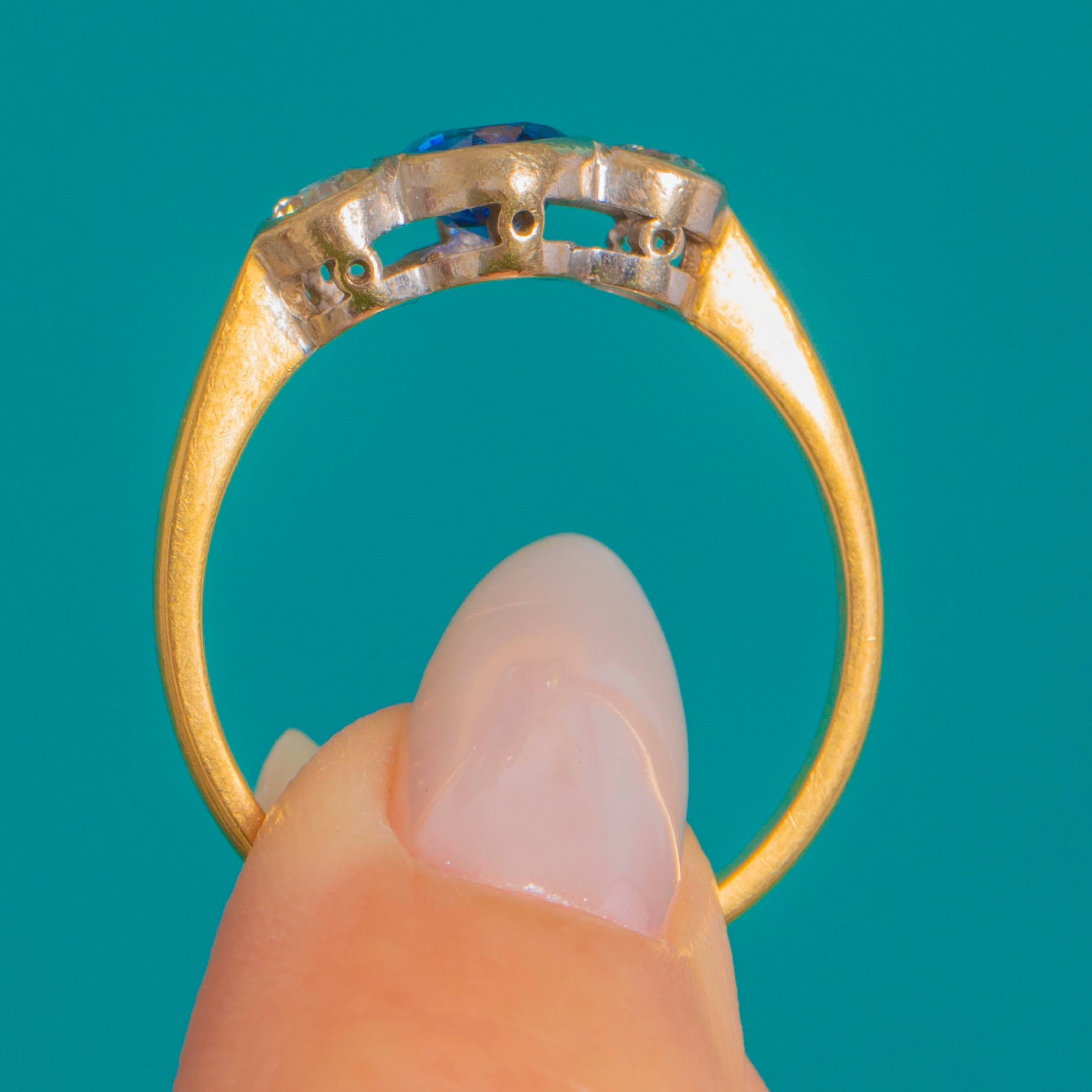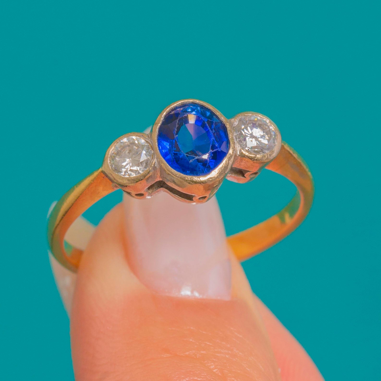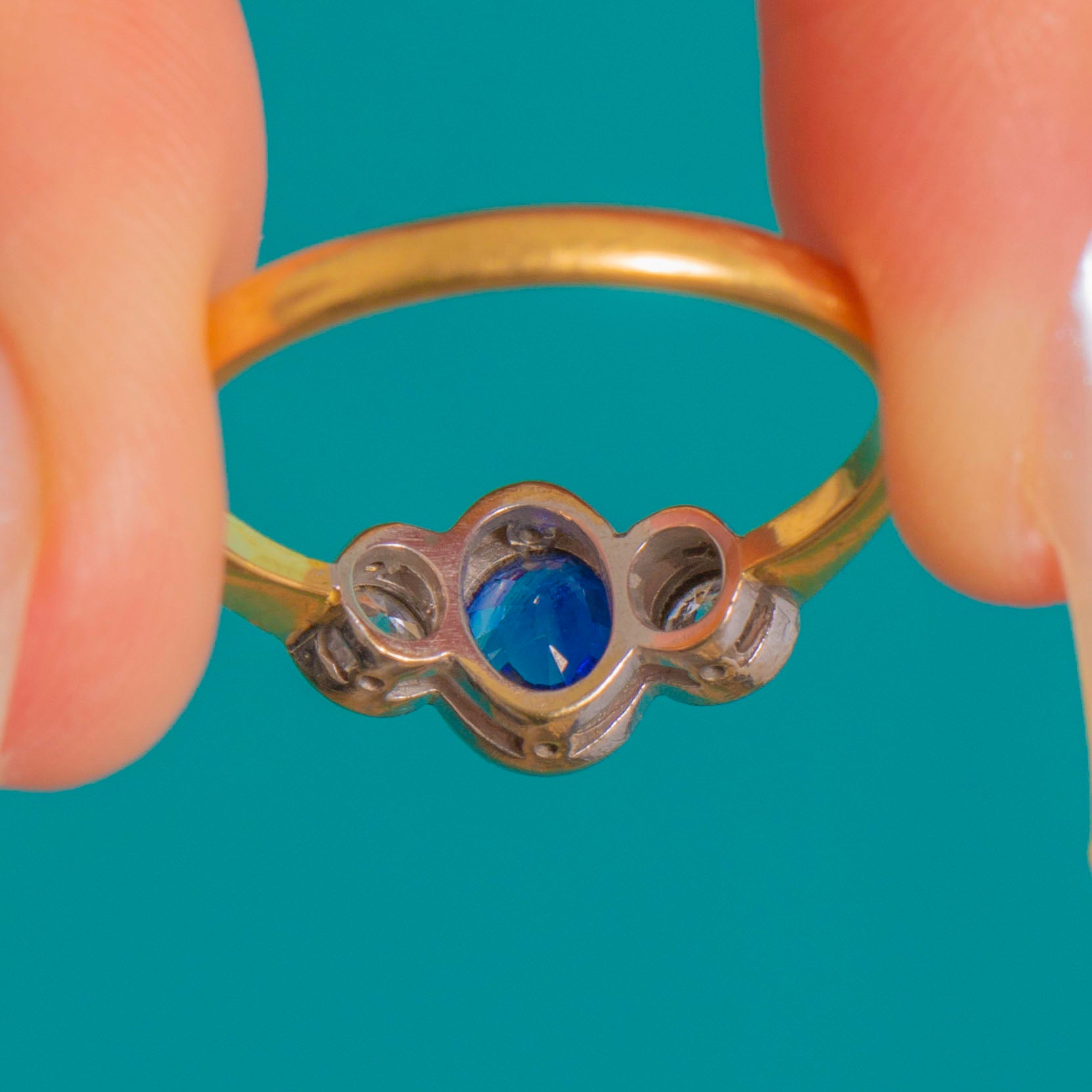 Antique 18ct Gold Royal Blue Sapphire Diamond Trilogy Ring, 0.55ct Sapphire