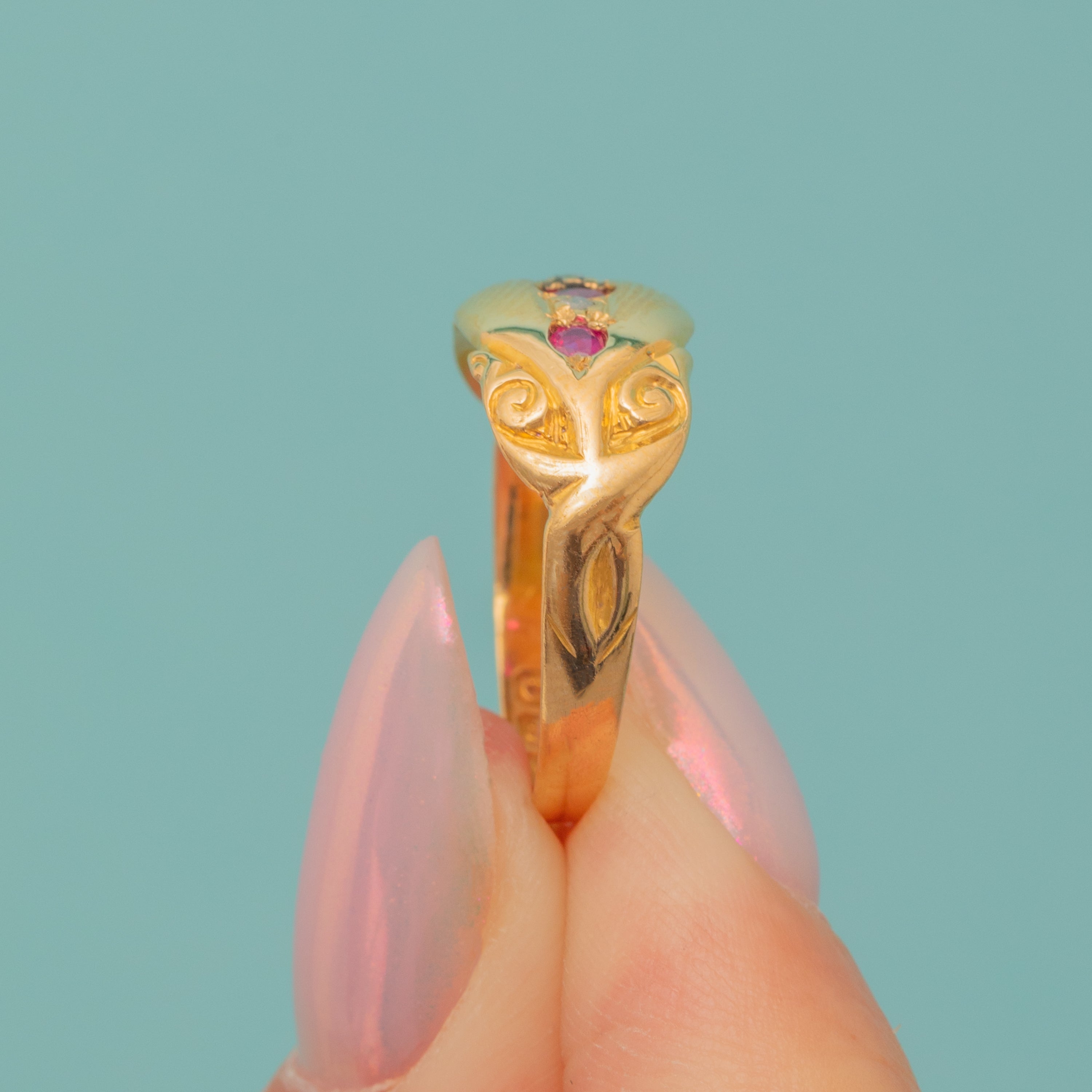 Antique 18ct Gold Ruby Diamond Gypsy Ring, c.1913