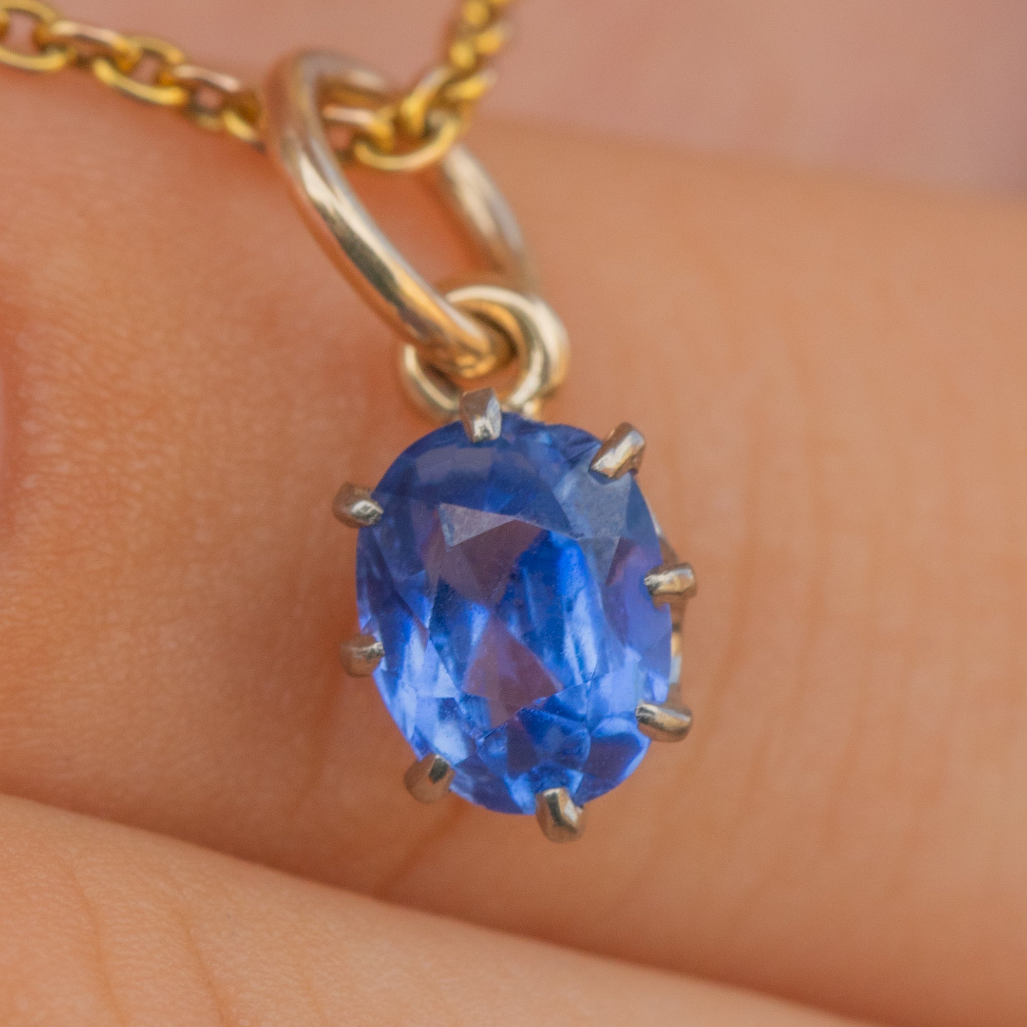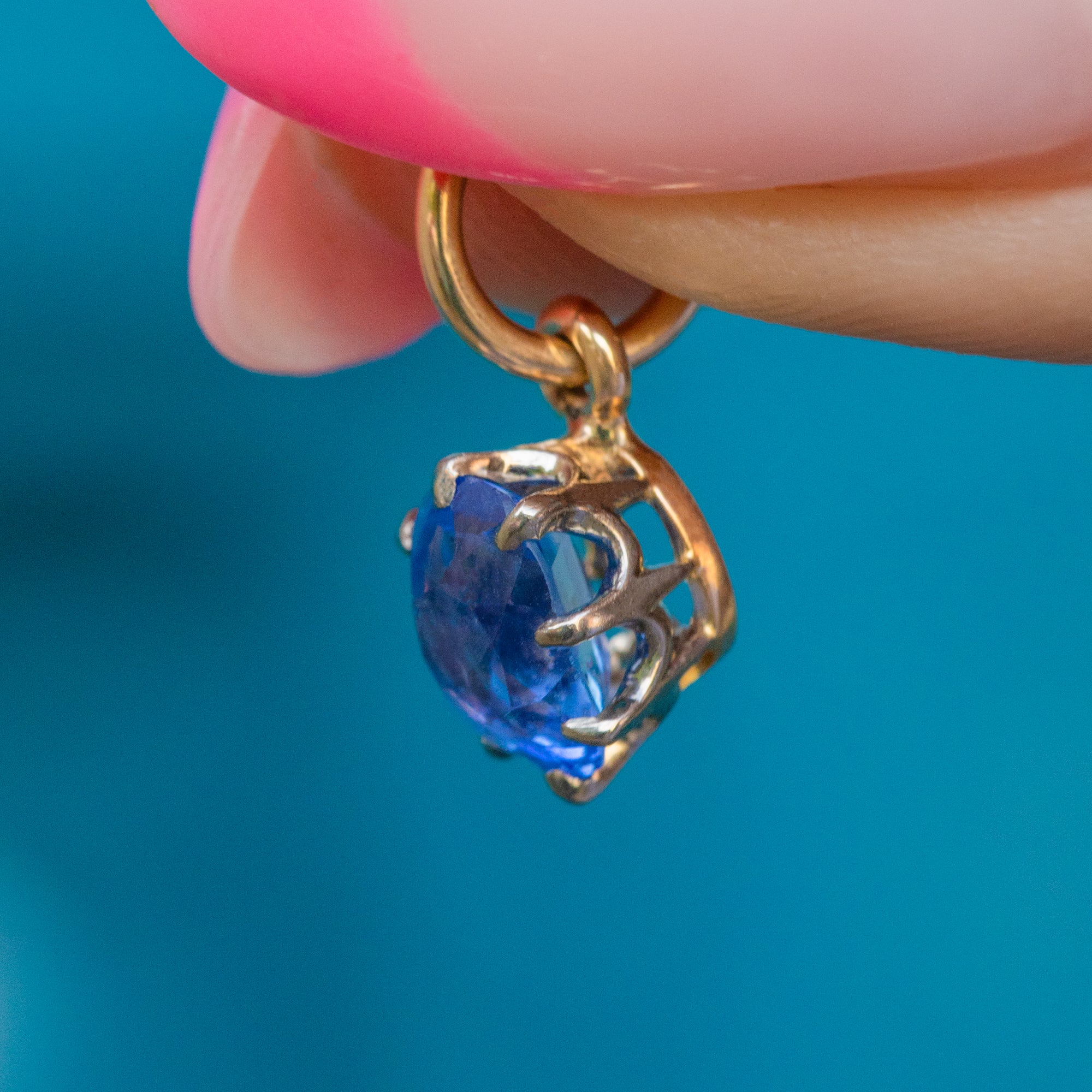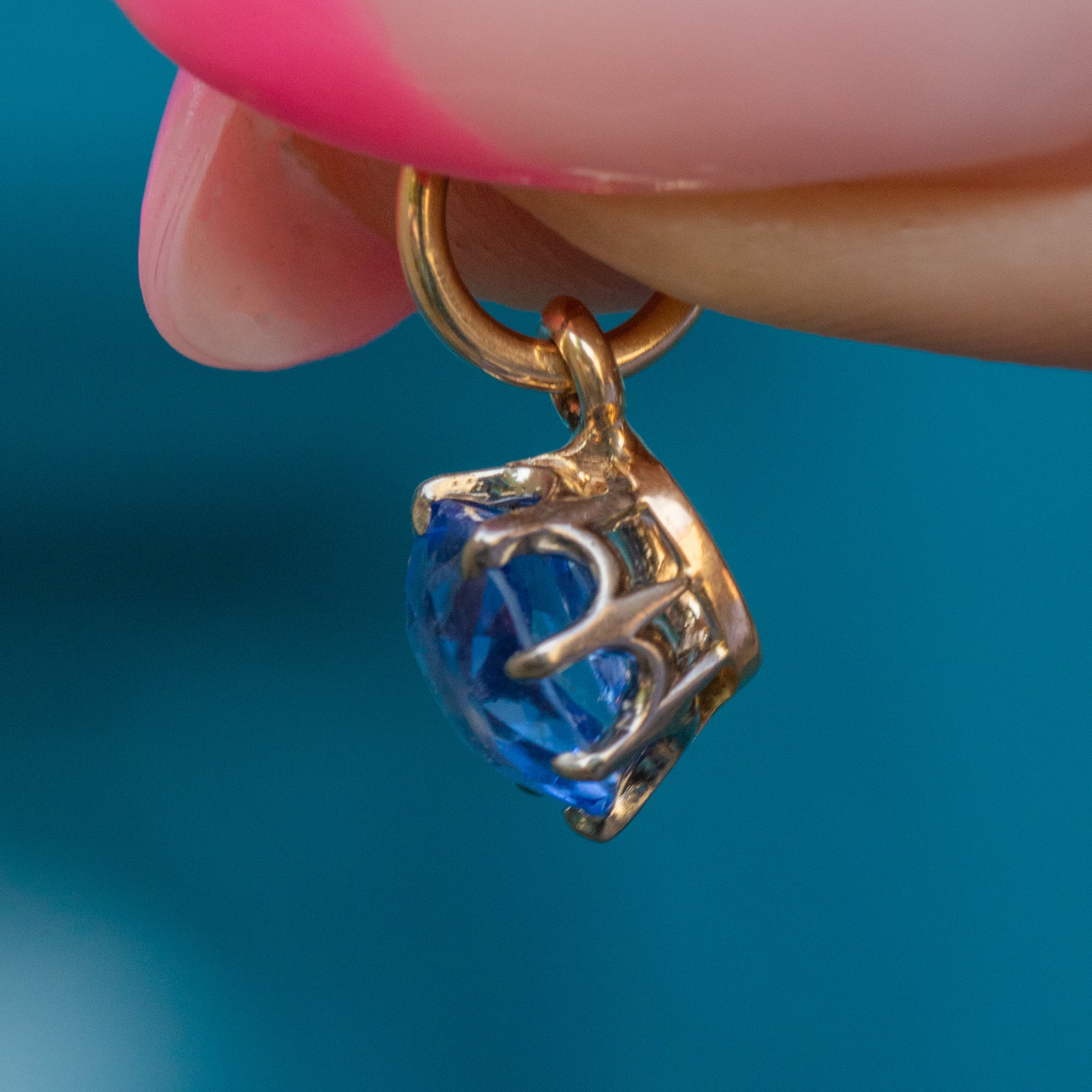 VERY GOOD TO EXCELLENT. This antique 18ct Gold Sapphire charm is in great condition. The Sapphire is phenomenal in colour, with lovely internal inclusions that are not to be mistaken for scratches. To the top of the Sapphire there is a small abrasion, but the white Gold claws hold the gemstone securely and the yellow Gold provides some versatility in how you style this exquisite Victorian treasure. With a soldered jump-ring offering secure wear, you'll find yourself reaching for this antique Sapphire charm often!