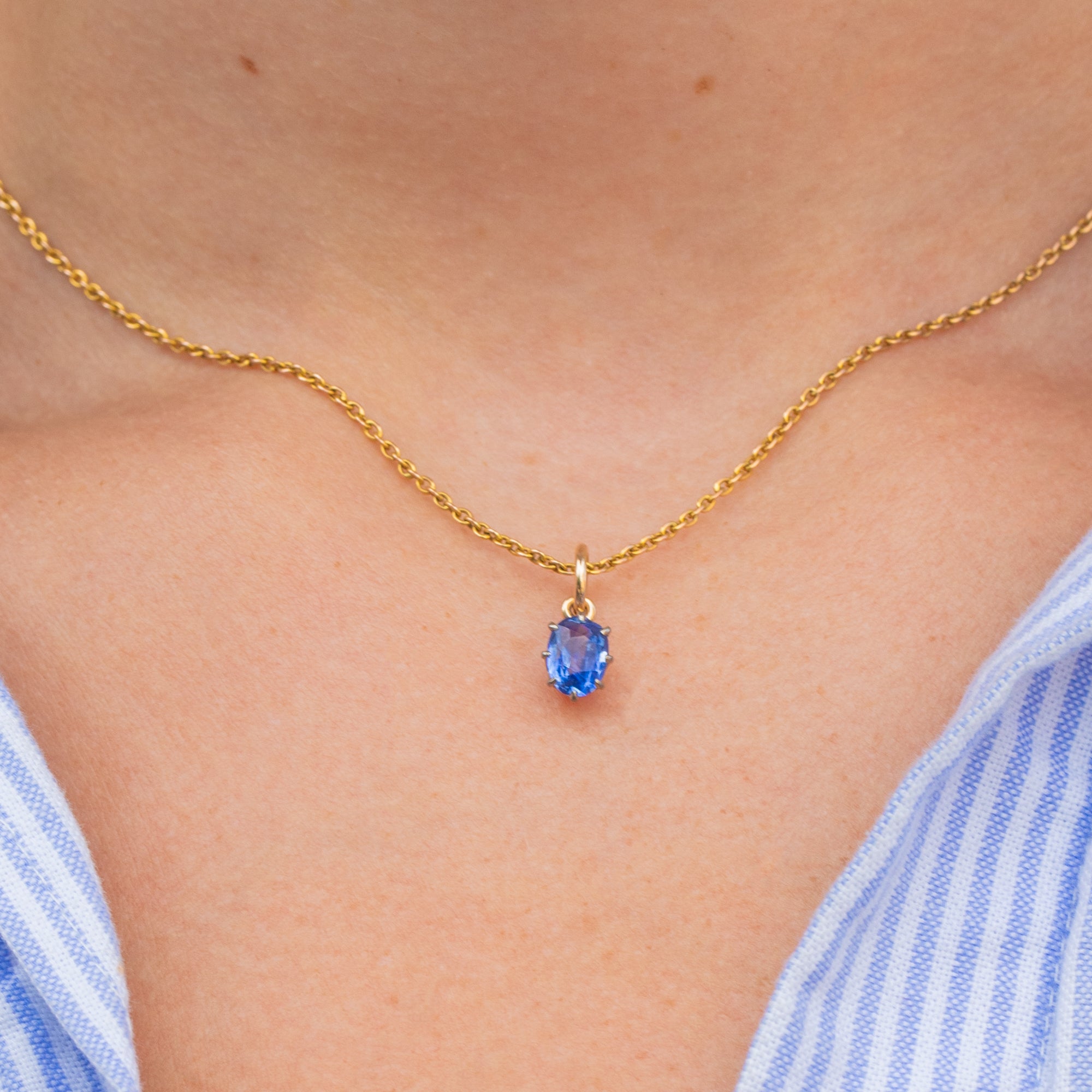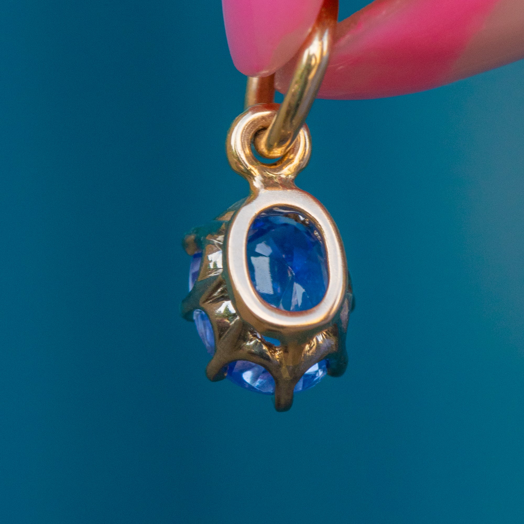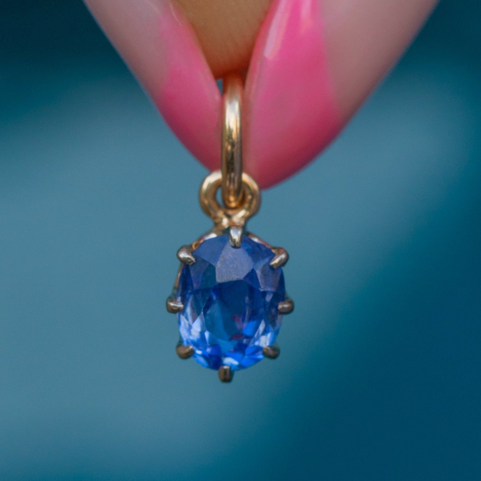 VERY GOOD TO EXCELLENT. This antique 18ct Gold Sapphire charm is in great condition. The Sapphire is phenomenal in colour, with lovely internal inclusions that are not to be mistaken for scratches. To the top of the Sapphire there is a small abrasion, but the white Gold claws hold the gemstone securely and the yellow Gold provides some versatility in how you style this exquisite Victorian treasure. With a soldered jump-ring offering secure wear, you'll find yourself reaching for this antique Sapphire charm often!