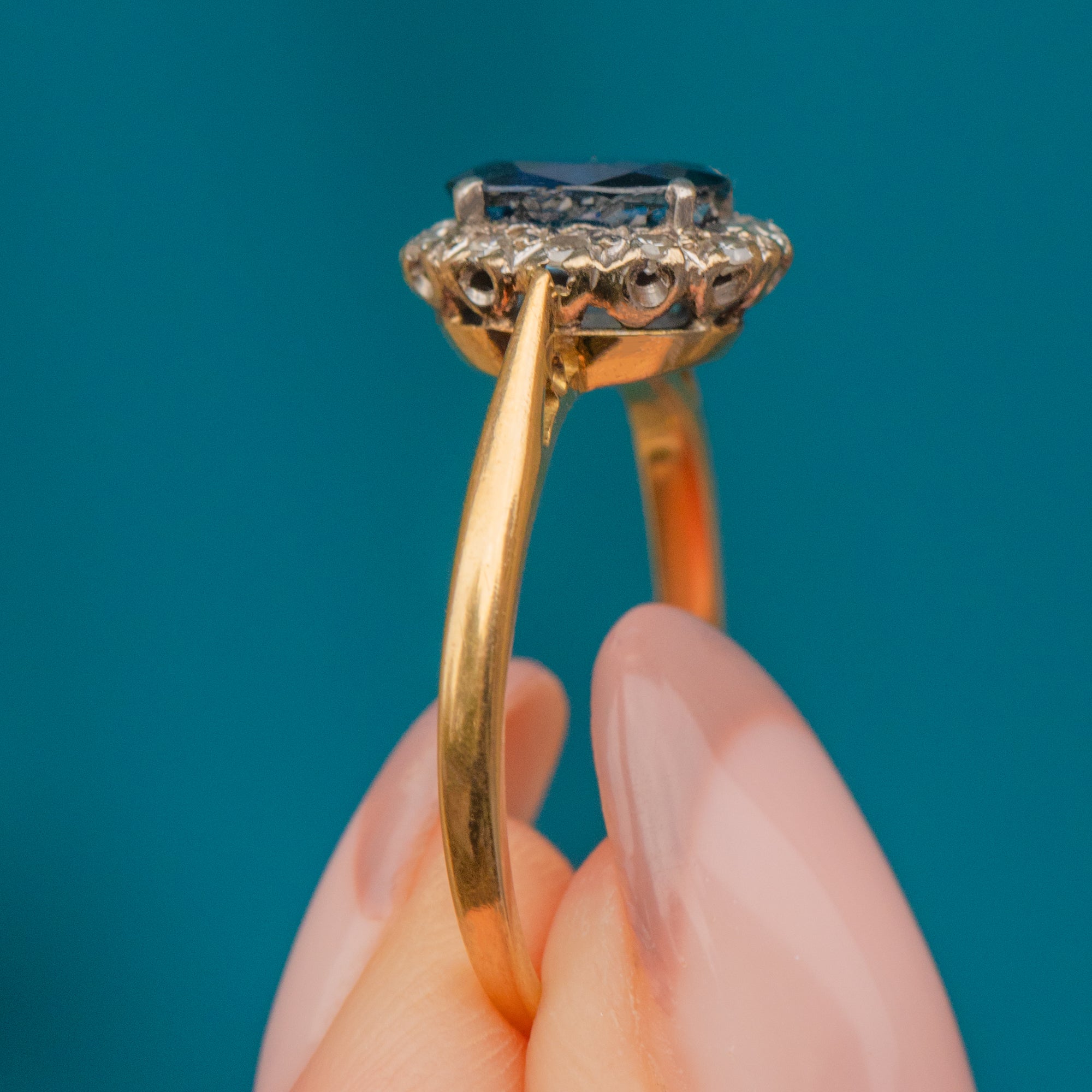 Antique 18ct Gold Sapphire Diamond Cluster Ring, 0.92ct Sapphire