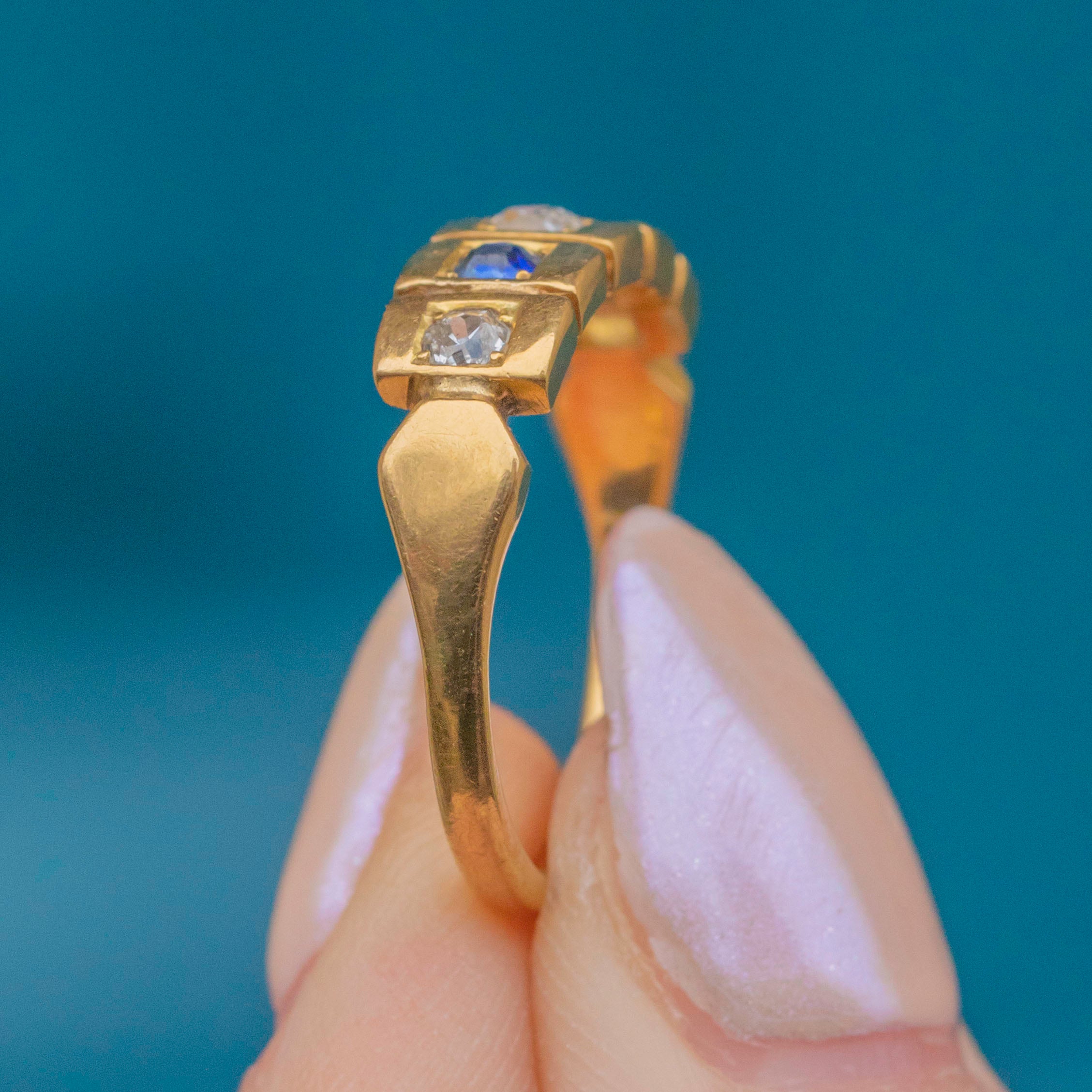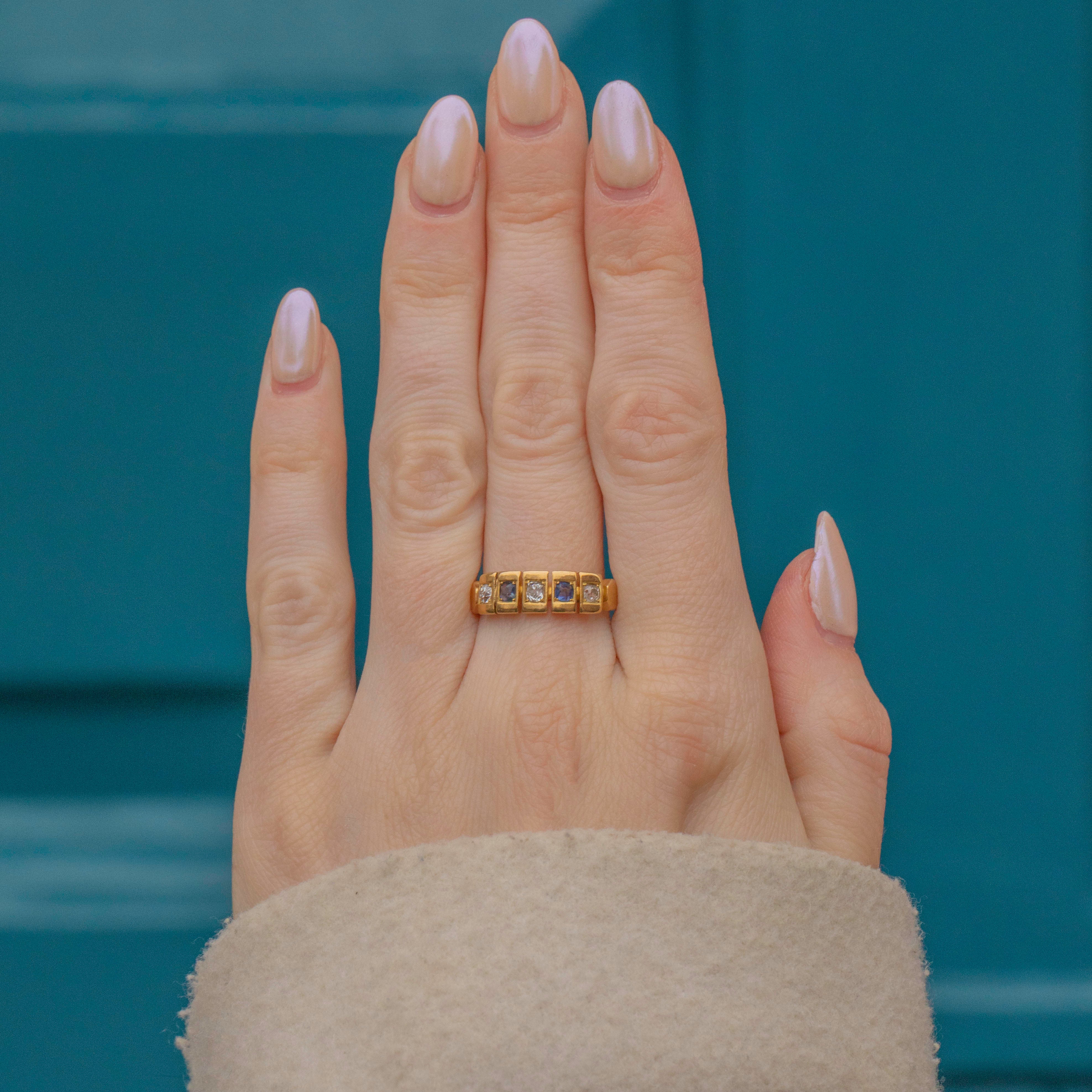 Antique 18ct Gold Sapphire Diamond Five Stone Gypsy Ring