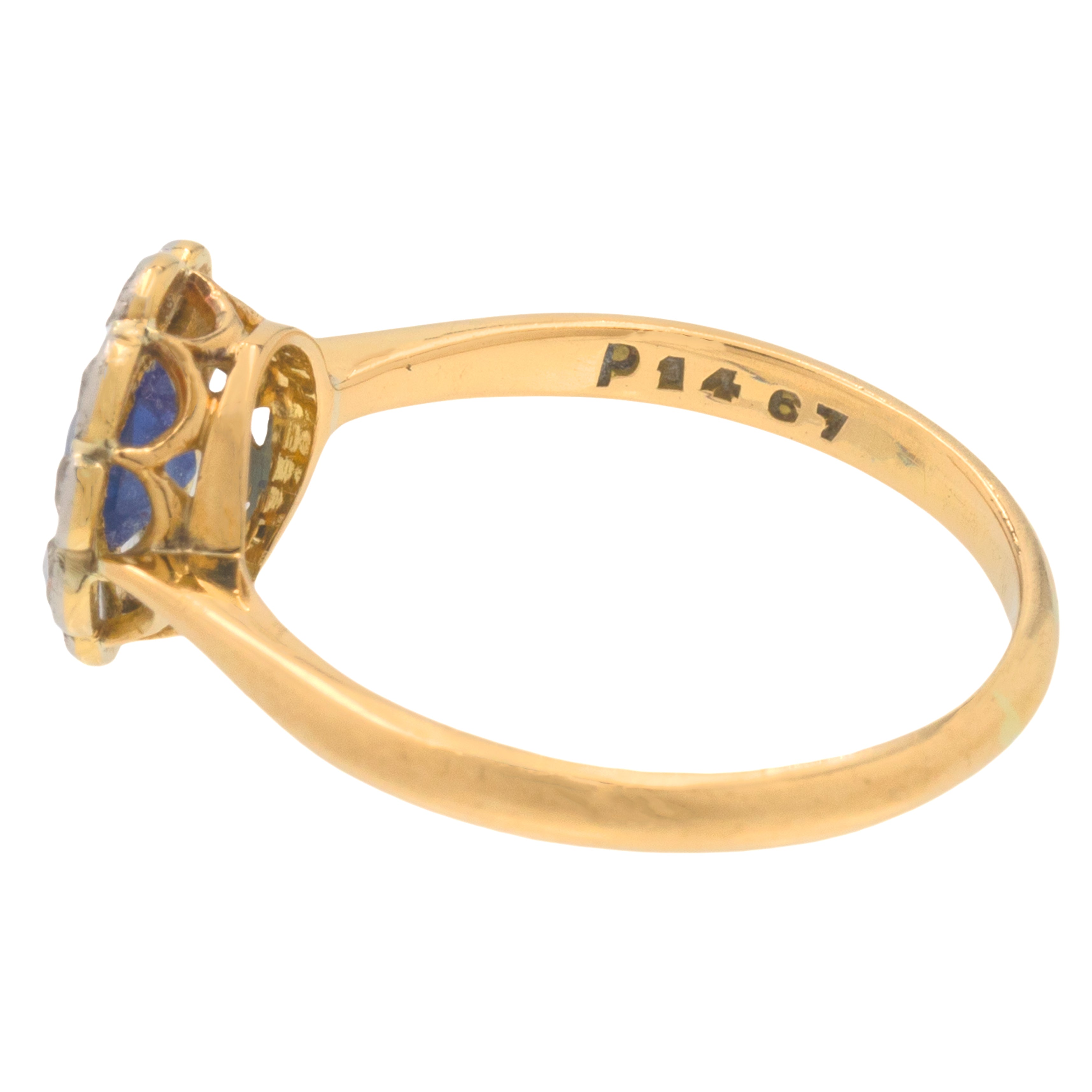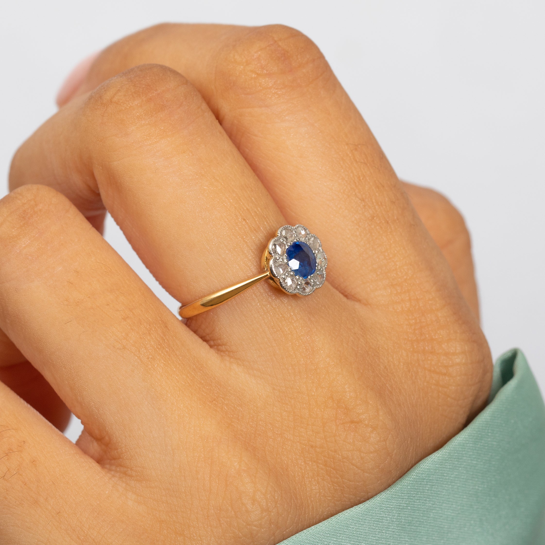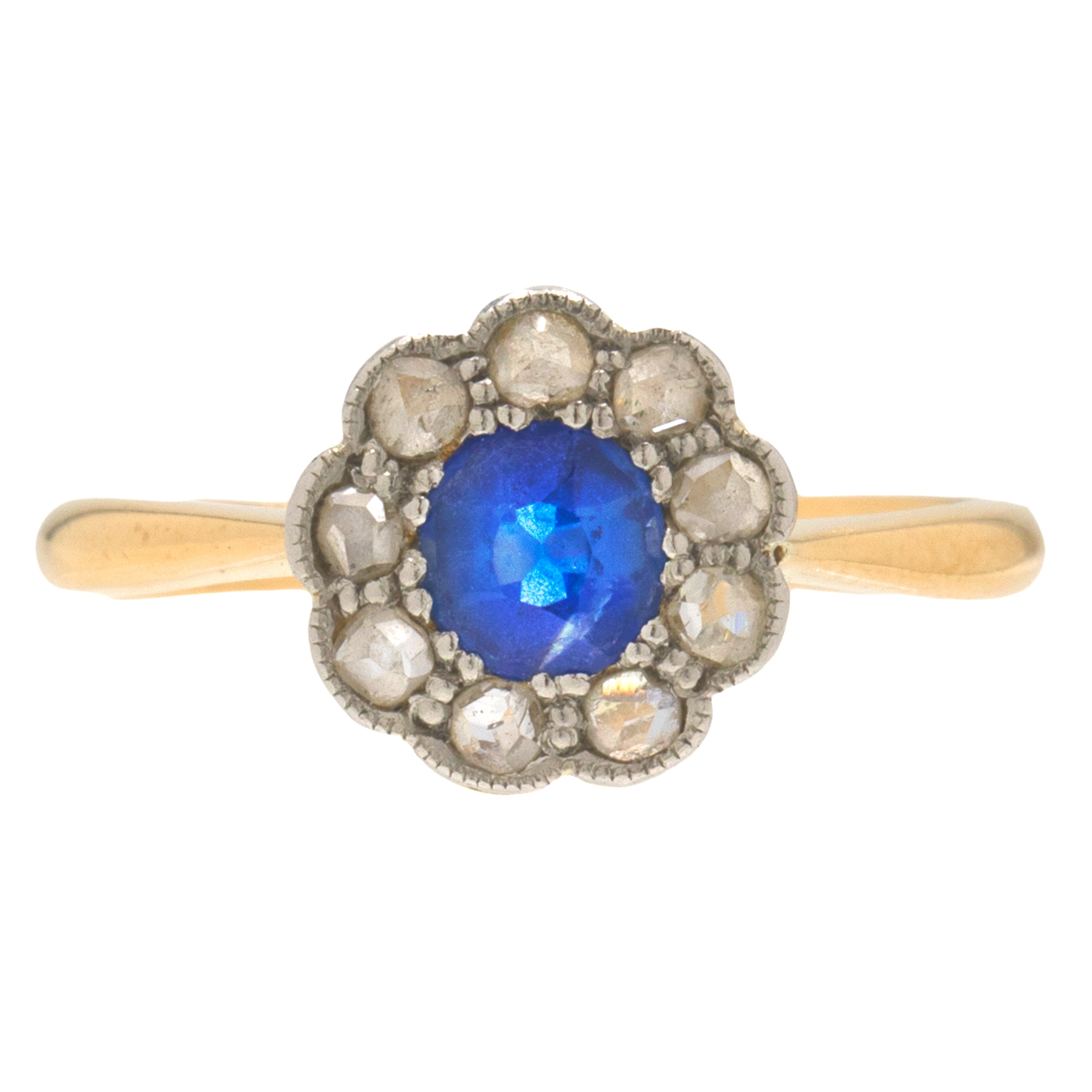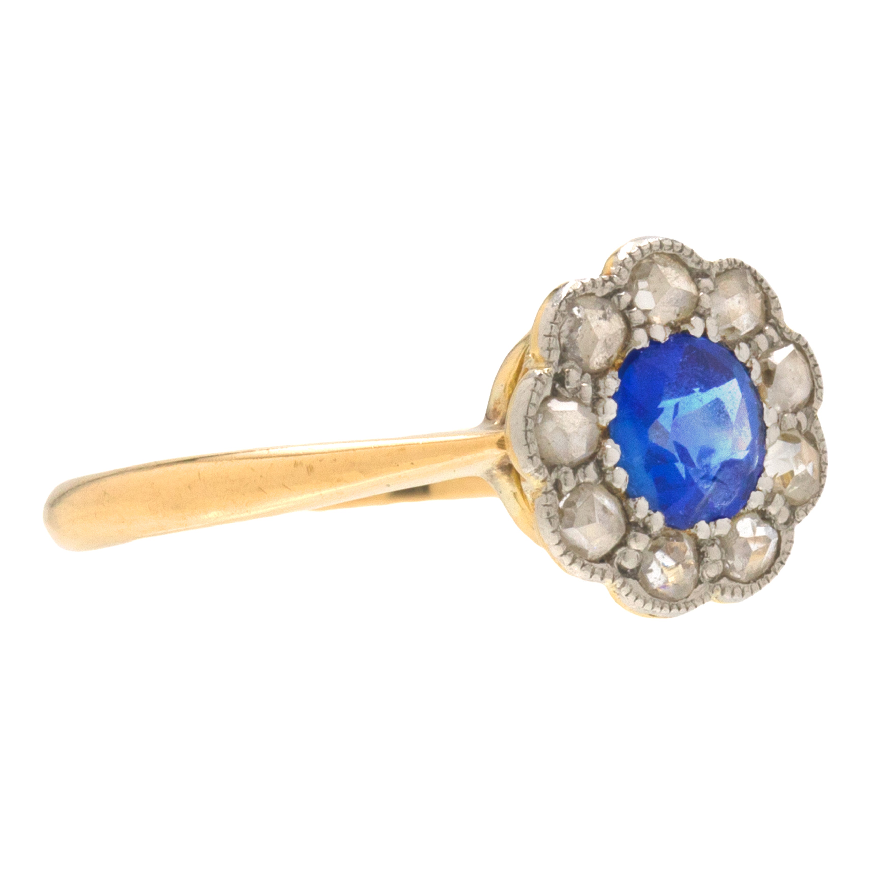 Antique 18ct Gold Sapphire Diamond Flower Cluster Ring, 0.30ct Sapphire