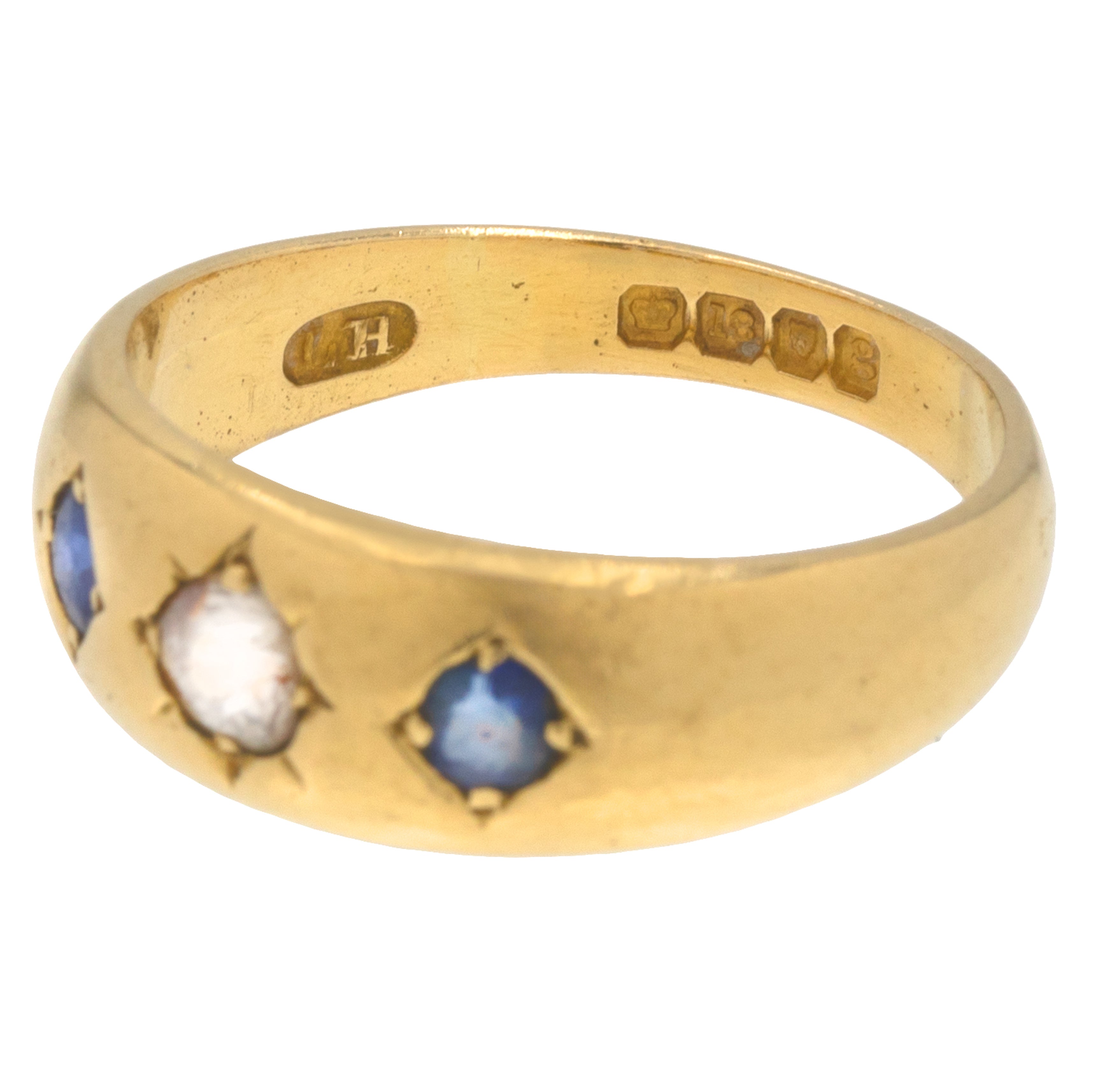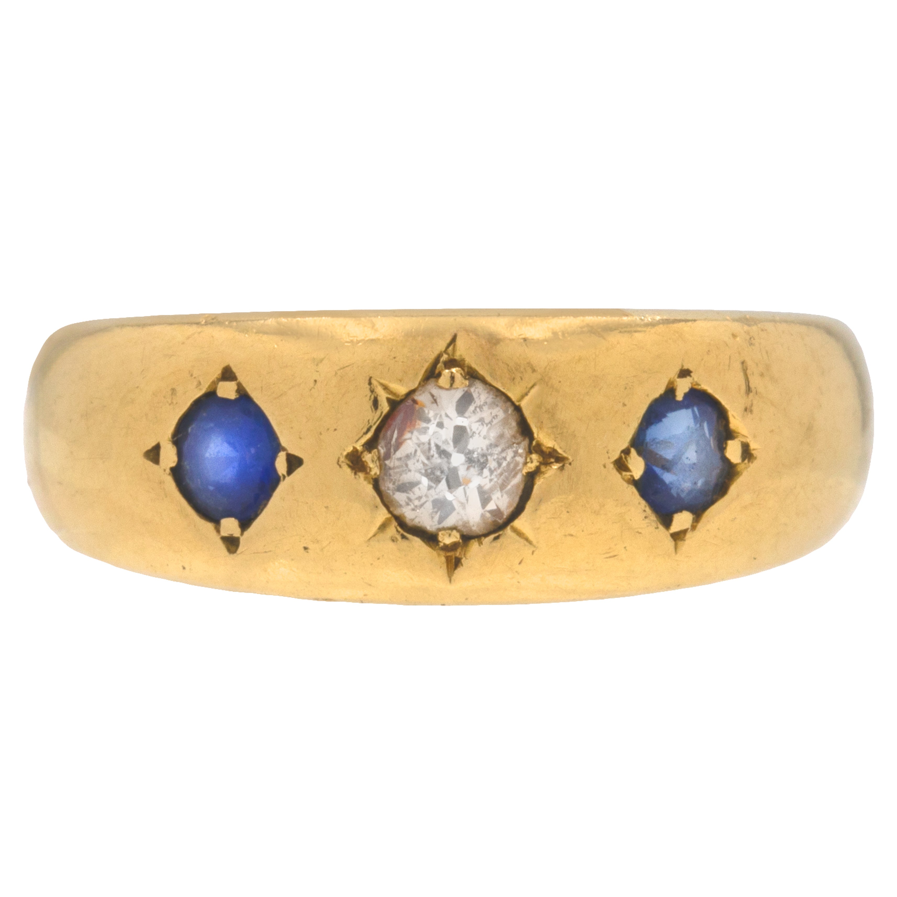 Antique 18ct Gold Sapphire Diamond Gypsy Ring, c.1902