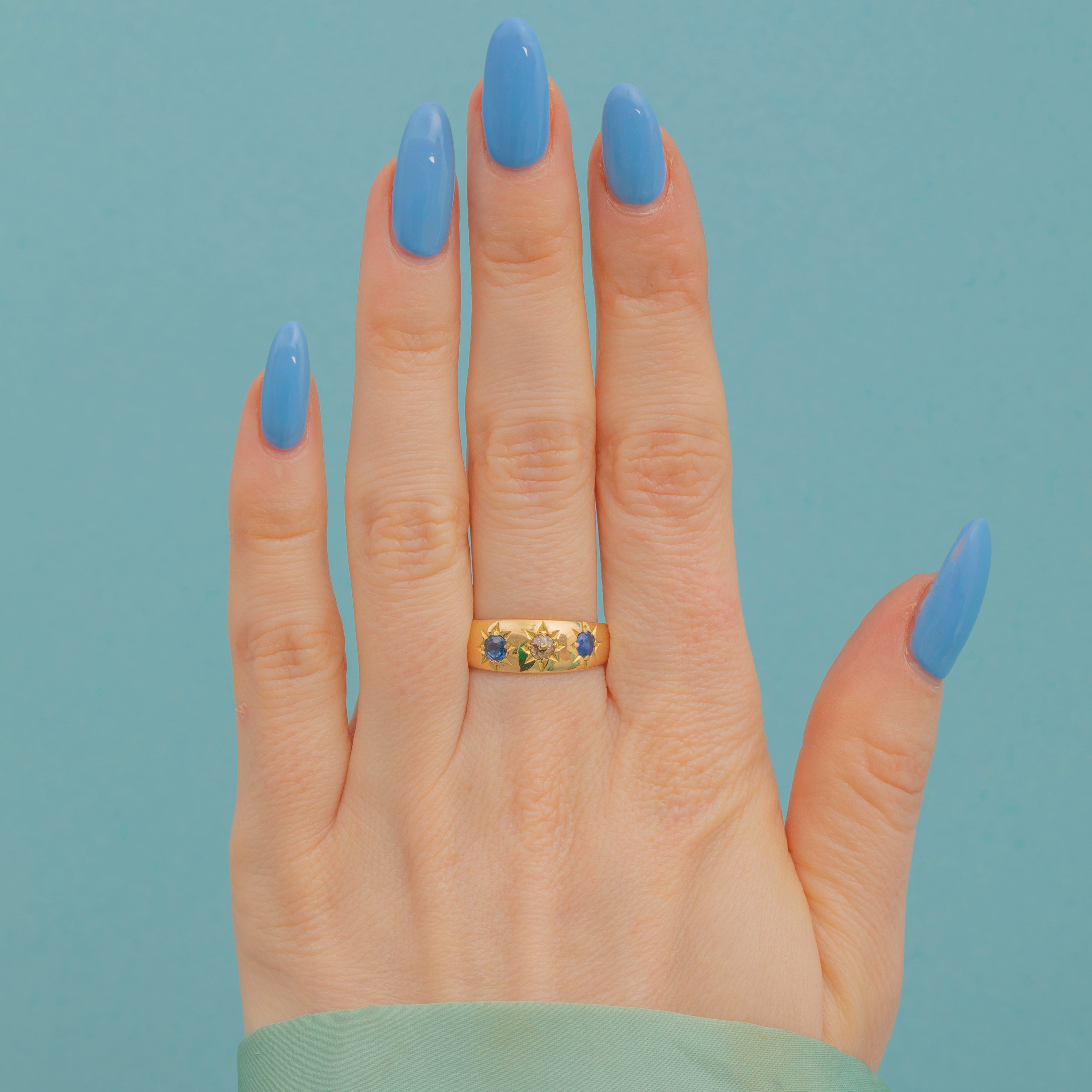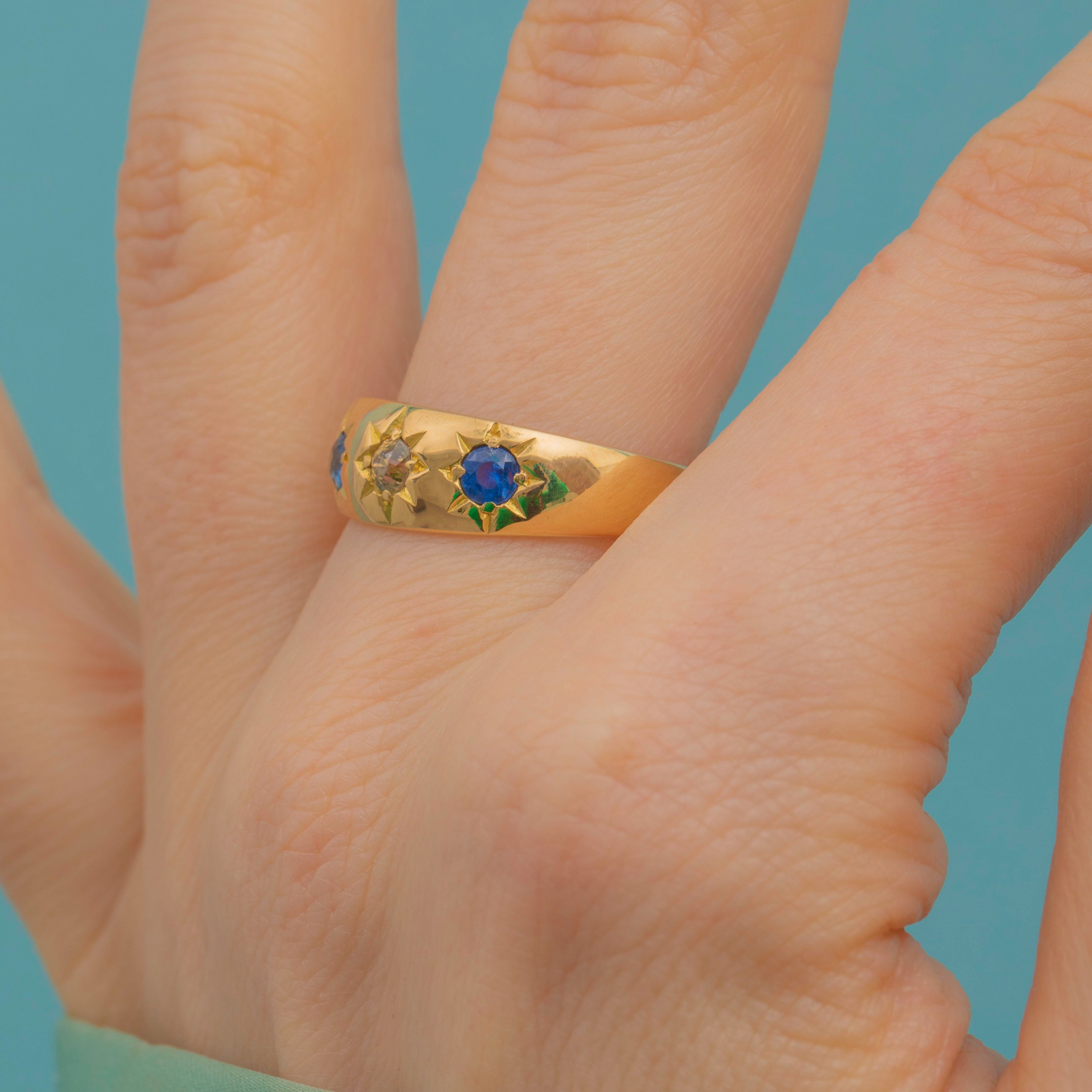 Antique 18ct Gold Sapphire Diamond Gypsy Ring, c.1915