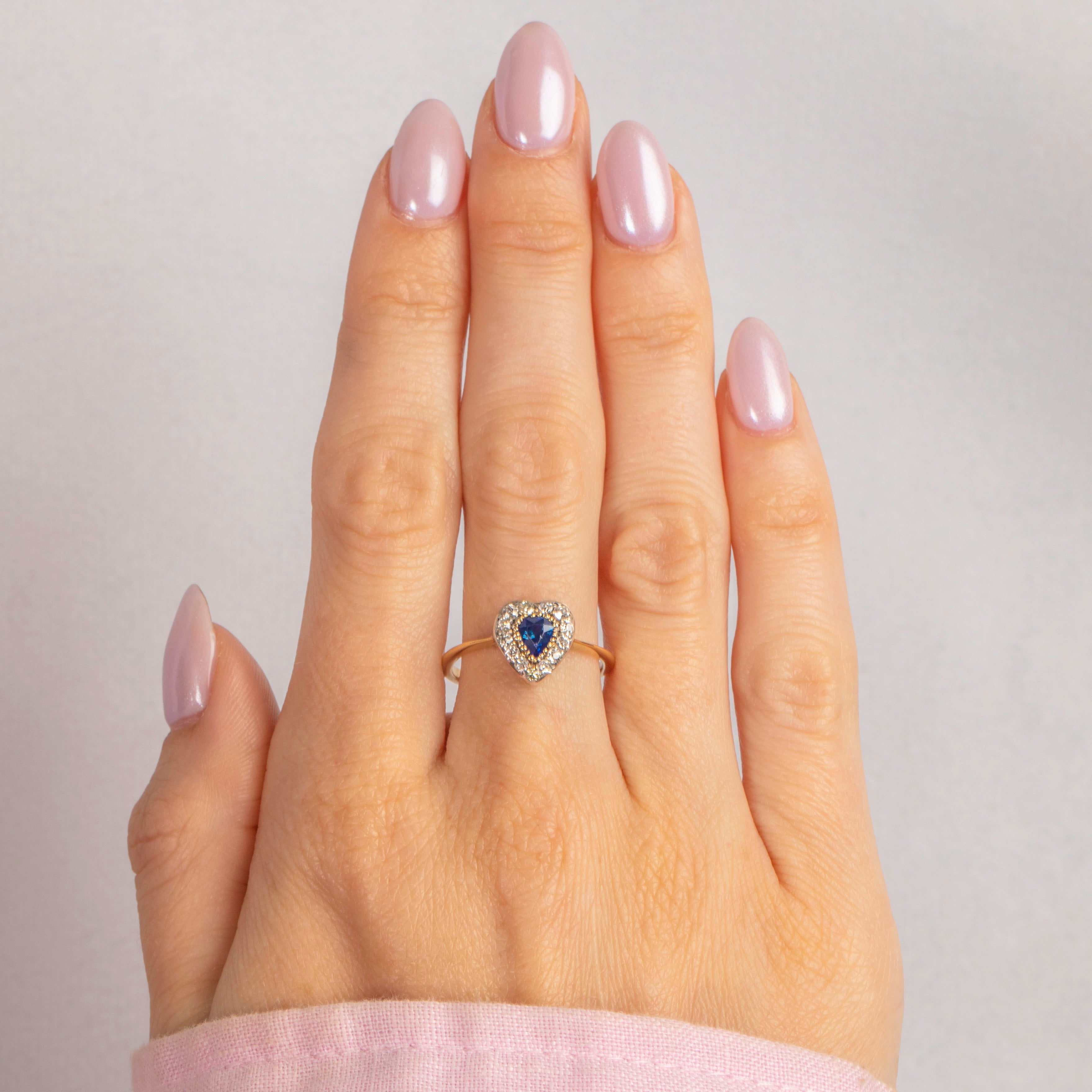 Antique 18ct Gold Sapphire Diamond Heart Ring, 0.30ct Sapphire