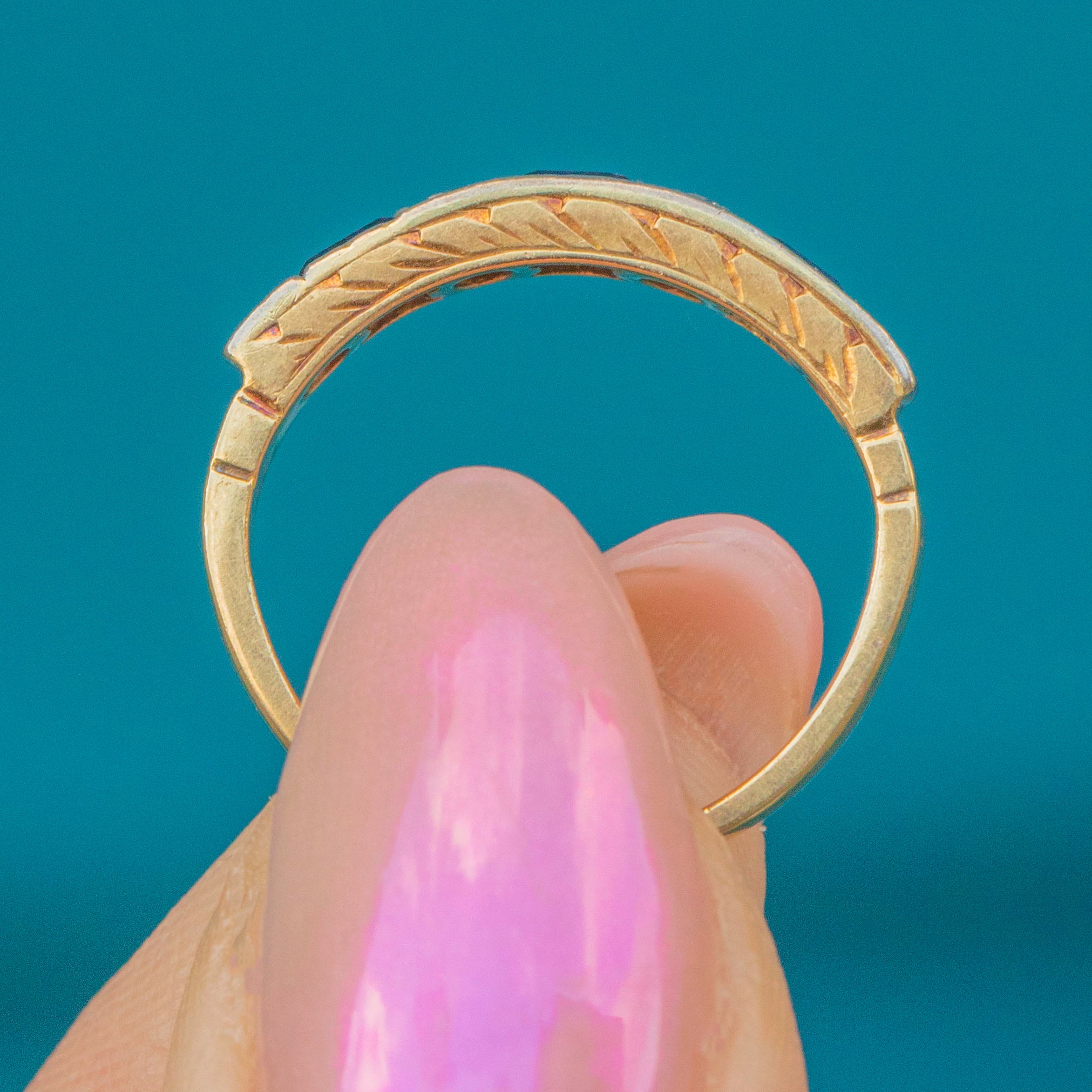 We think this antique 18ct Gold Sapphire Diamond stacking ring is such a beautiful testimony to her time!