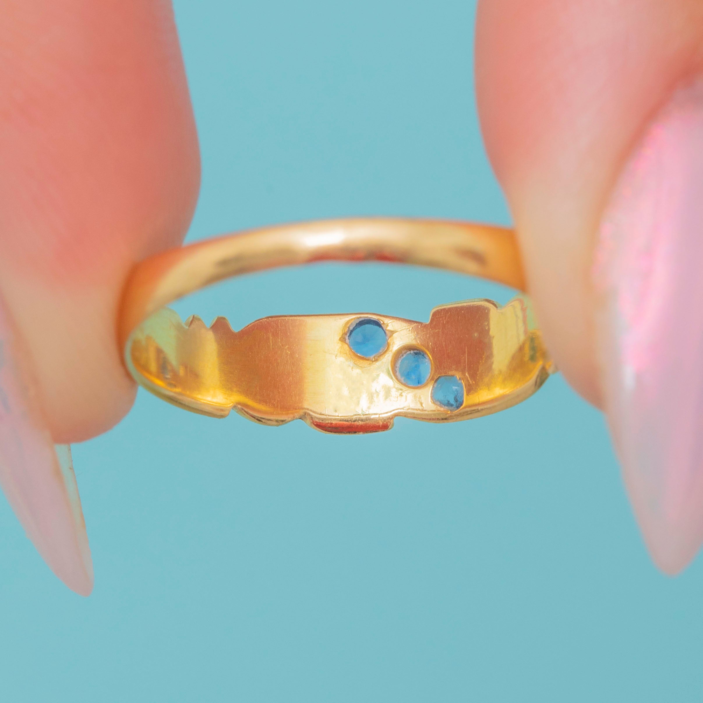Antique 18ct Gold Sapphire Gypsy Ring, c.1898